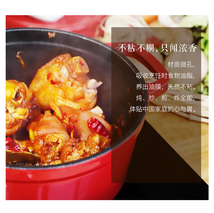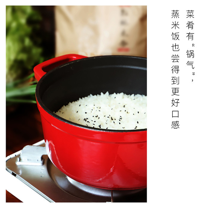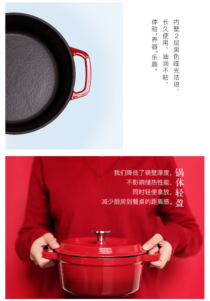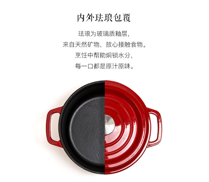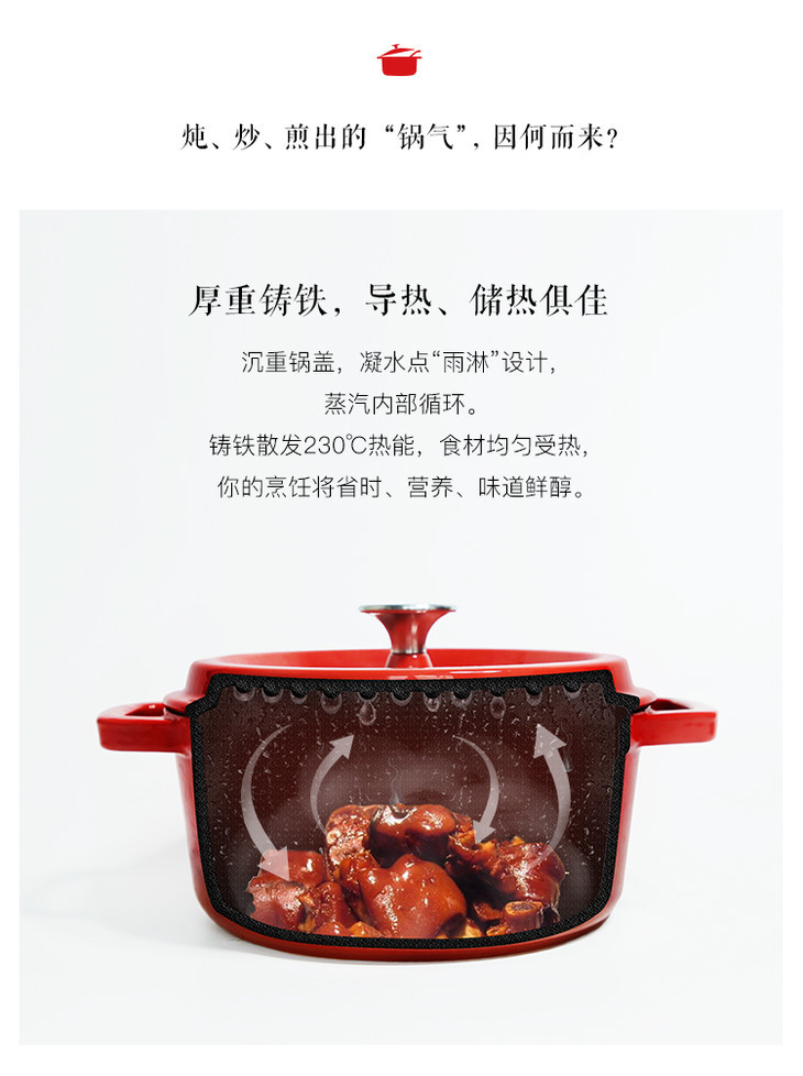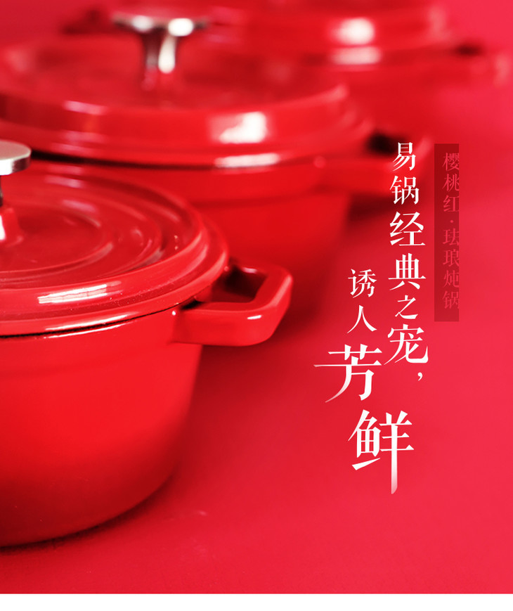 【外运团 每周一发货】易锅 |22*15 经典必选铸铁樱桃红色炖锅 炖煮炒全能 喜庆又养眼 耐用又皮实 多功能 健康不粘锅