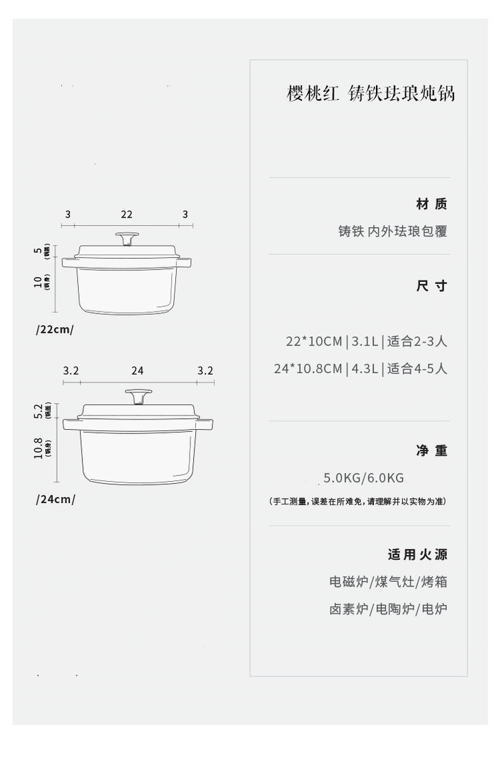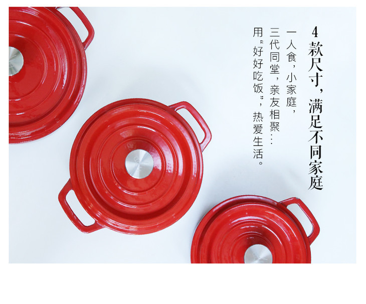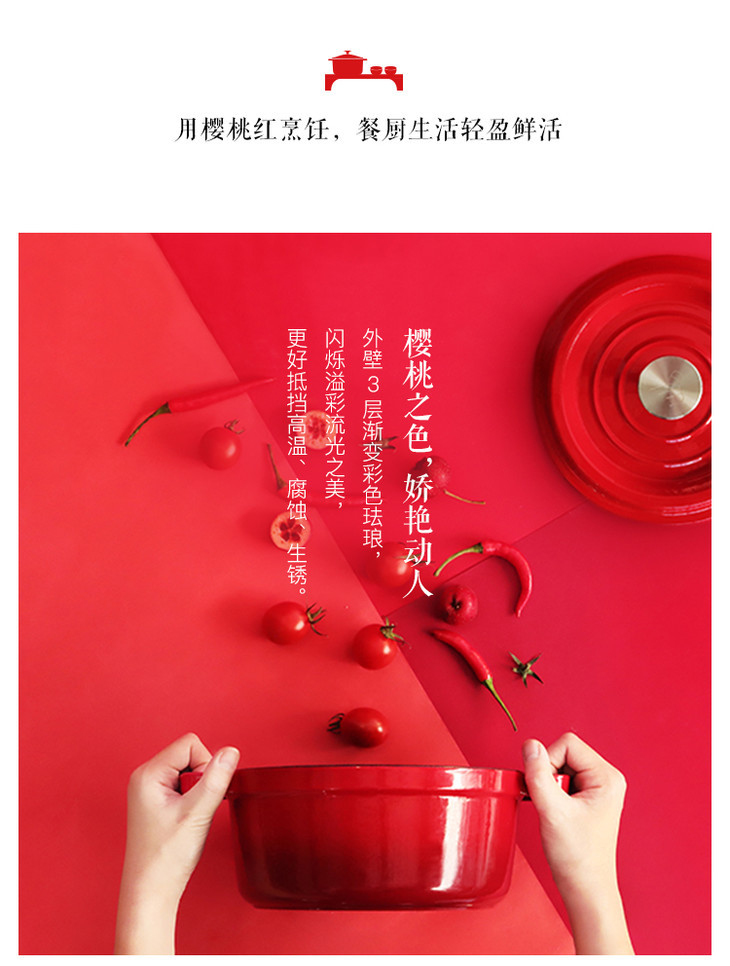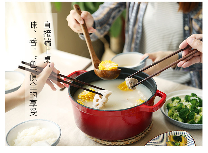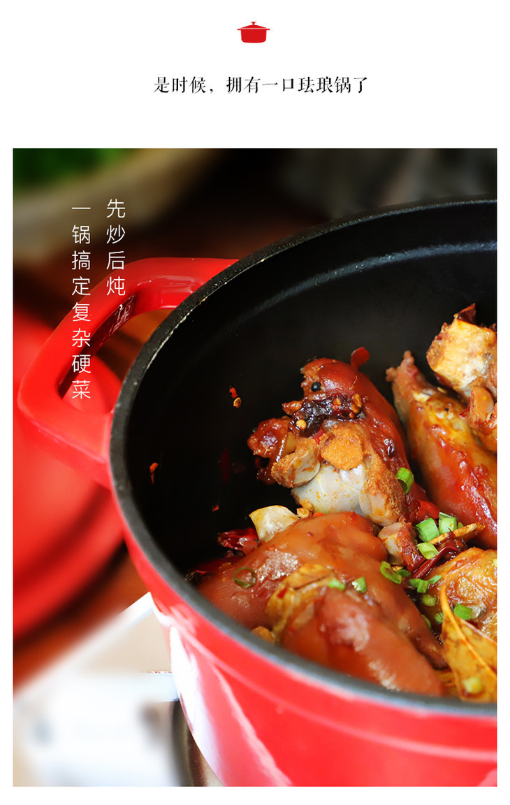 【外运团 每周一发货】易锅 |22*15 经典必选铸铁樱桃红色炖锅 炖煮炒全能 喜庆又养眼 耐用又皮实 多功能 健康不粘锅