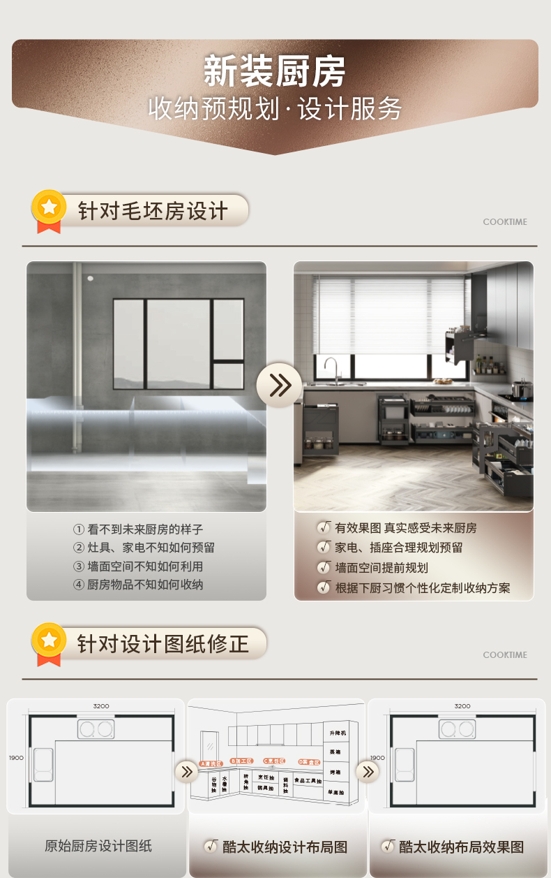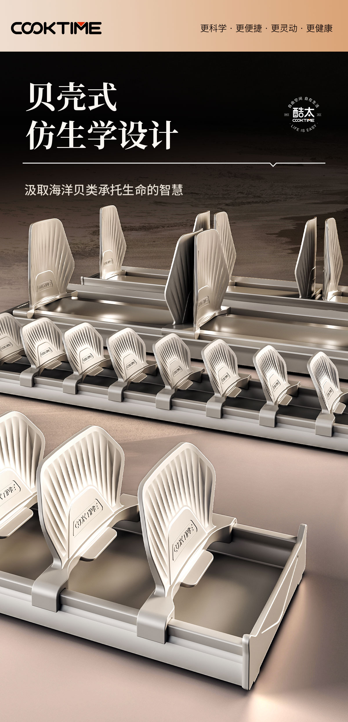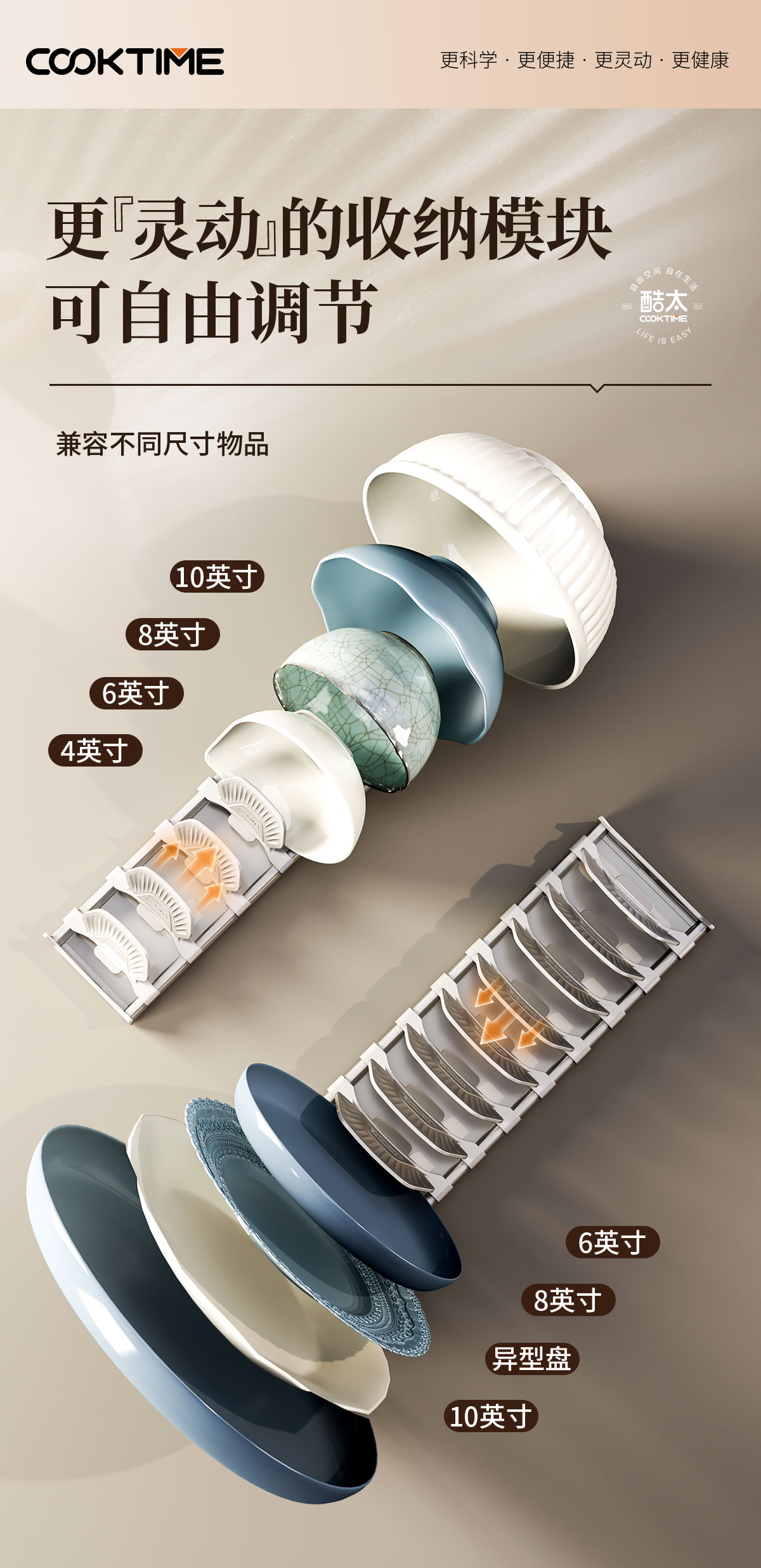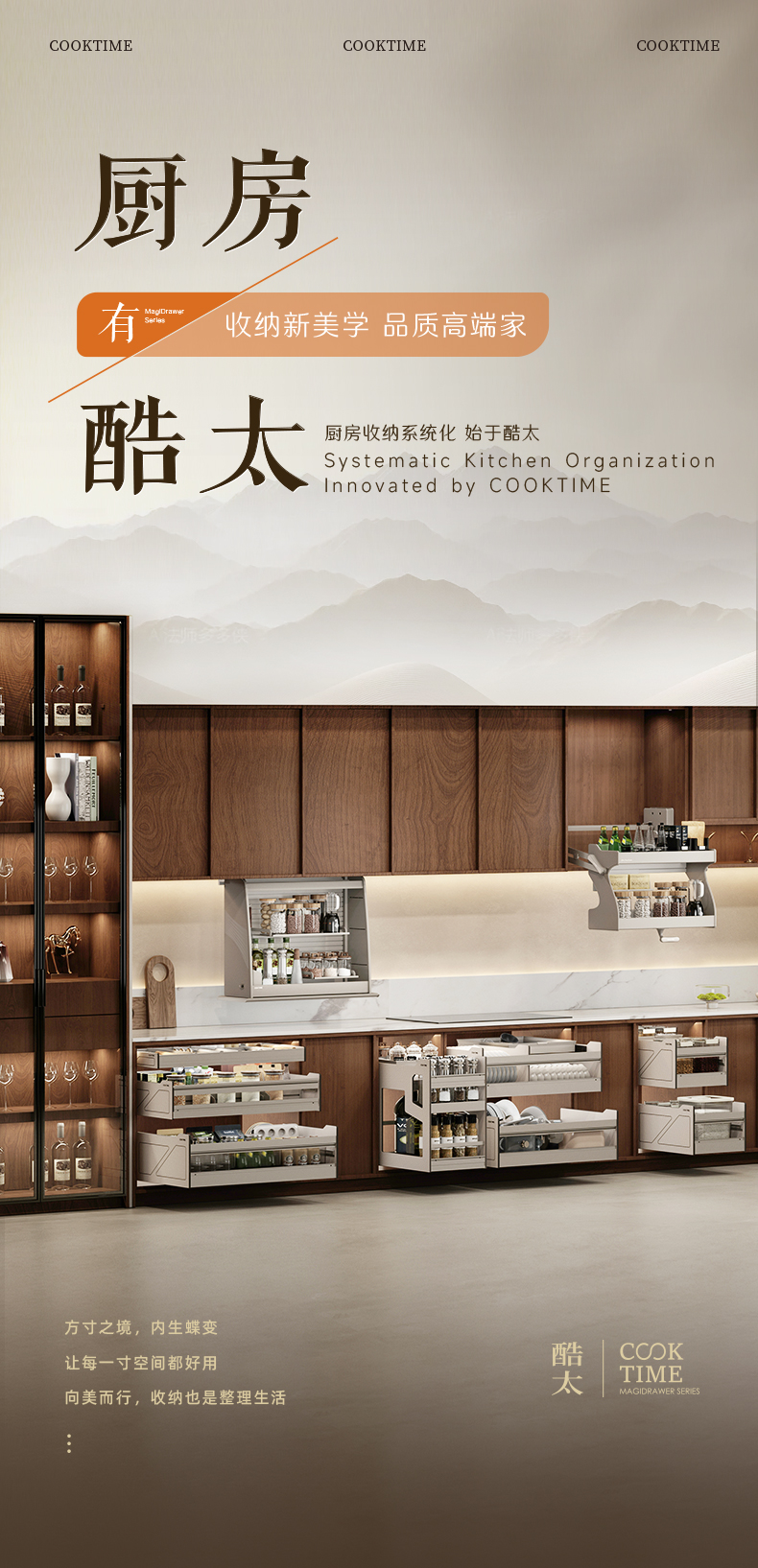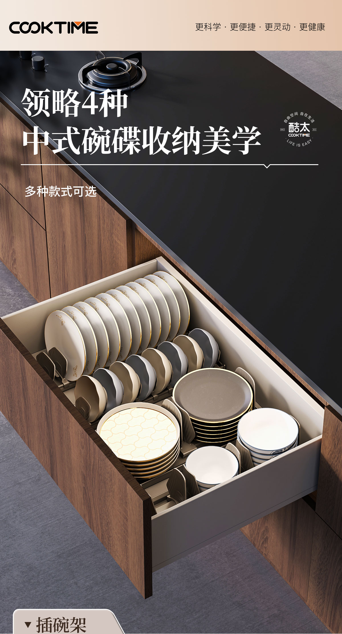 - 酷太坚持8年自主研发,已获得专利证书130项,拥有一套领先市场的厨房收纳系统,为千万中国家庭解决厨房脏乱差,缔造厨房新生活。