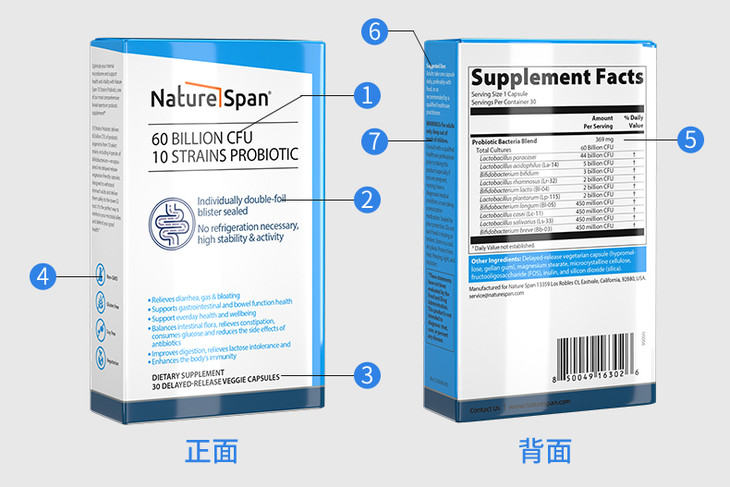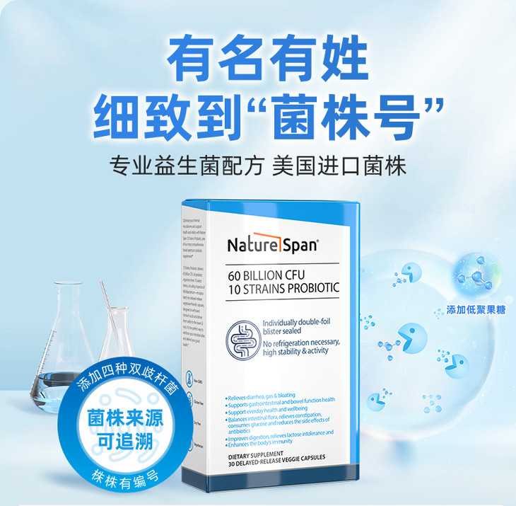 600亿活菌肠胃道10种超级复合益生菌 平衡菌群活性美国原装进口胶囊 NATURESPAN倍能适