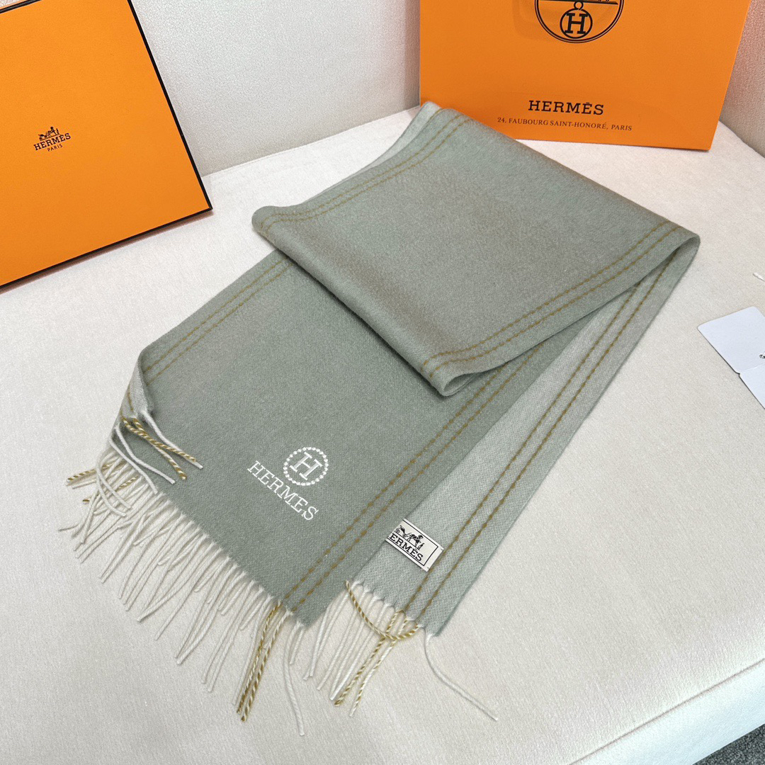 秋冬特惠💰300 HERMES🧣爱马仕围巾 巴黎时装展商务男士女士通用双面羊毛披肩 进行纯手工精梳处理 耗时耗力 再以清泉水浸泡涤荡 手感才如此细腻 最后以考究压印与熨烫工艺 才有奢华柔和的表面光泽 工艺特别复杂哦采用蒙古高原细羊绒!这个价格绝对百分之百的实惠!精湛绝伦的绣字工艺!送礼自留都不错!绝对好货!尺寸:200(含须)*32cm