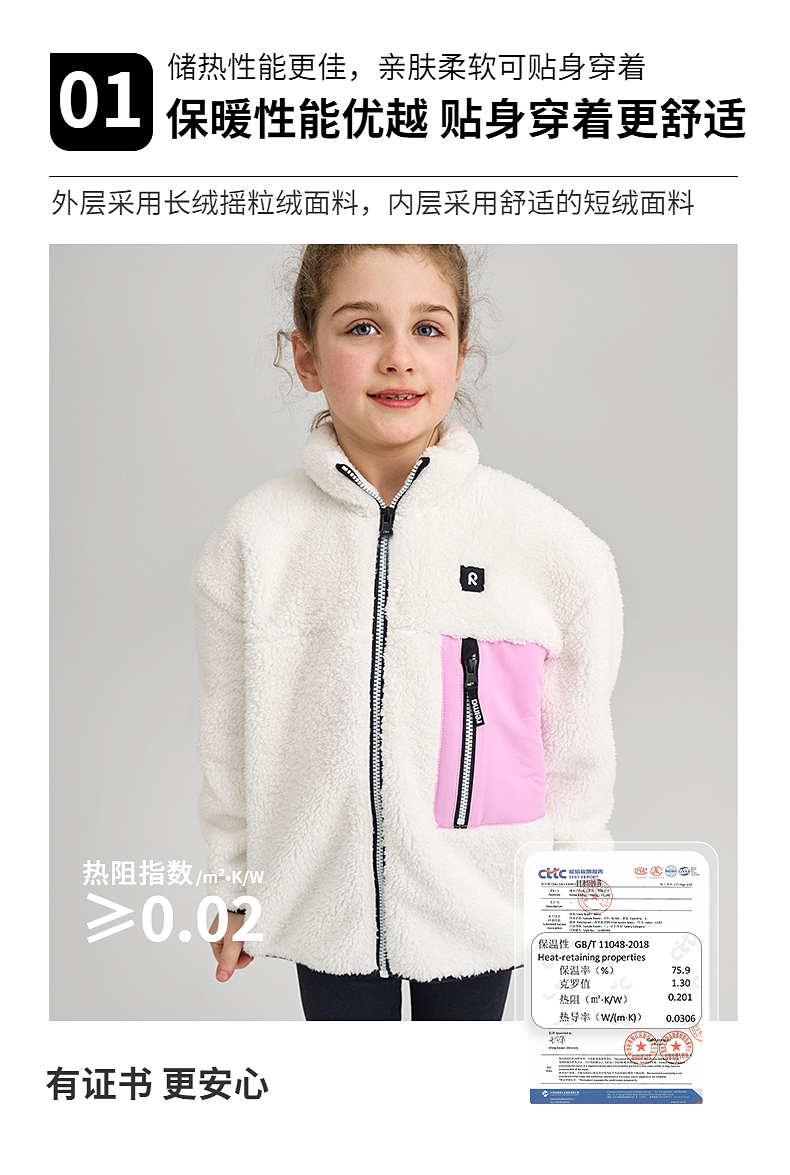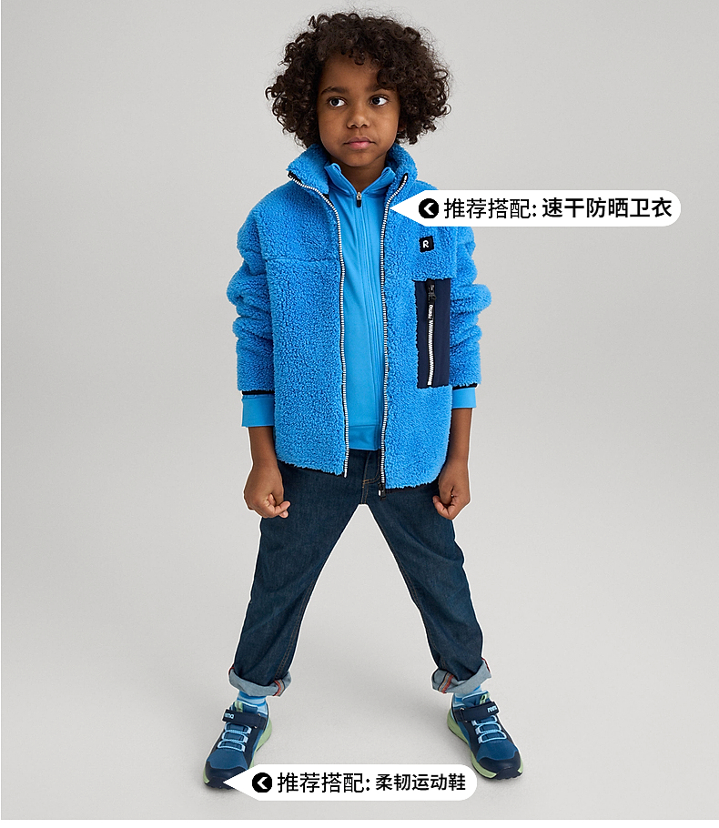 reima男女儿童抓绒卫衣大童2024春季新款摇粒绒保暖长袖外套