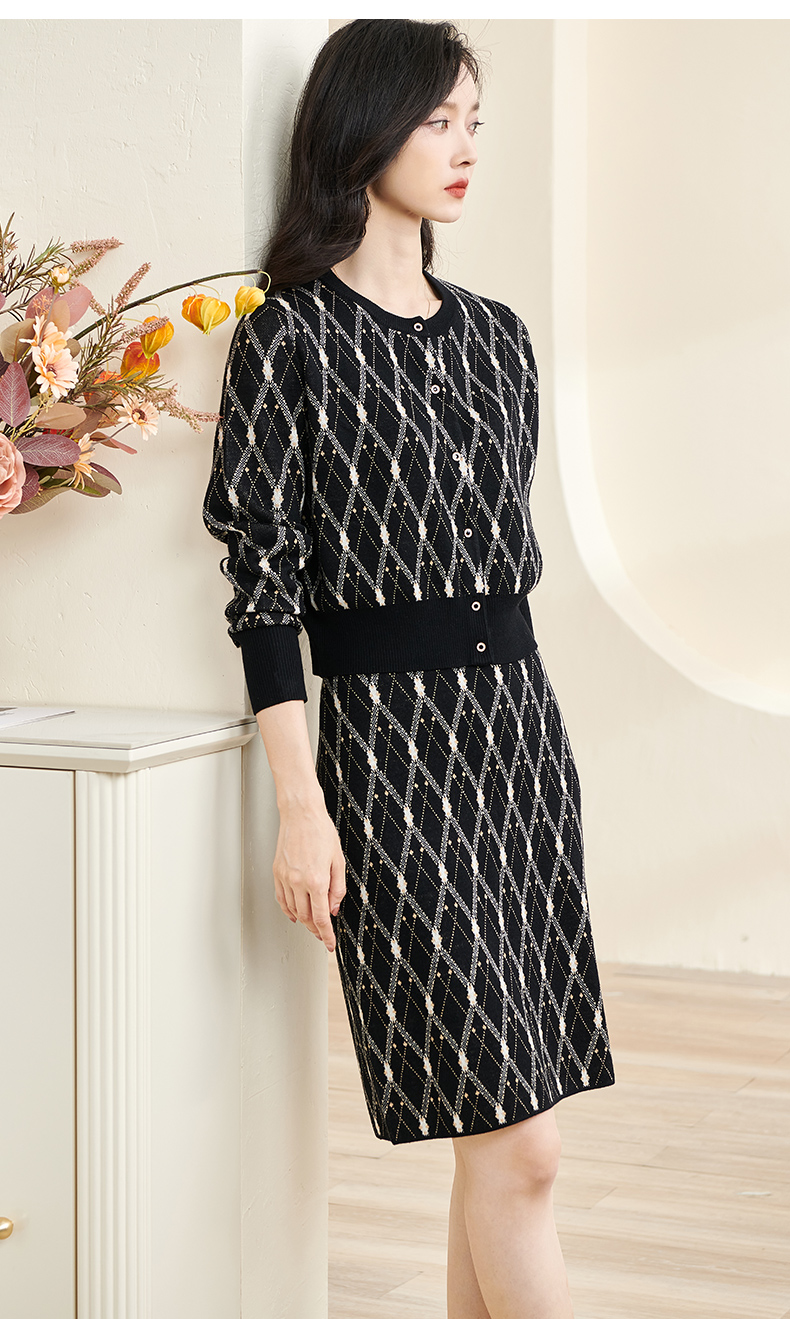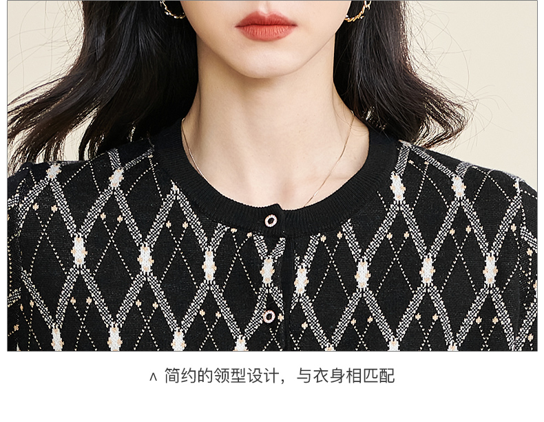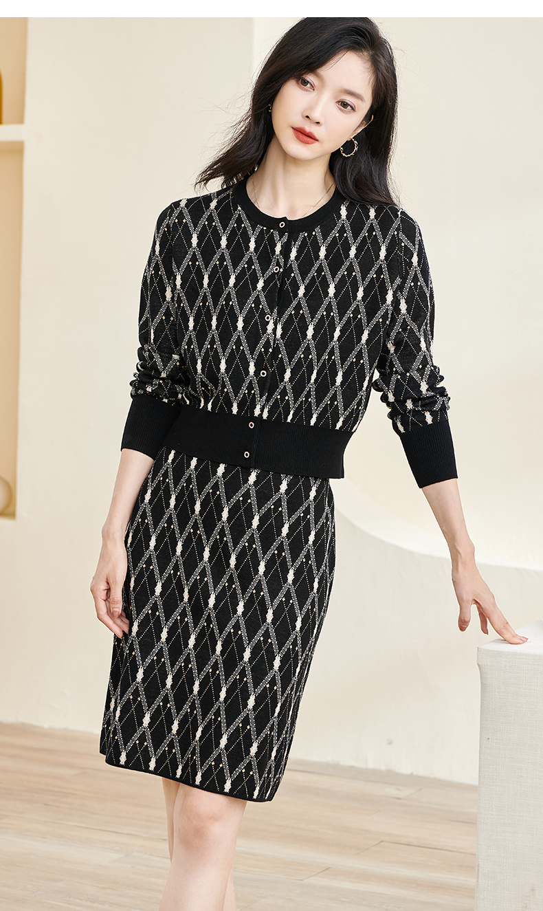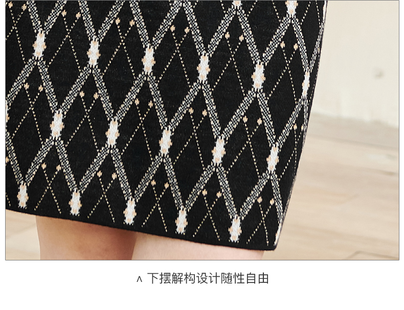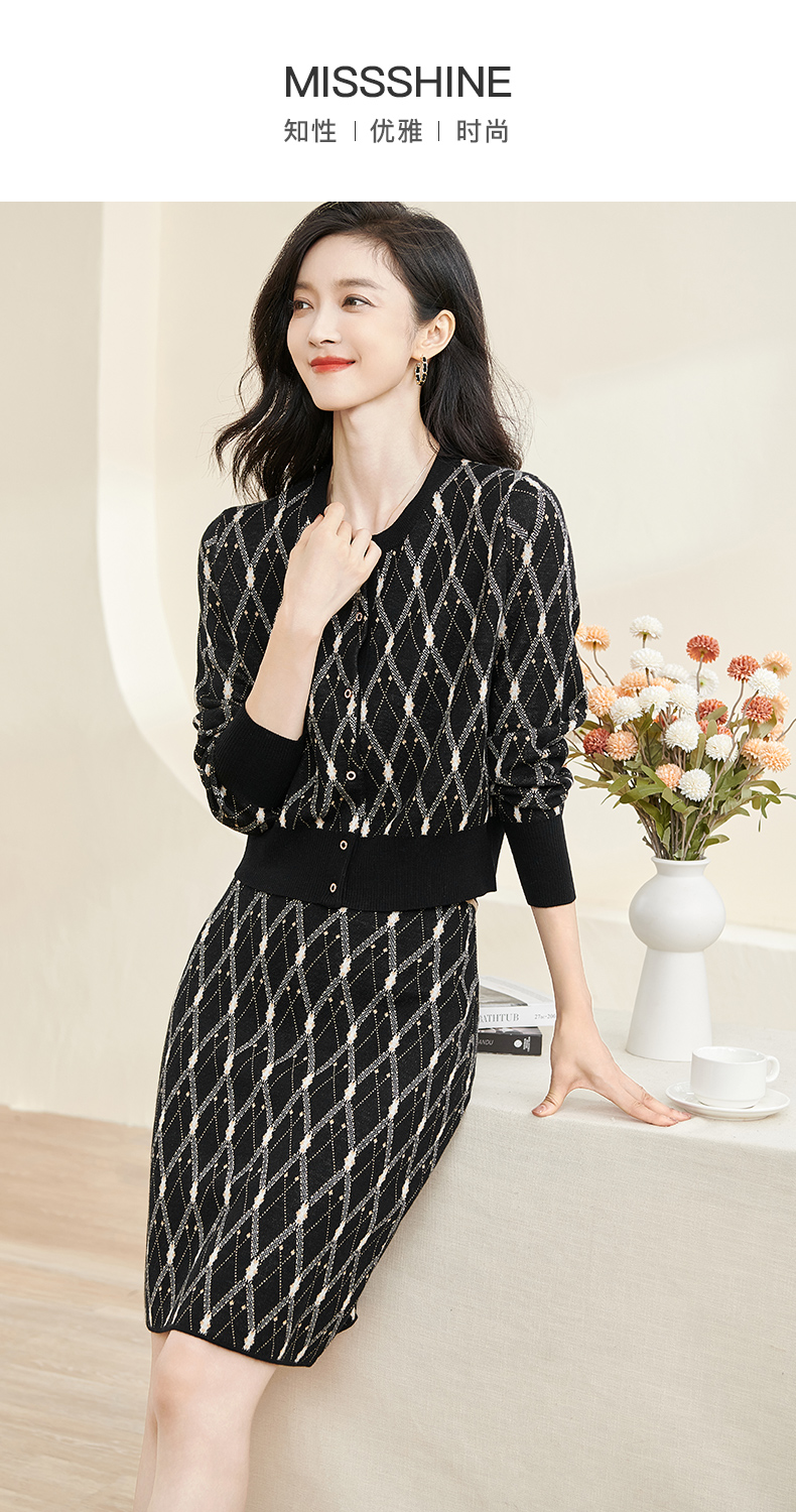 剩L 米思阳2024秋季新款精致优雅气质套装菱形图案上衣半裙两件套3104