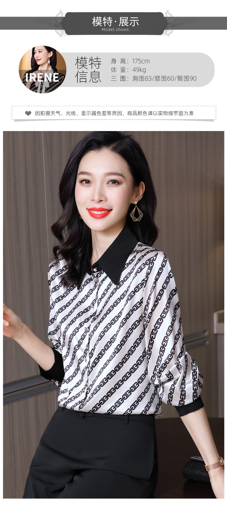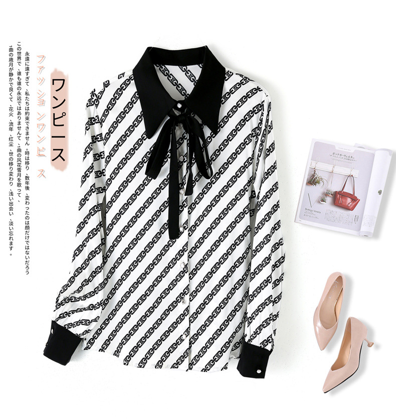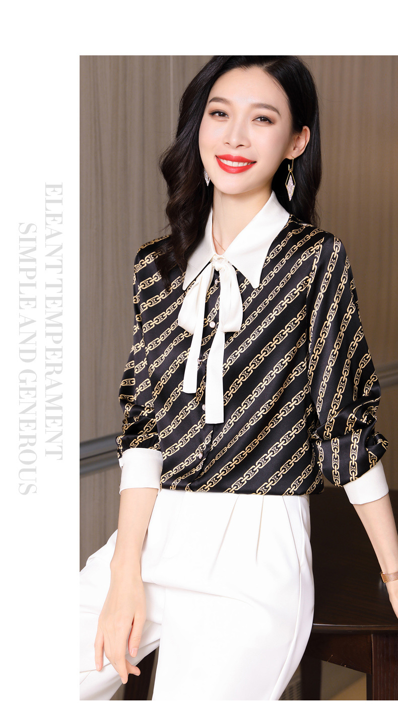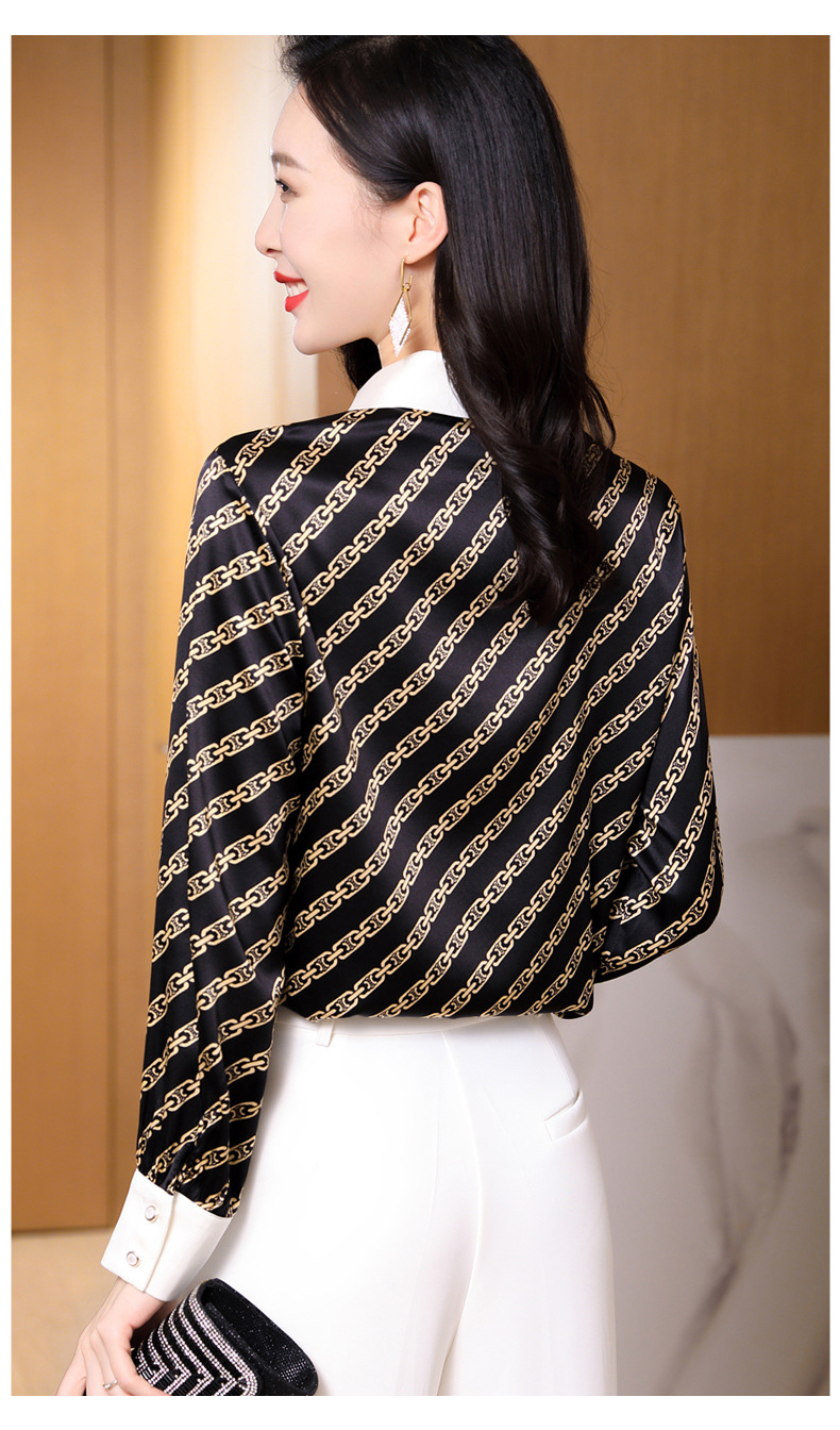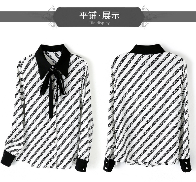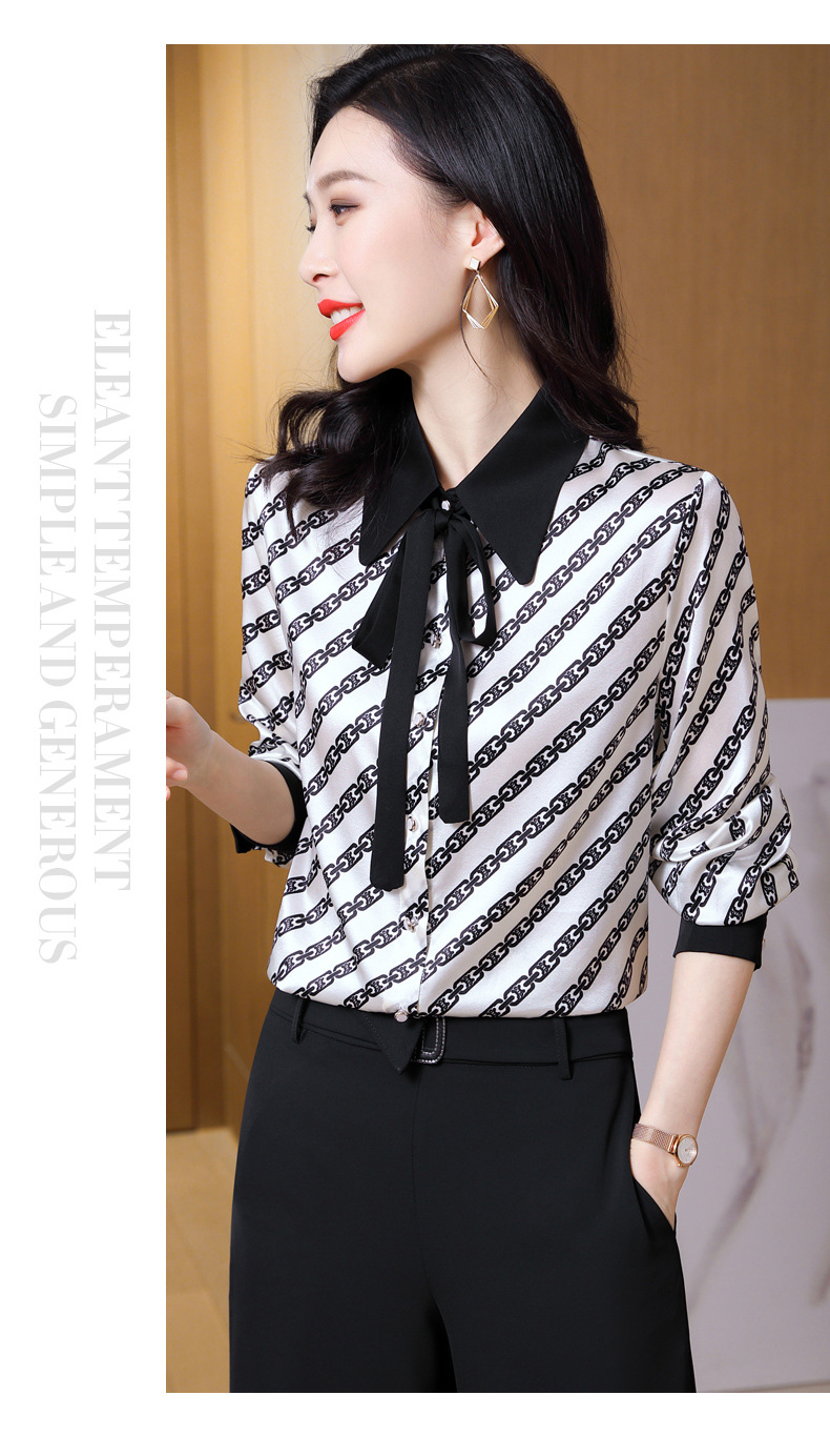 时尚百搭港风设计感小众桑蚕丝条纹优雅潮流立领女士衬衫
