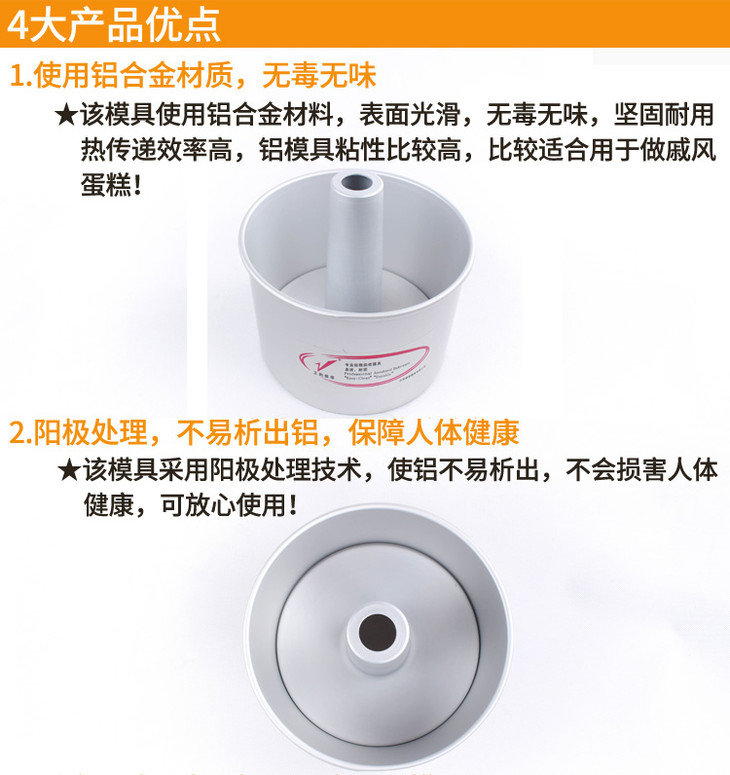 正的 6寸/8寸 活底天使戚风蛋糕模 活底阳极烟囱铝模 中空模具