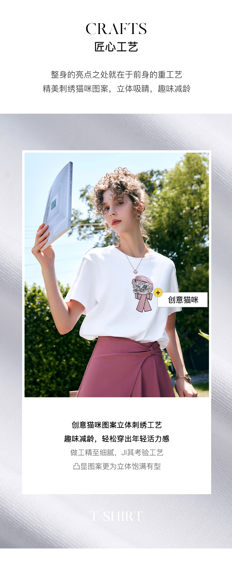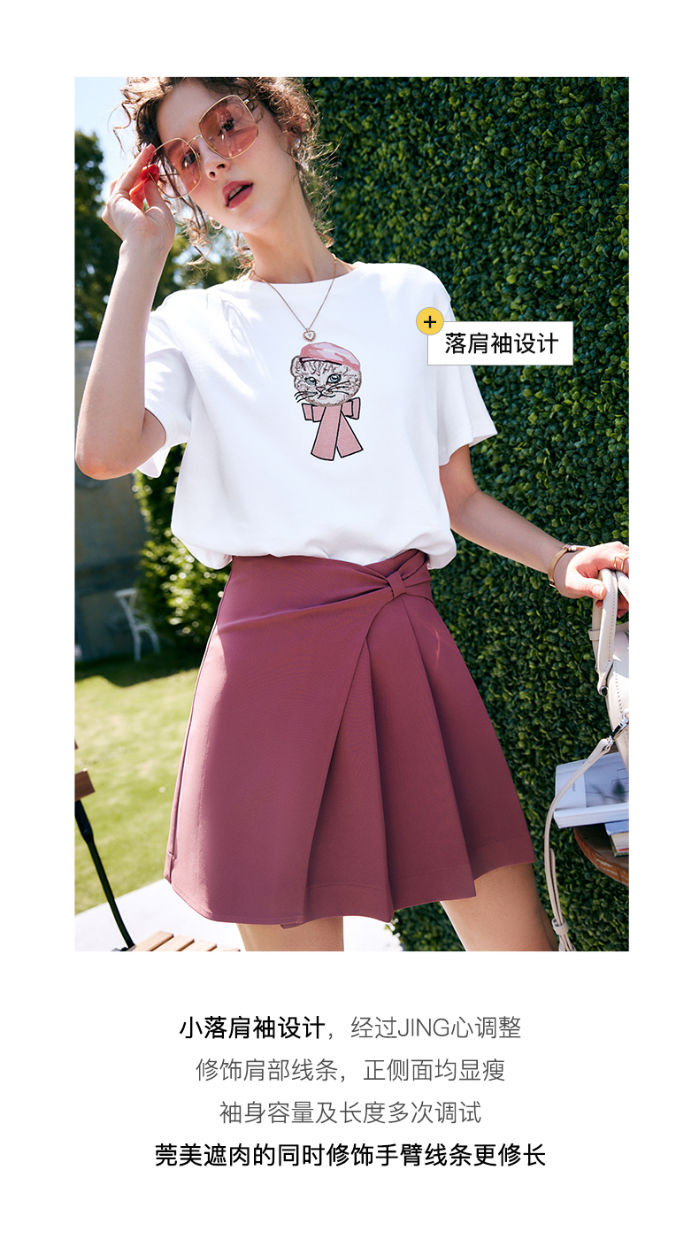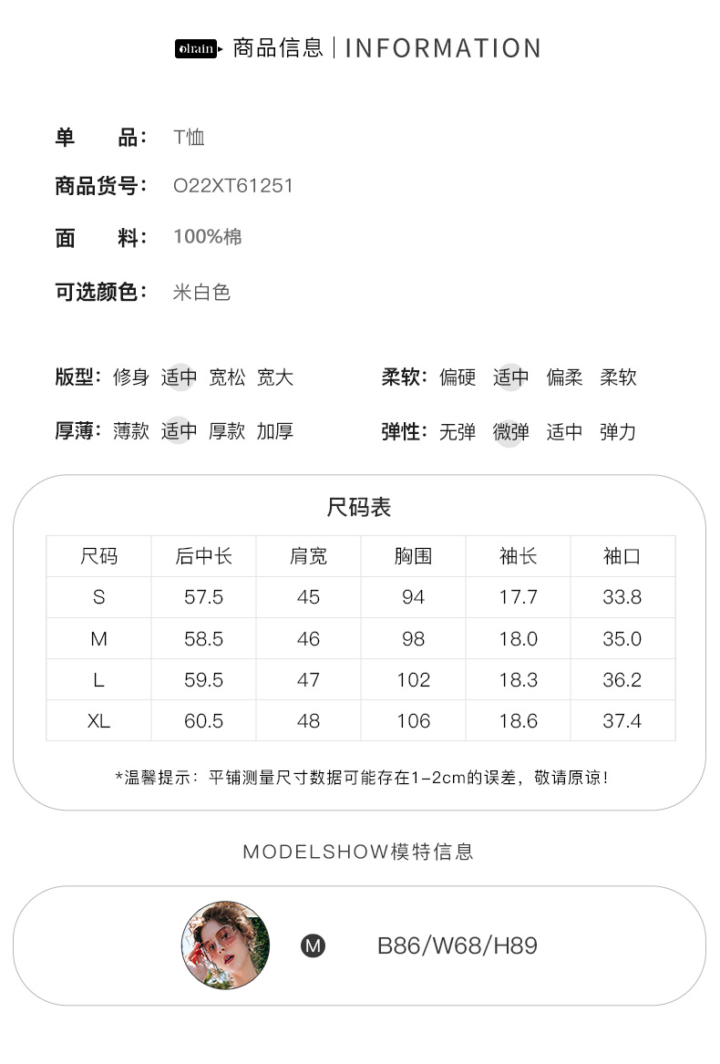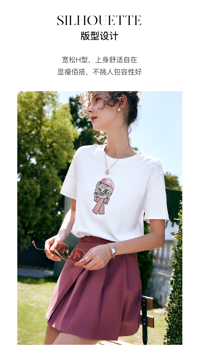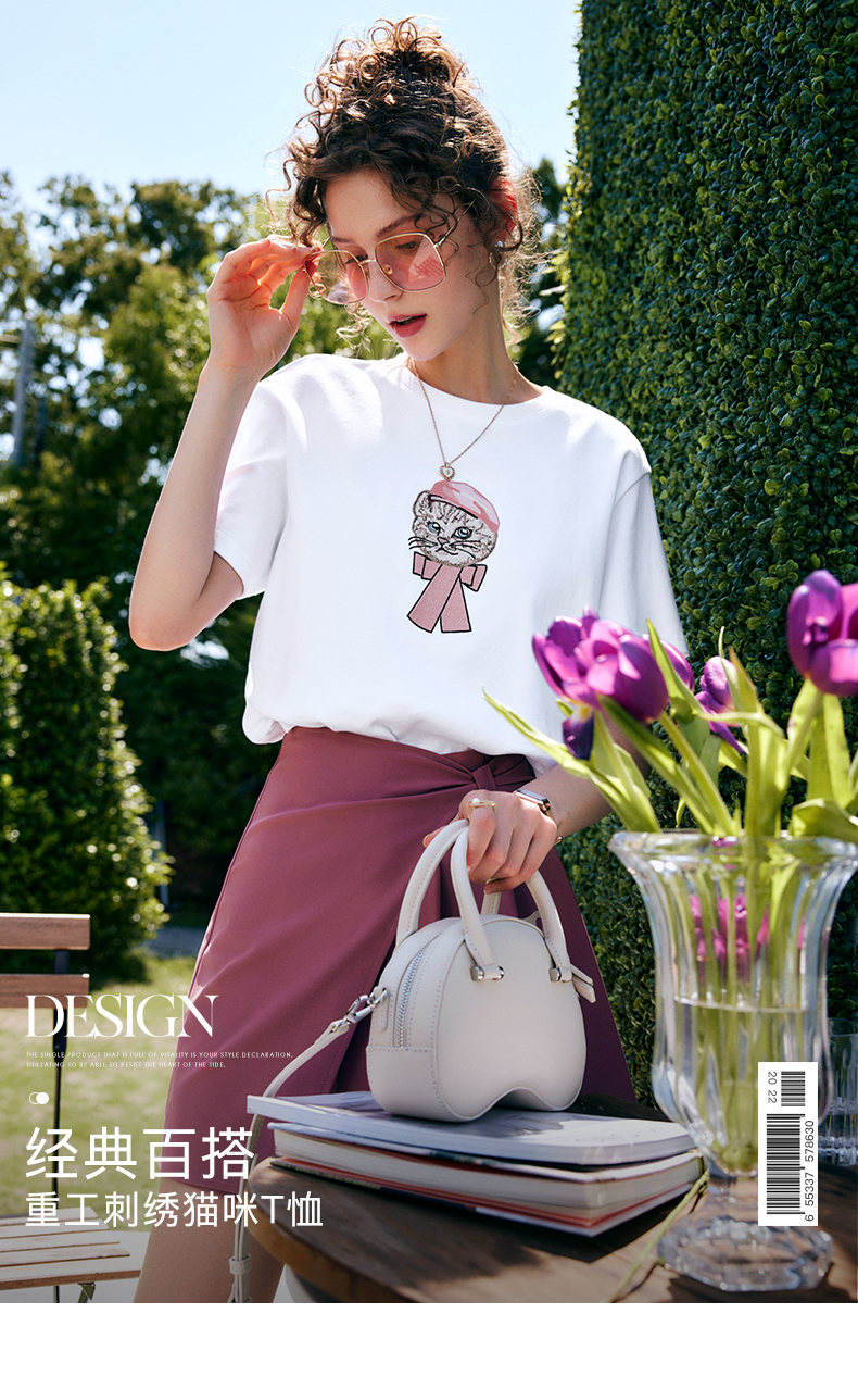 OLrain法式高级穿搭白色短袖T恤女夏季2022新款宽松时尚纯棉上衣