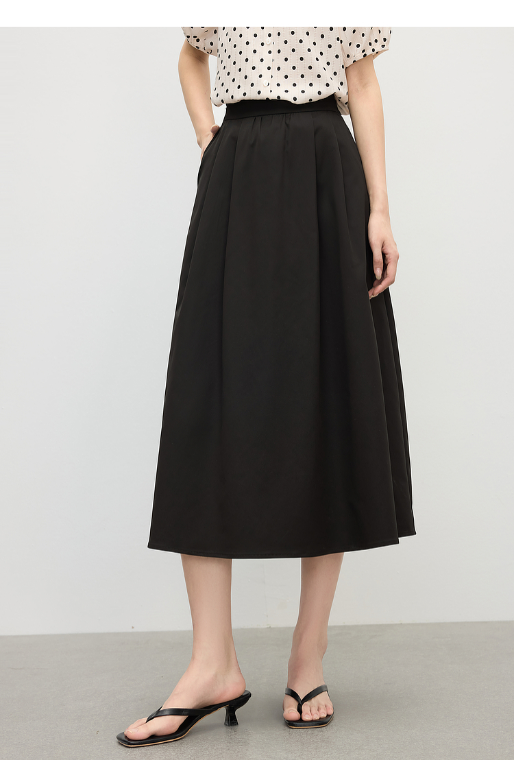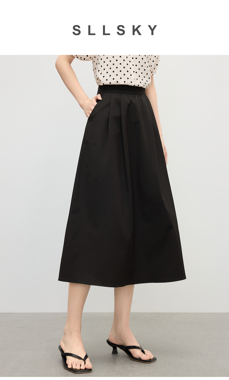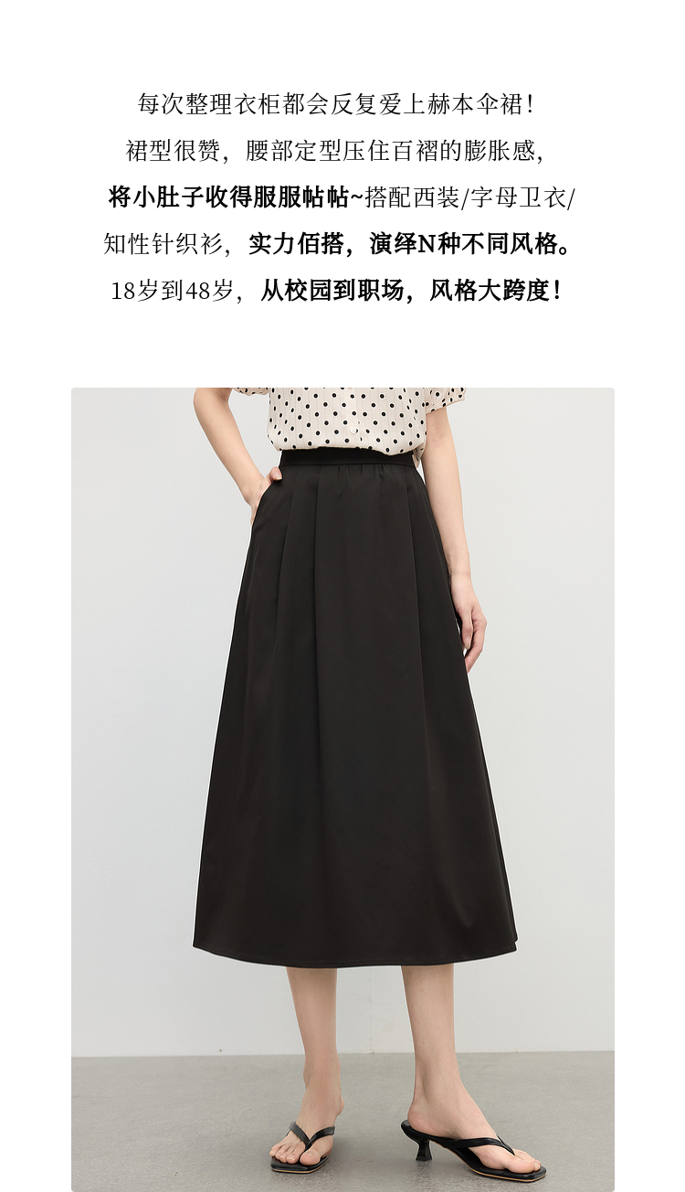 【专属特价】熙世界黑色a字半身裙女中长款通勤教资面试中长裙子2025夏季新款