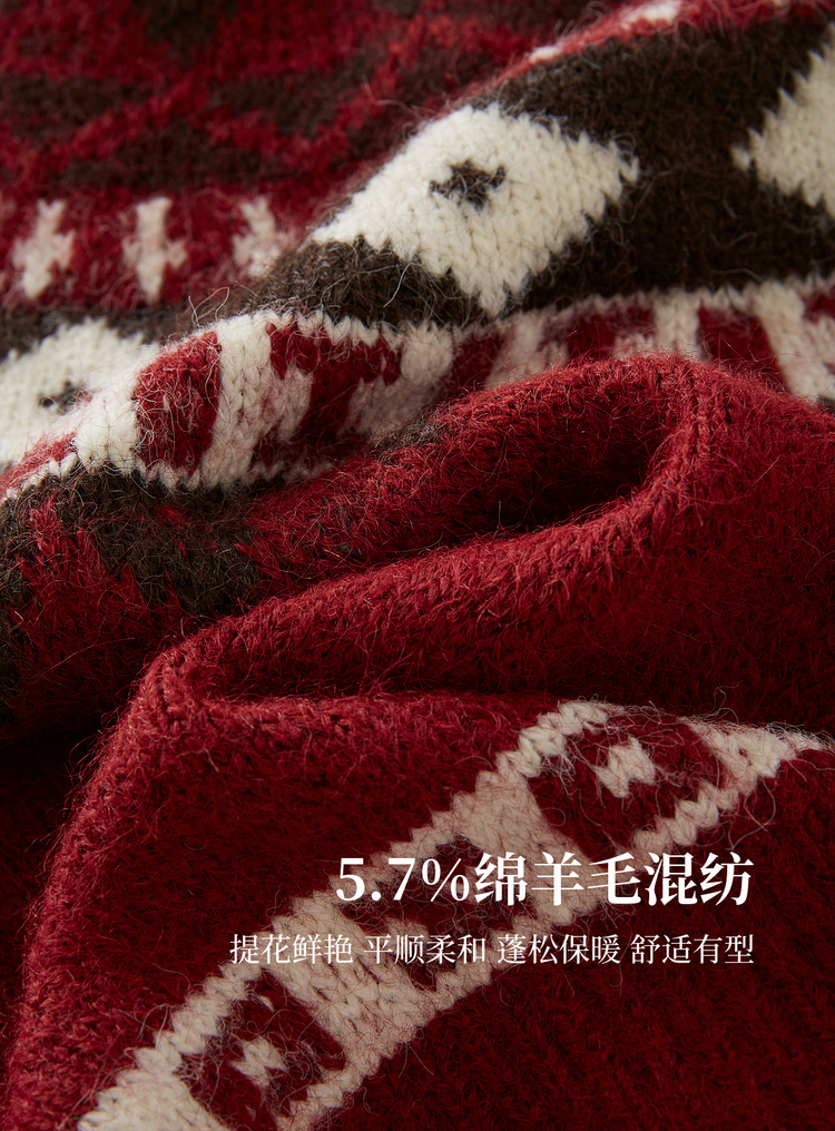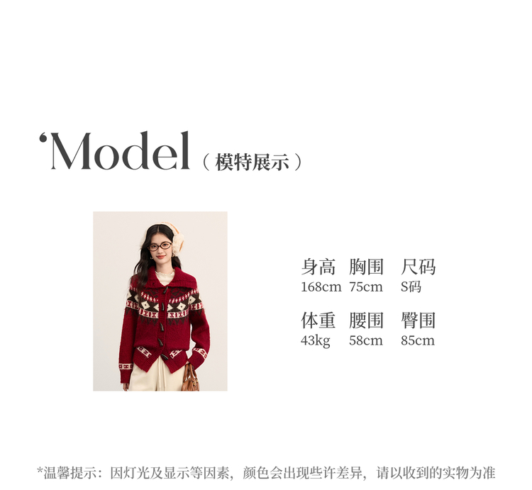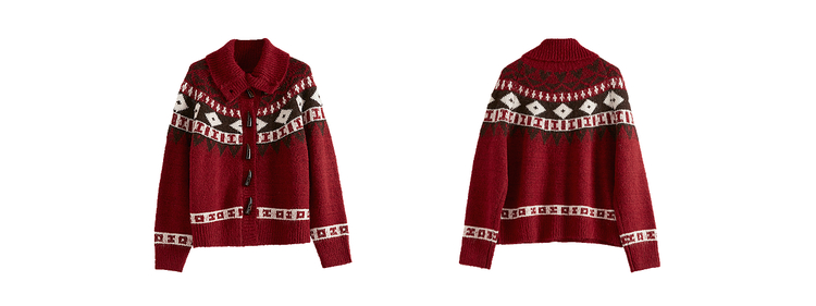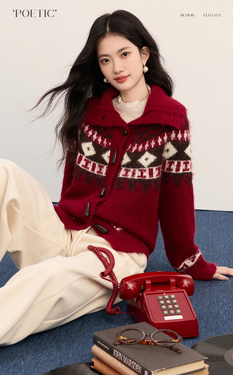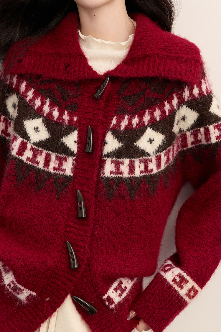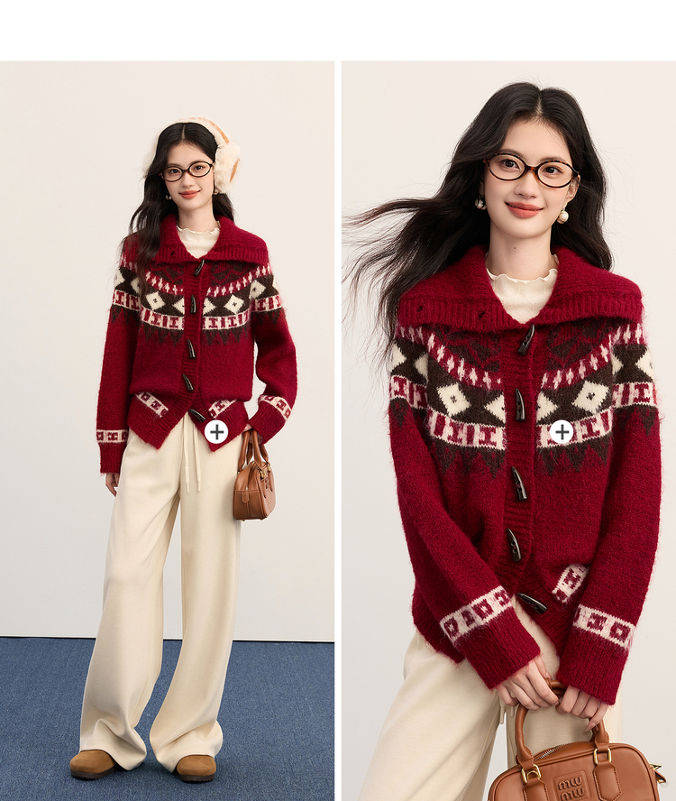 【11/19新品】熙世界复古学院风费尔岛针织开衫女秋冬宽松设计感牛角扣毛衣外套