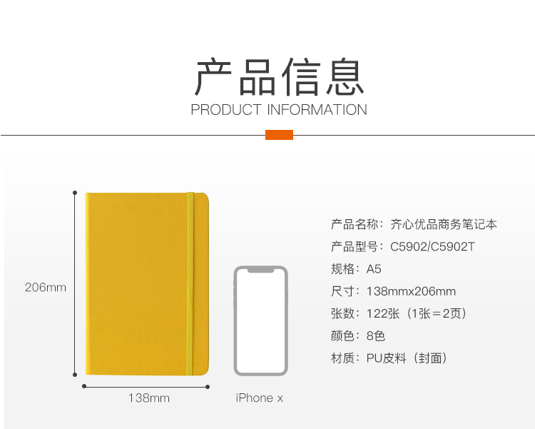 齐心(Comix)A5/122张皮面本优品商务笔记本子会议记事本文具经典日记本 黑色 C5902