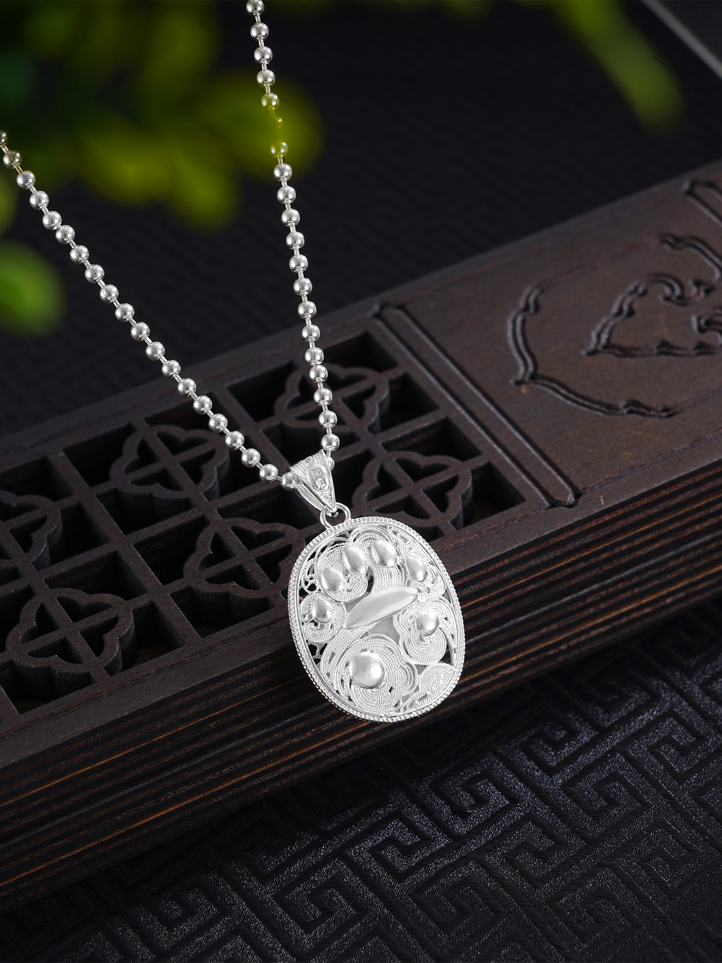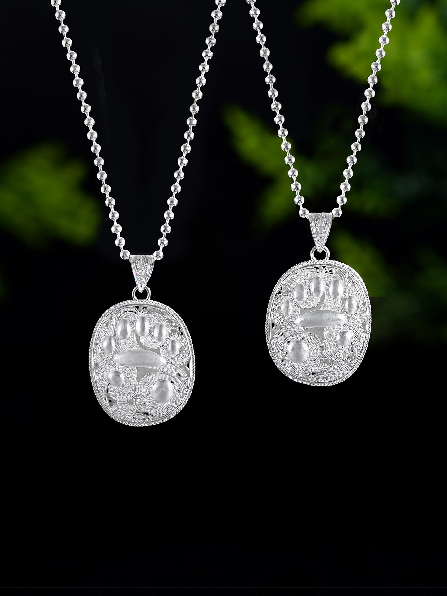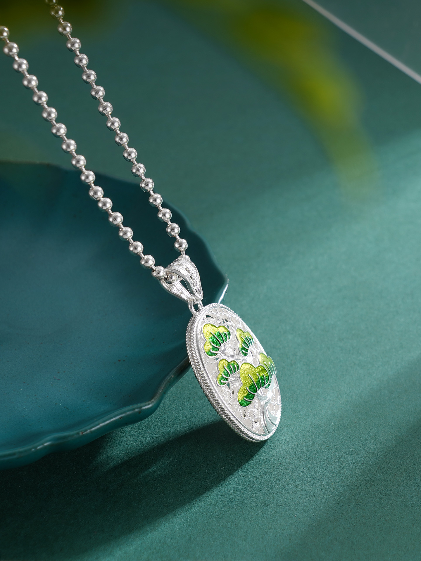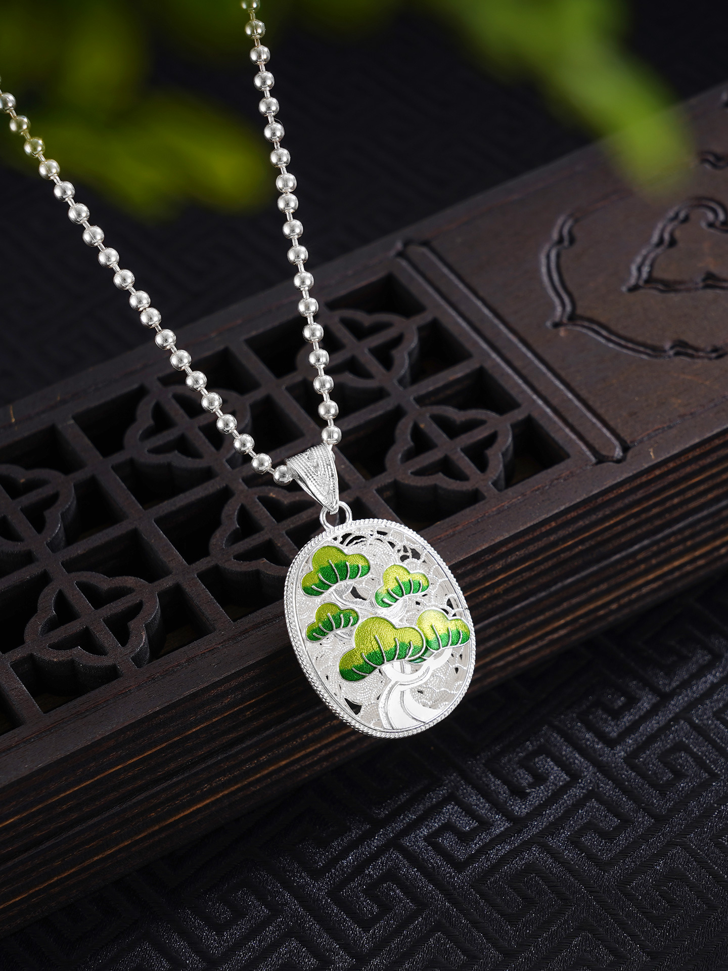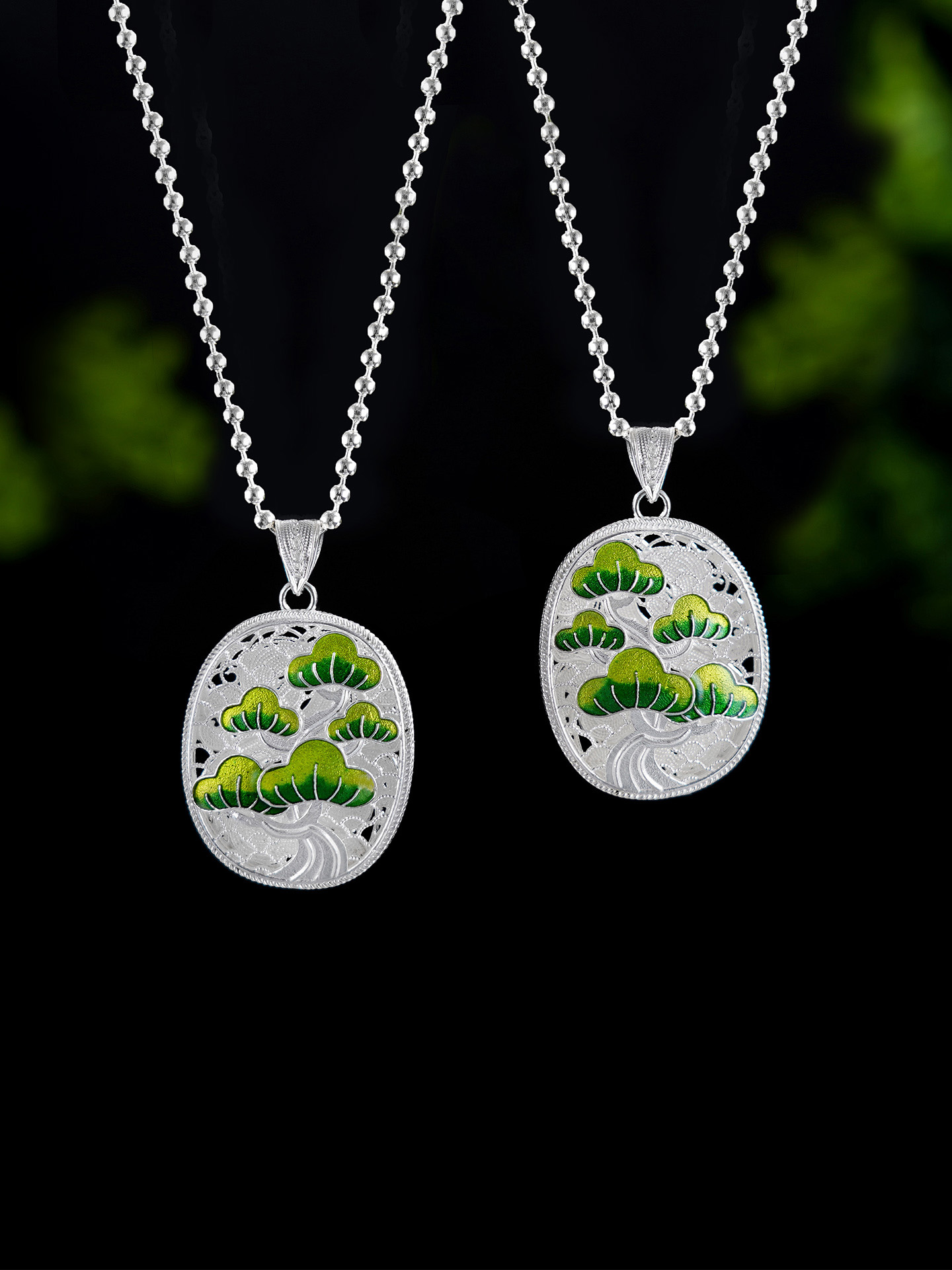 子佩集S990银【青松怡悦】情侣套链项链【DSDZ006】原创作品花丝珐琅彩双面设计2509