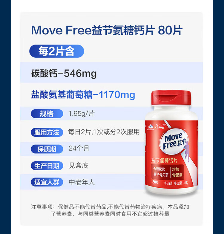 【国内版】Move Free益节氨糖钙片80粒 氨糖+钙 保护骨关节
