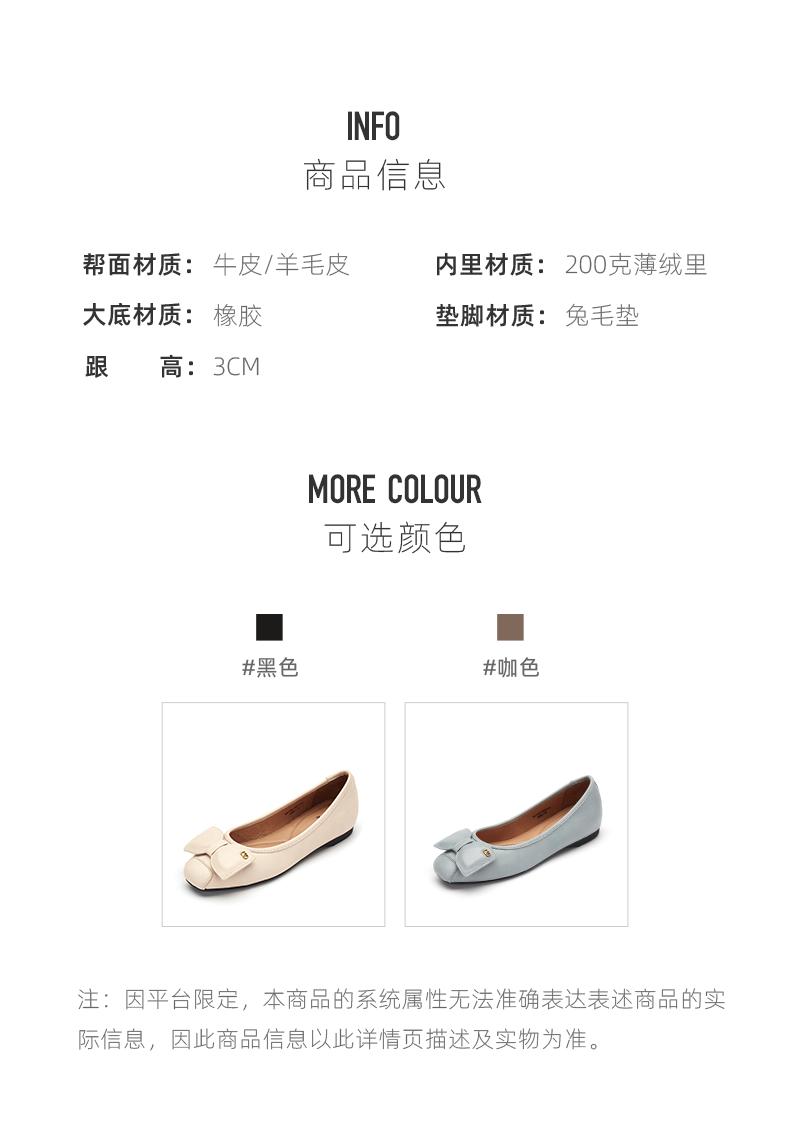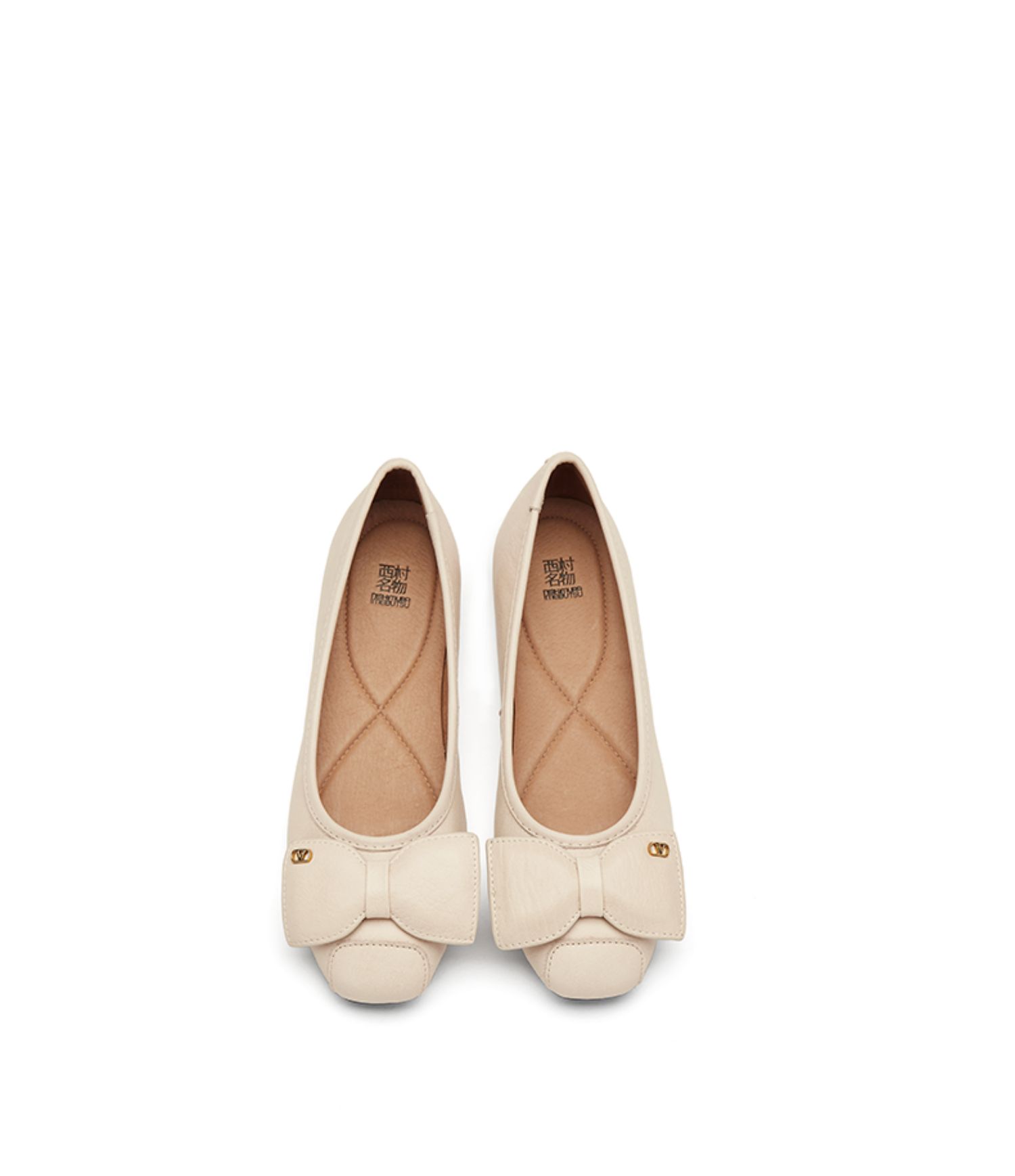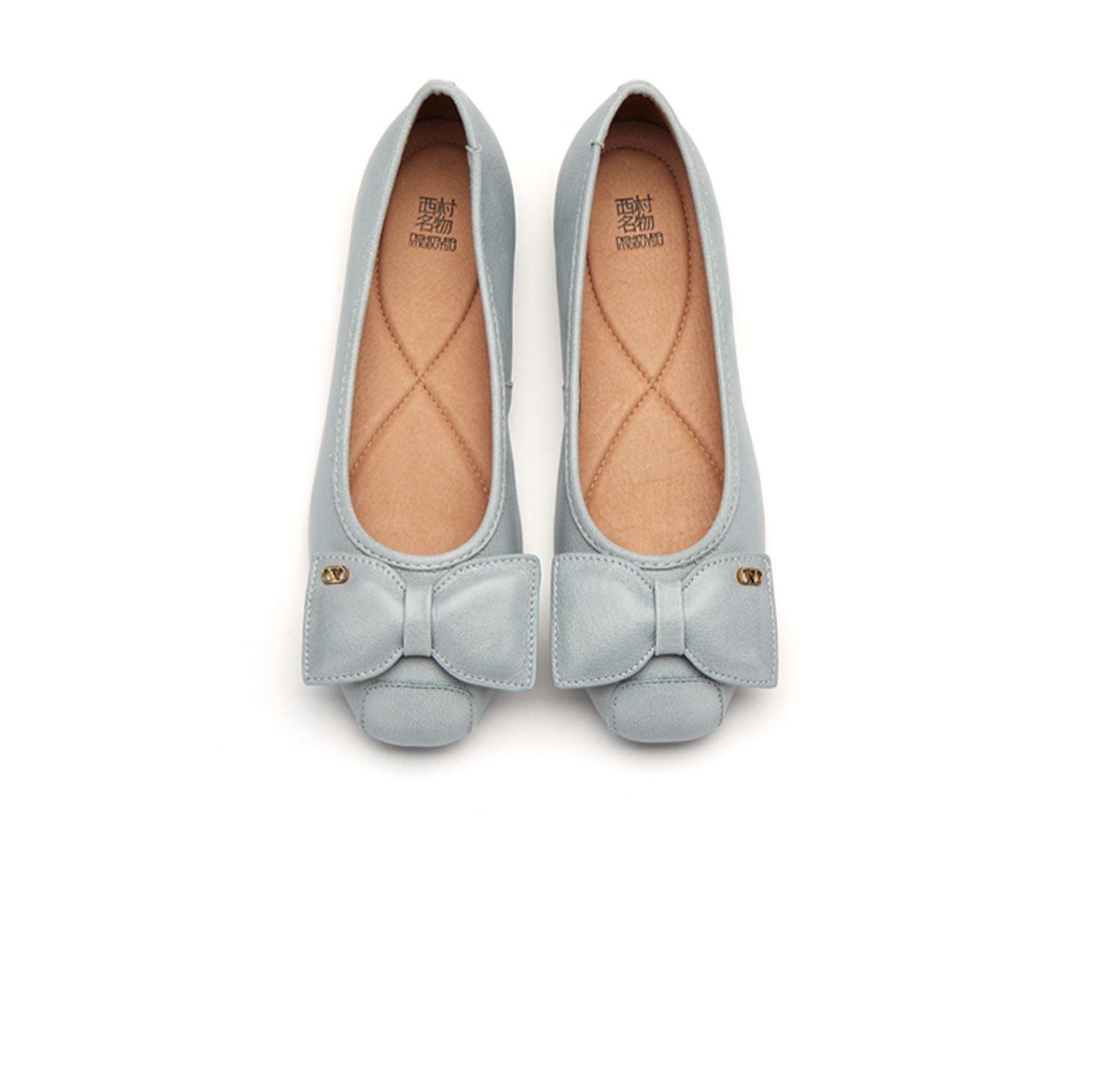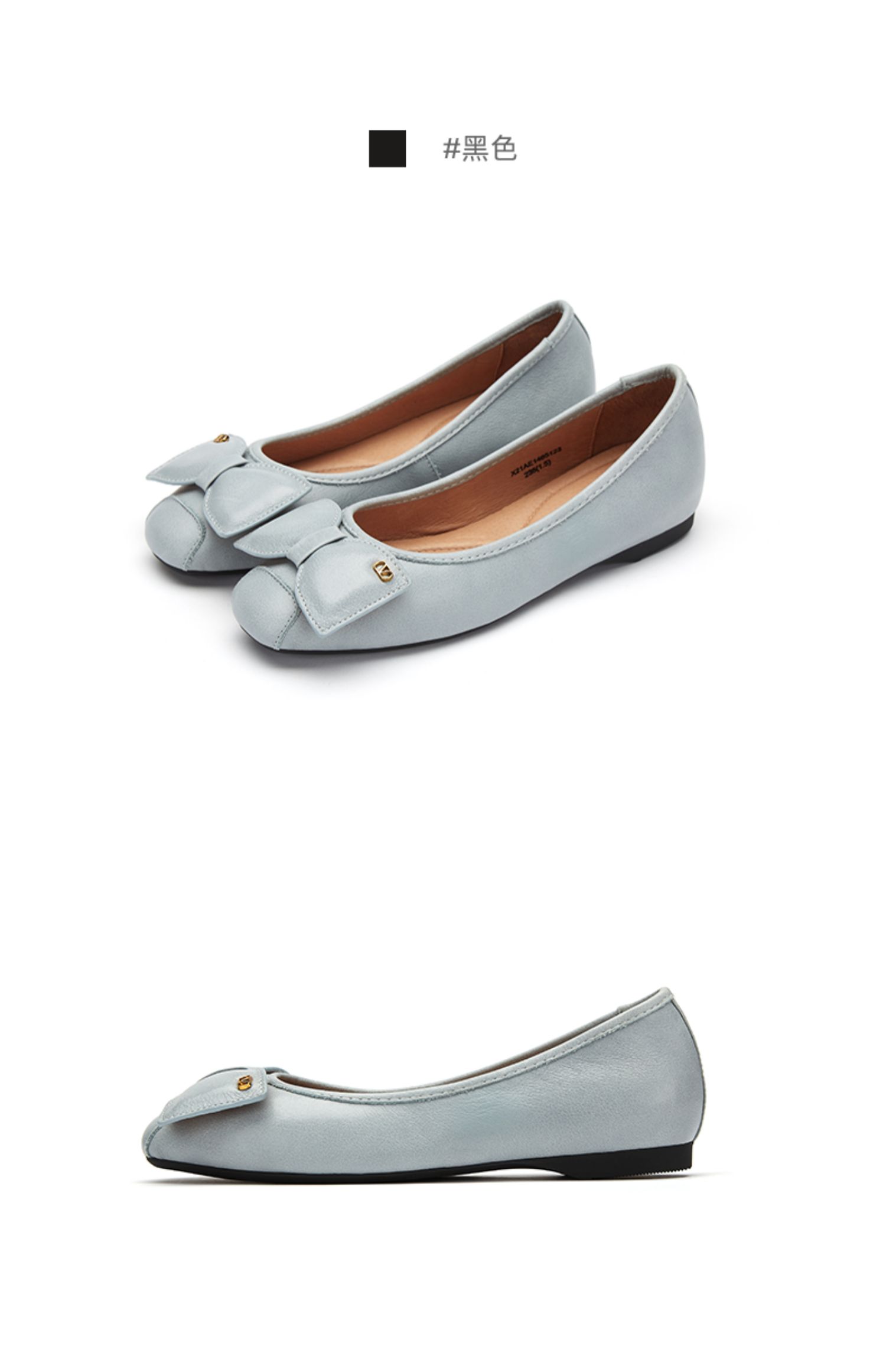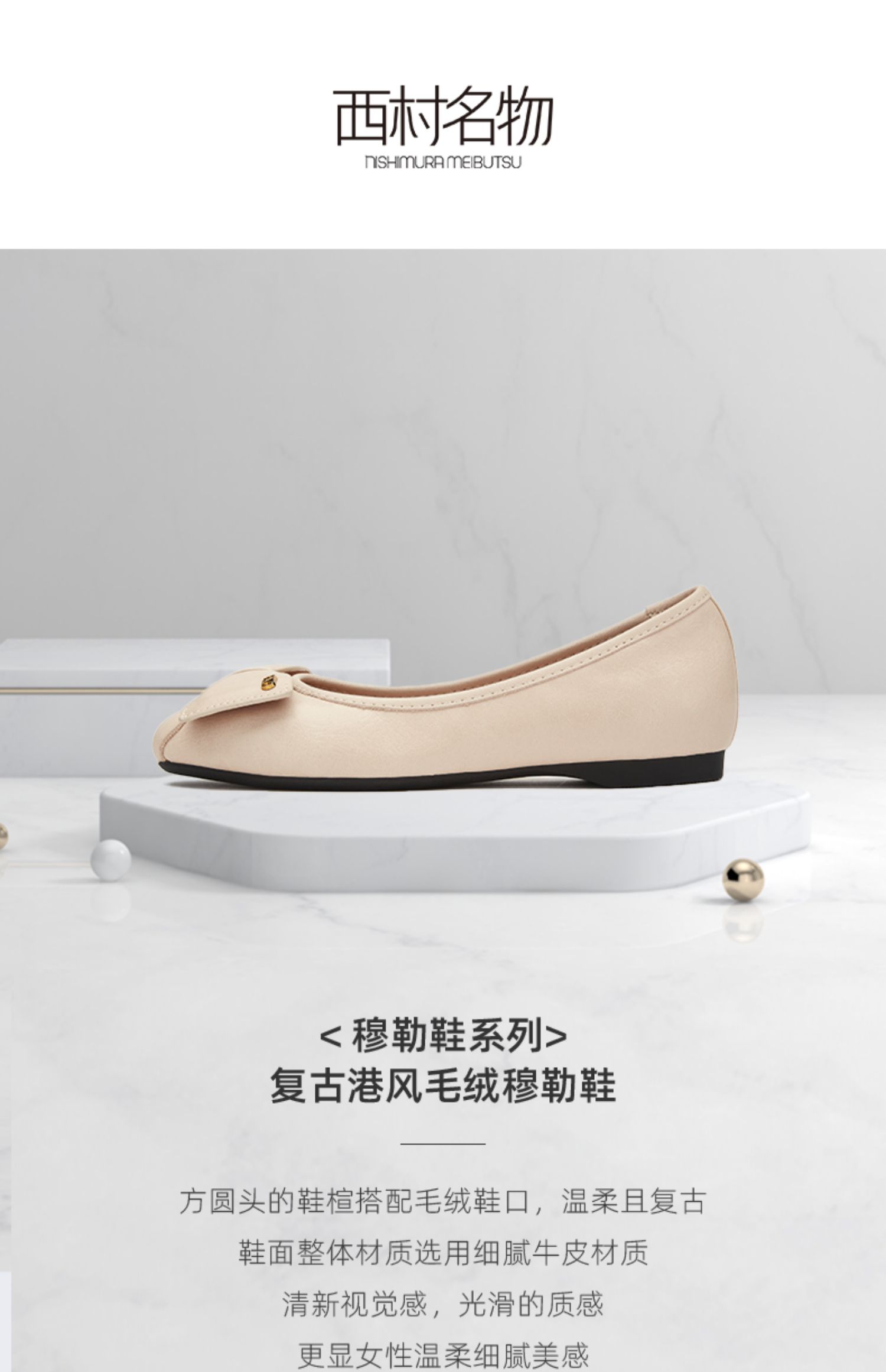 西村名物2021春季新款单鞋女平底方头蝴蝶结浅口休闲鞋百搭X21AE14851