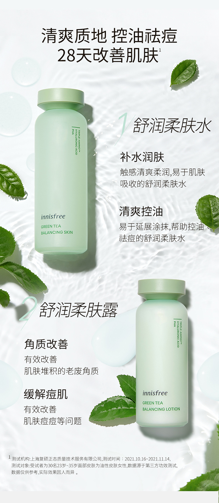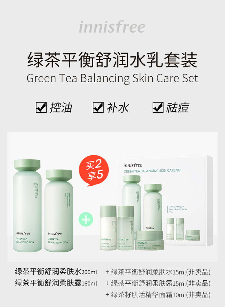 悦诗风吟绿茶平衡舒润水乳套装 控油 护肤品礼盒