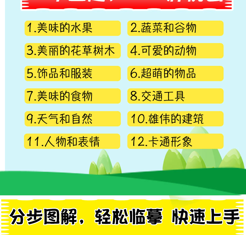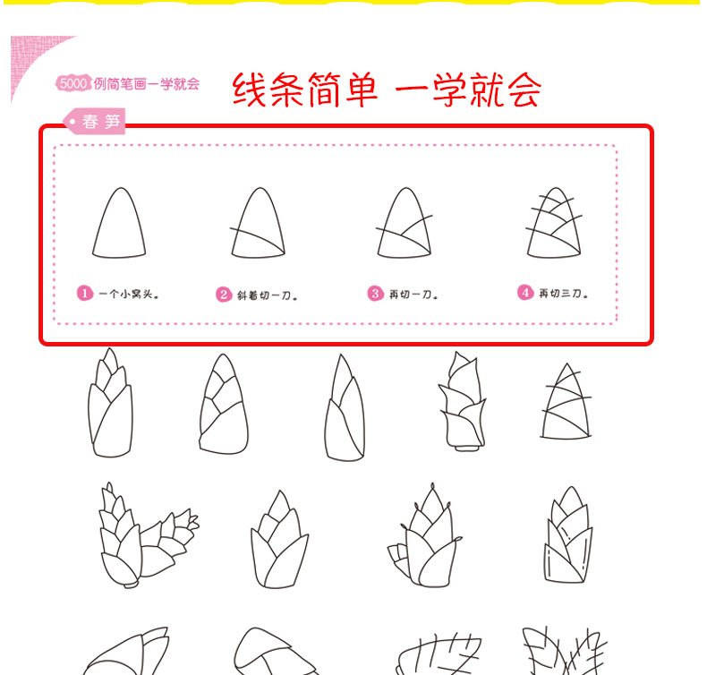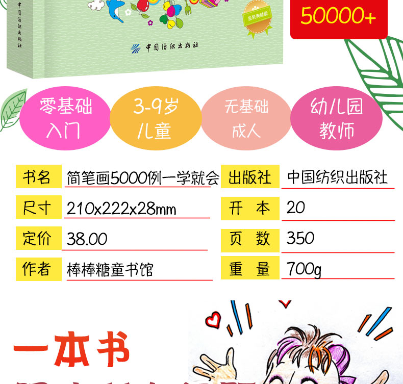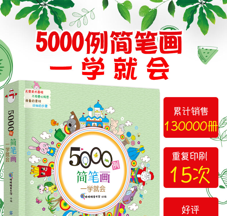 儿童绘画应该如何起步?如何激发孩子的绘画兴趣和丰富的想象力?想要画画缺不知道从哪里入手?想要体验绘画的乐趣?相信这本《5000例简笔画一学就会》都可以满足。。简单的线条,可爱的形状,是孩子创造力和想象力好的体现。本书的简笔画内容涵盖全面,形象可爱,画法简单,对于孩子和家长朋友来讲易学易练,轻轻松松就能掌握,是一本很不错的亲子美术读物。