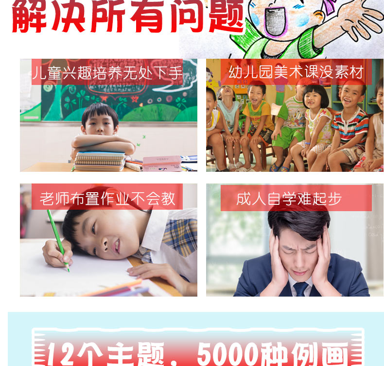 简笔画5000例一学就会一本就够简笔画大全 教材书幼师 3-6-7-9-10岁学画画书儿童绘画教材幼儿园美术培训教