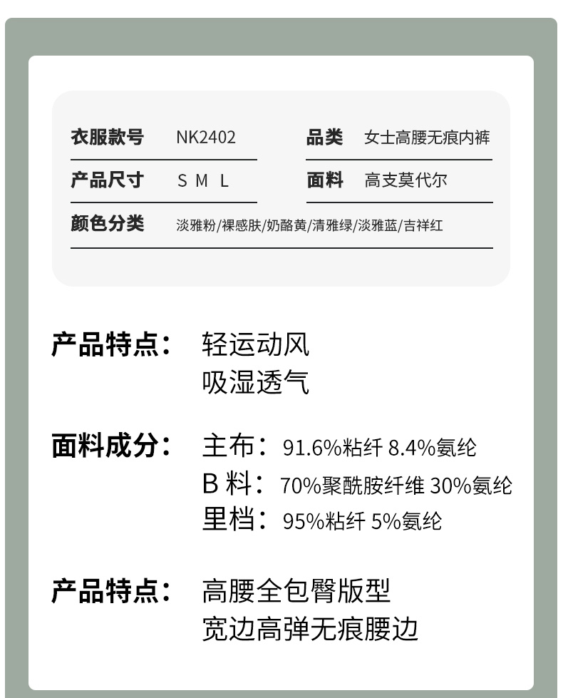 悠妍60支莫代尔女士瑜伽内裤NK2402 高腰清爽透气运动三角裤