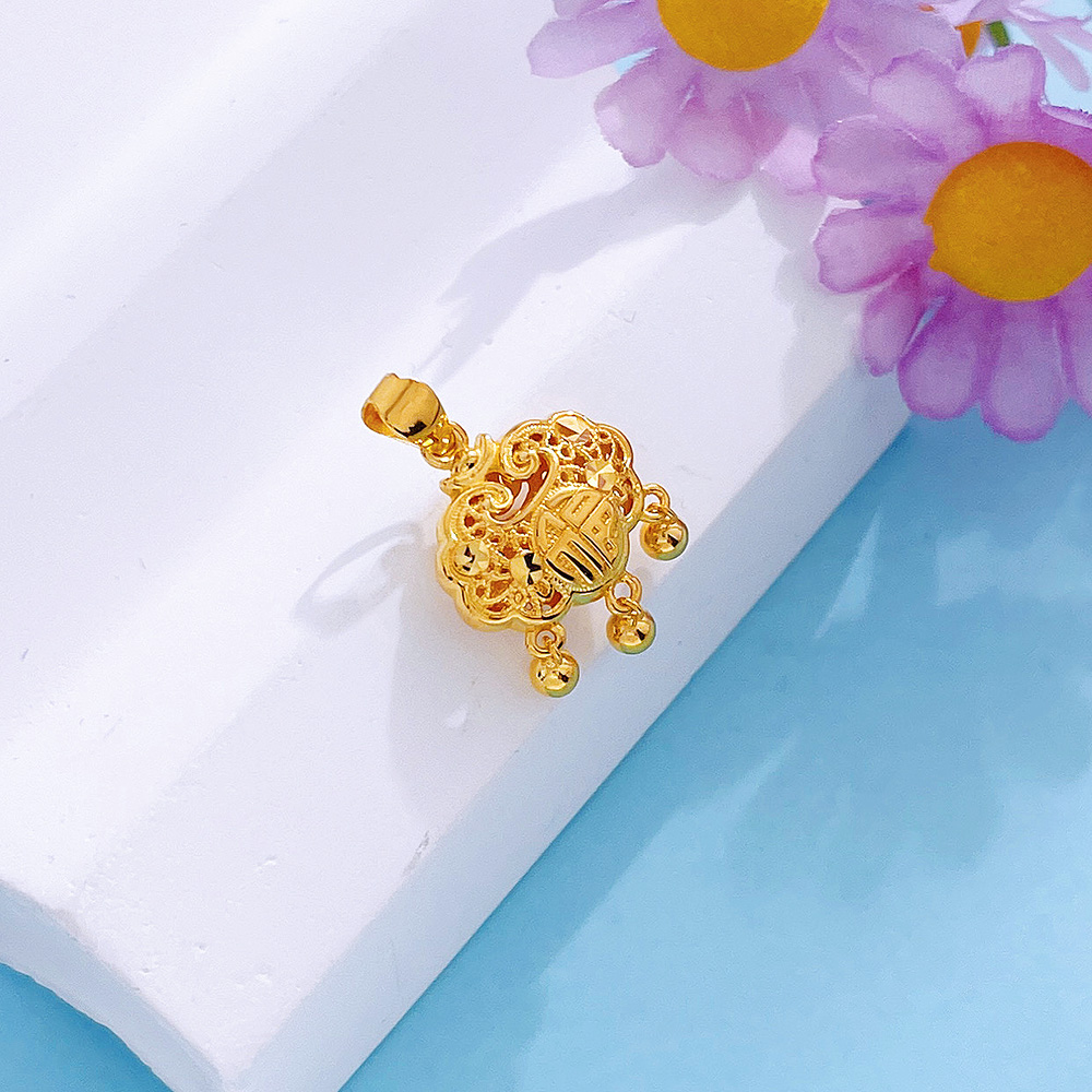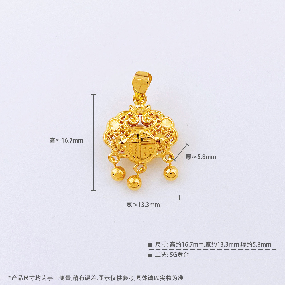 【限时7.5折】【定价黄金】足金999 5G黄金镂空铃铛流苏长命锁福字网红如意锁包吊坠(AG5GDZ00195)(预售产品下单后不退款不退货不换货不补差价)