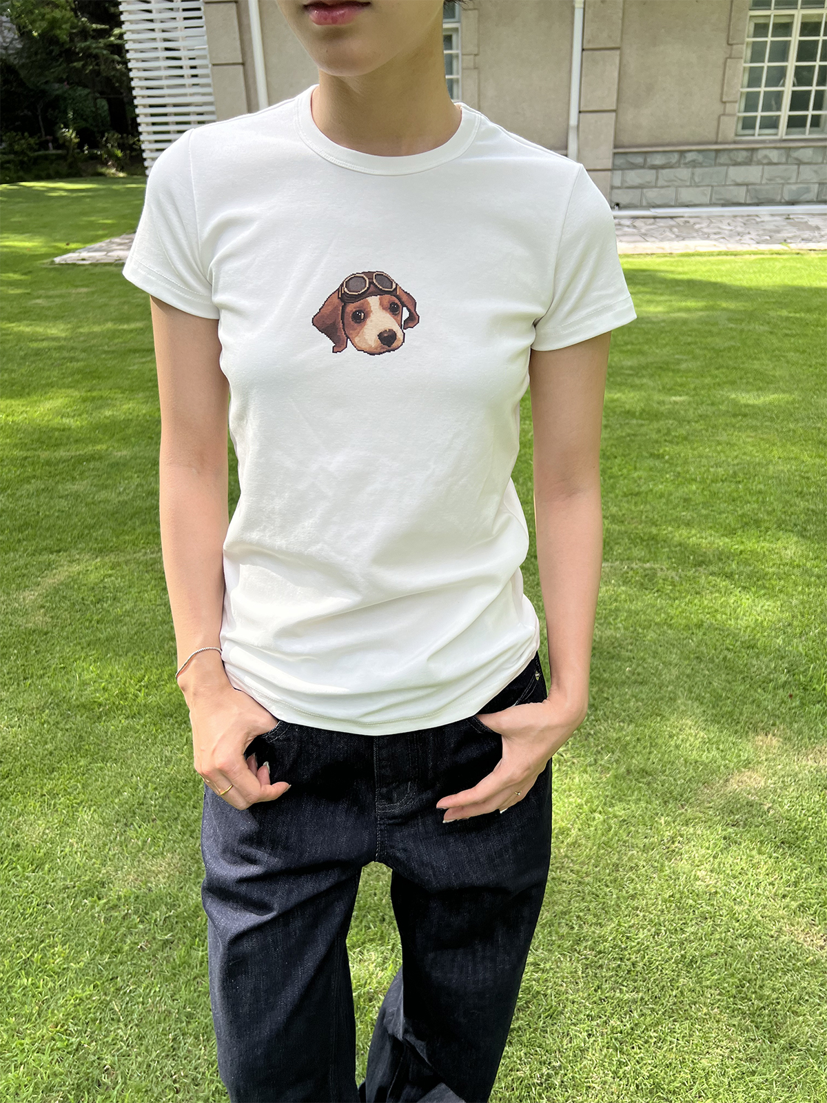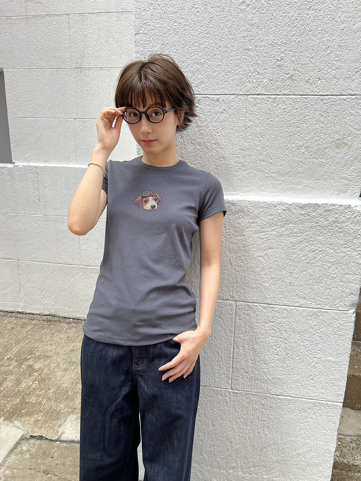shyshystill/shy202504039/“飞行员小狗”棉质亲肤柔软弹力印花短袖