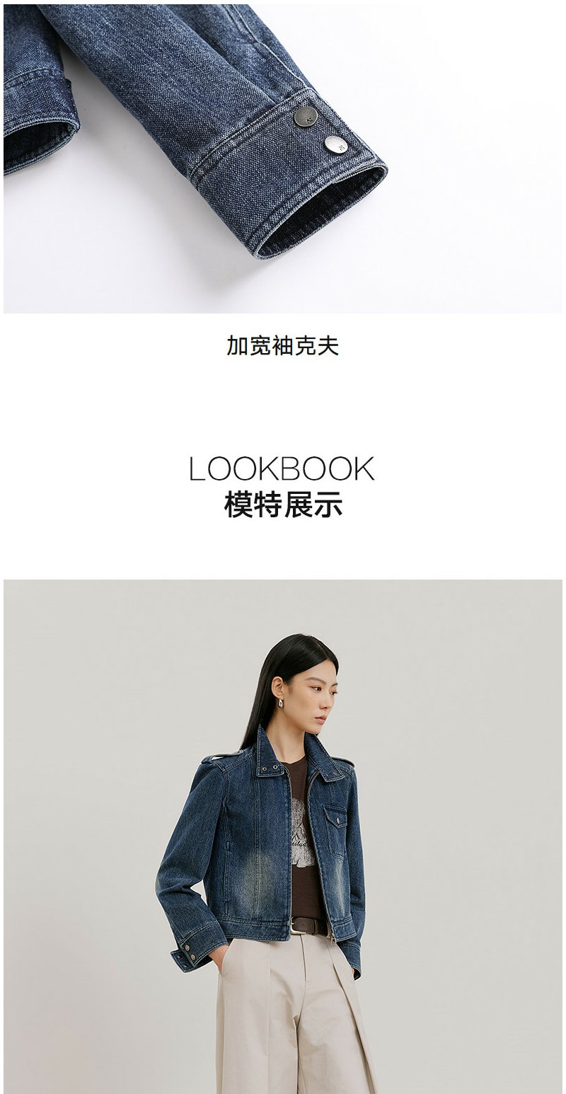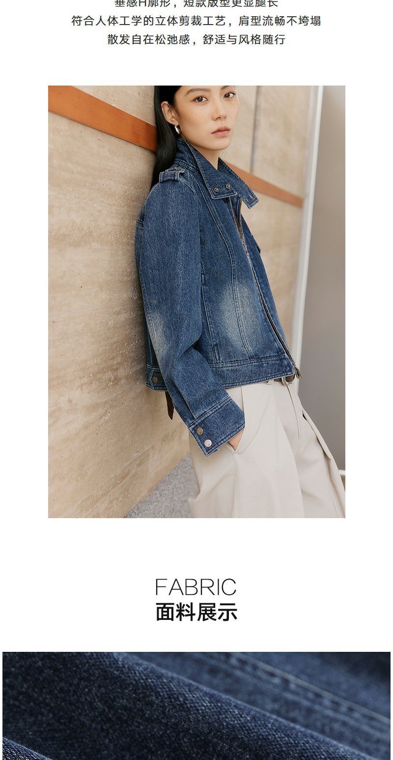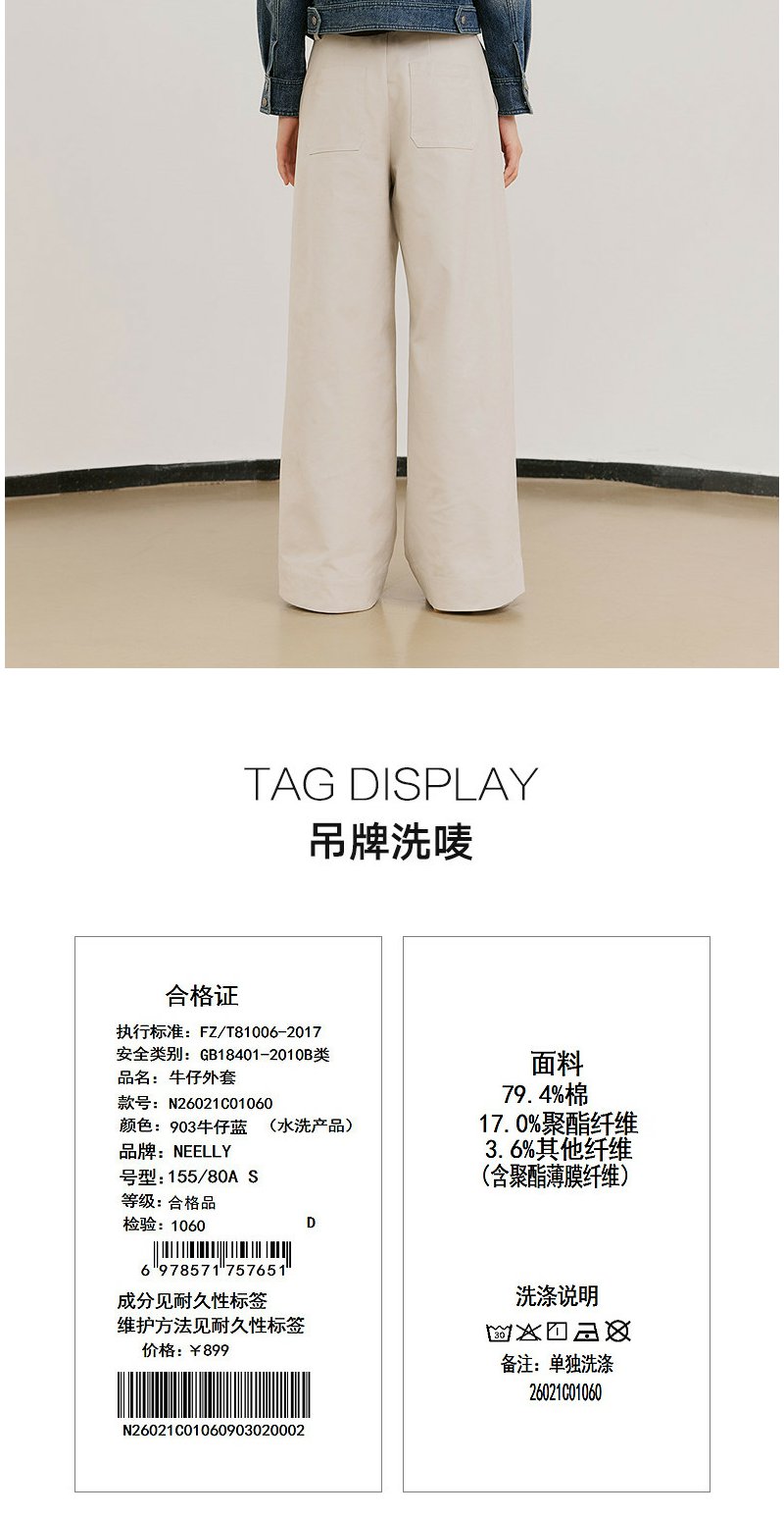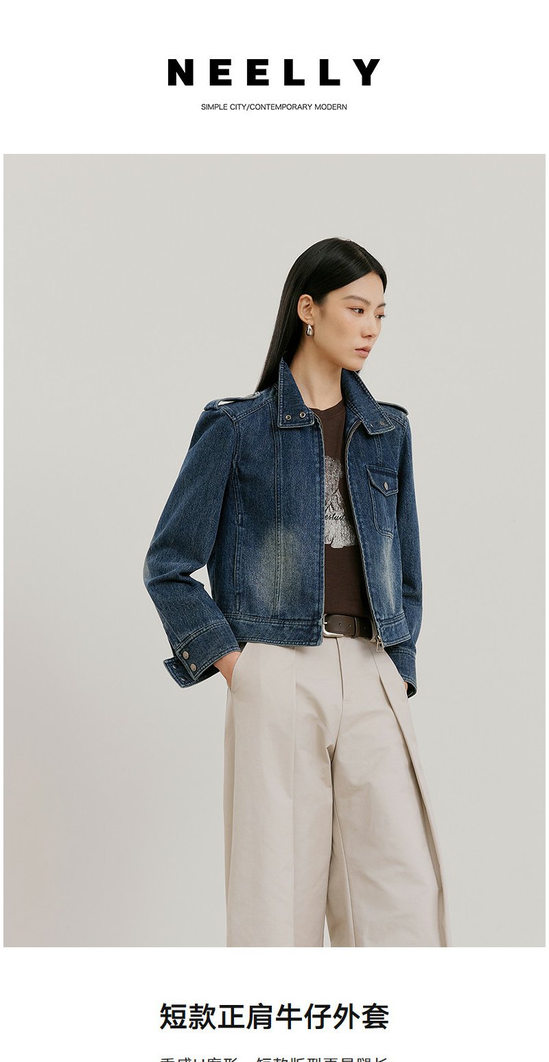 NEELLY纳俪商场同款春新款时尚休闲正肩牛仔外套女直筒利落短上衣N26021C01060