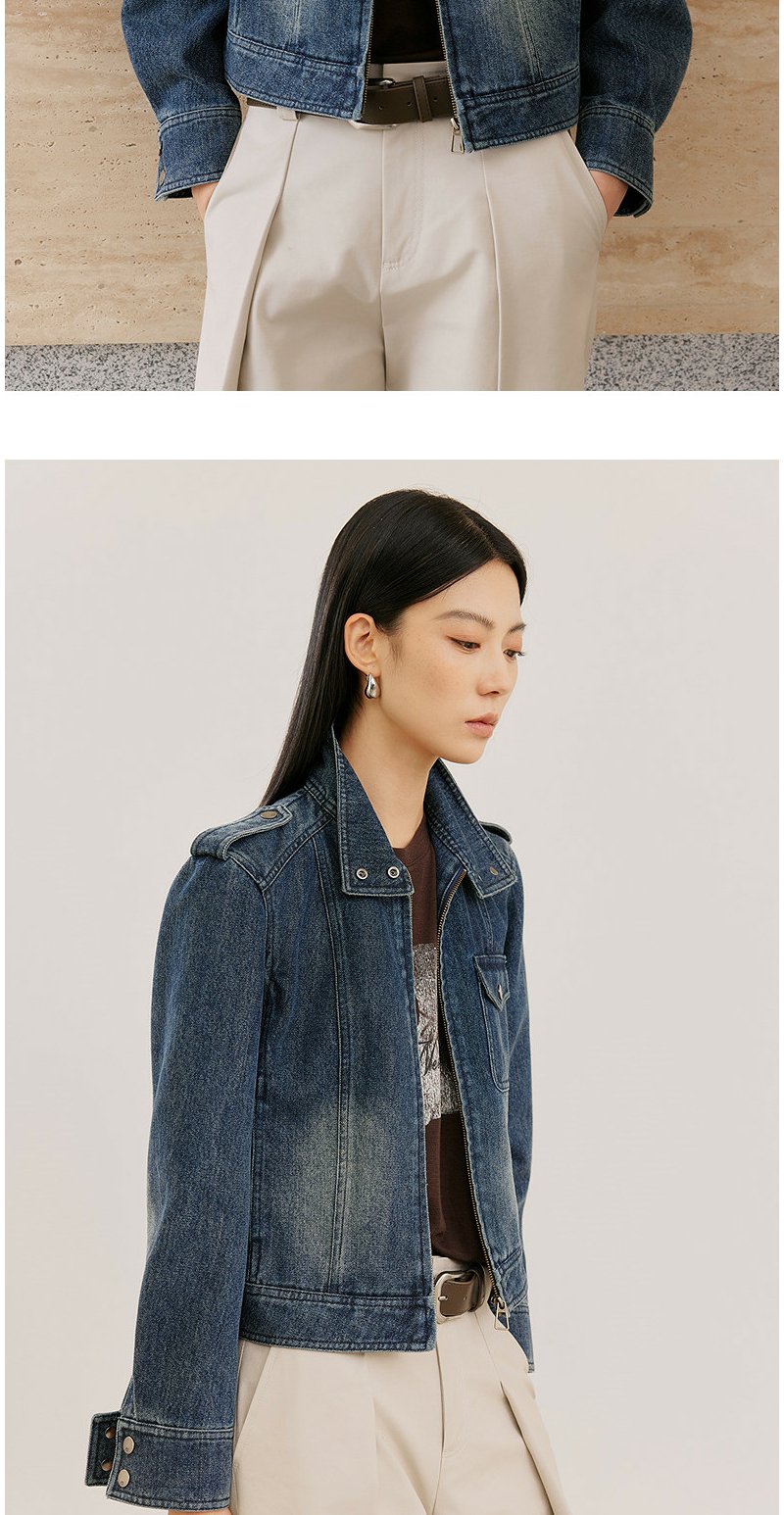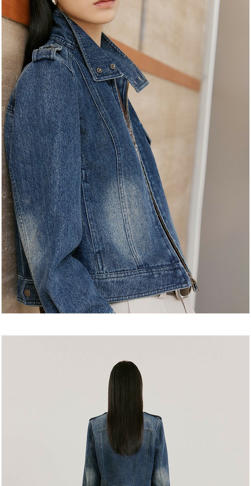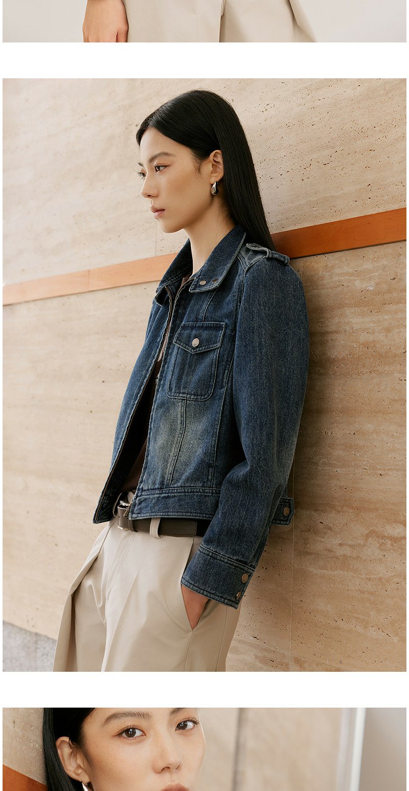 NEELLY纳俪商场同款春新款时尚休闲正肩牛仔外套女直筒利落短上衣N26021C01060