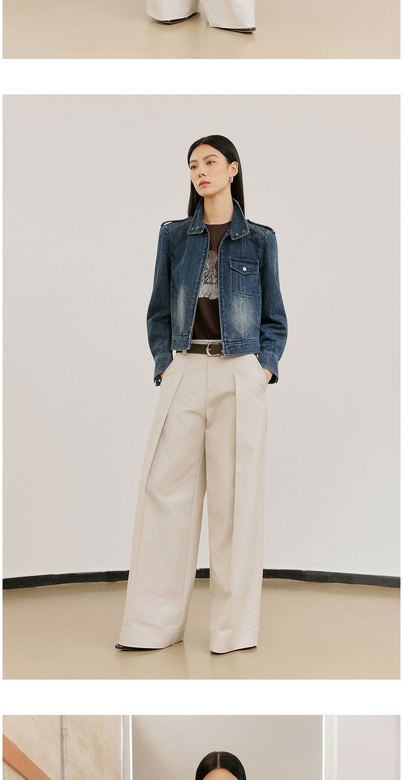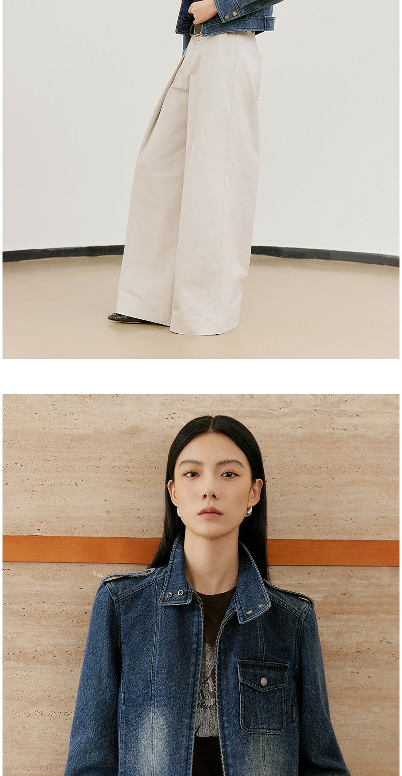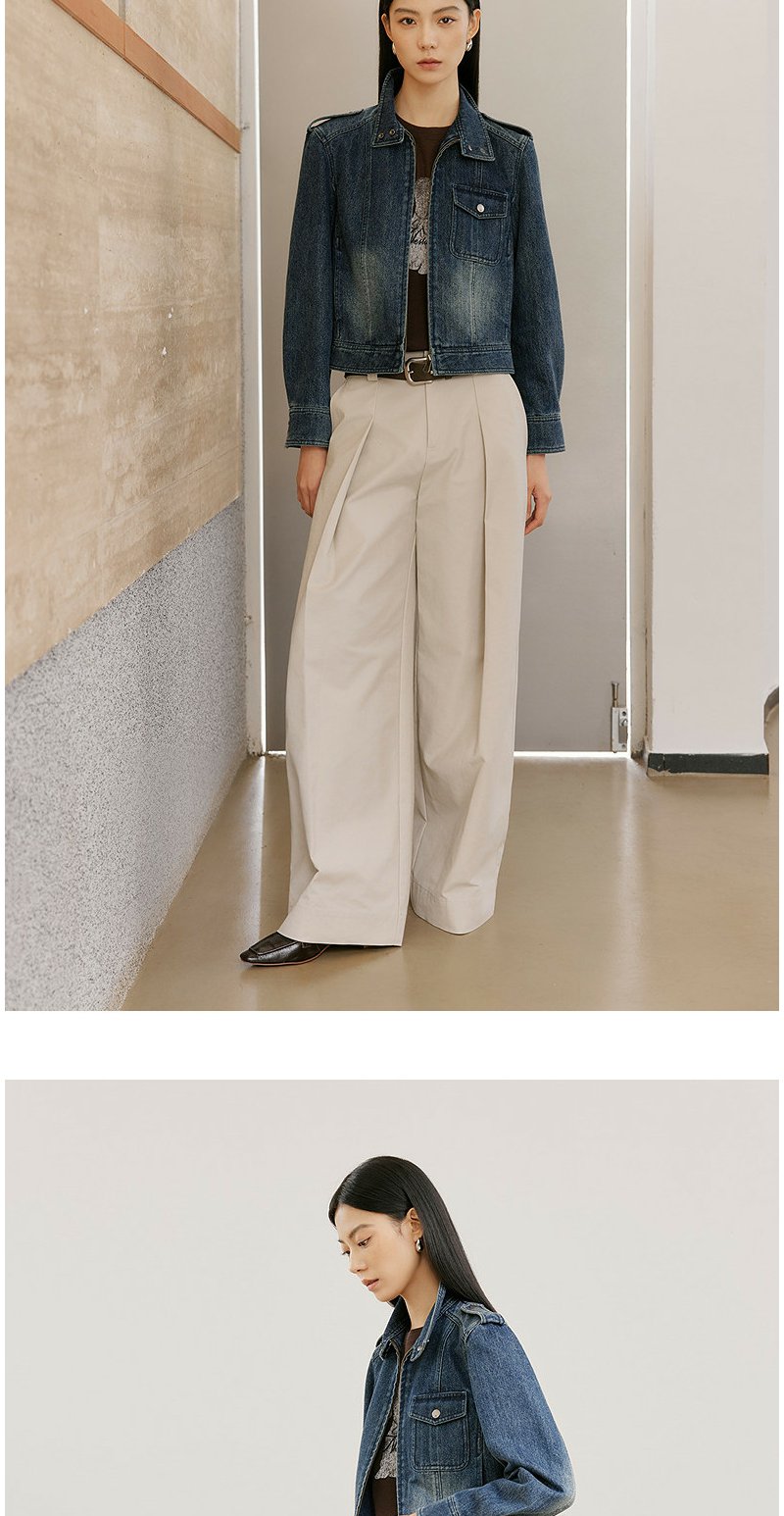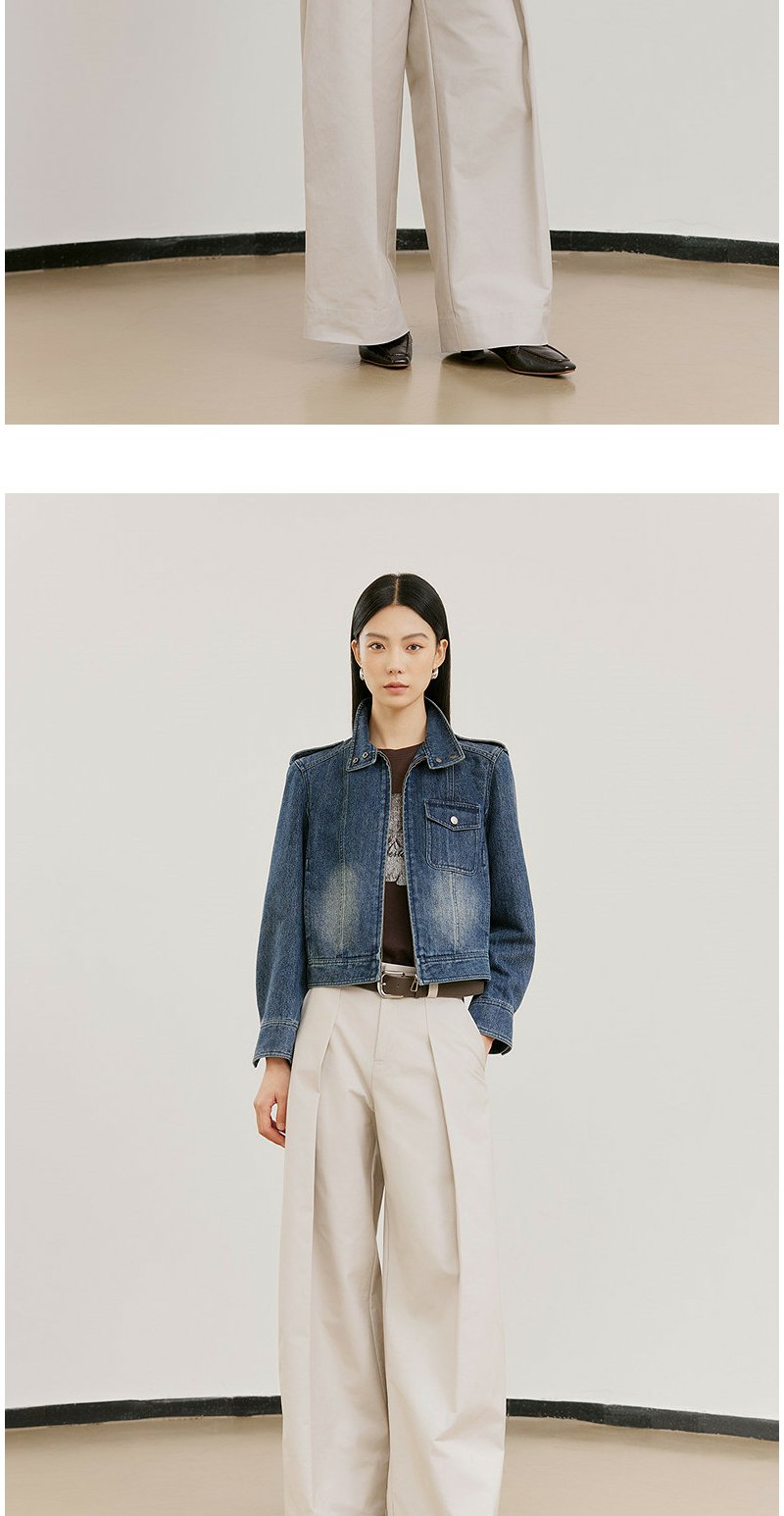 NEELLY纳俪商场同款春新款时尚休闲正肩牛仔外套女直筒利落短上衣N26021C01060