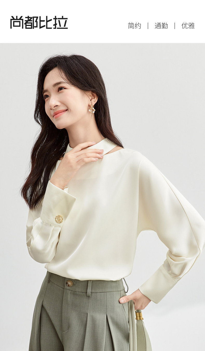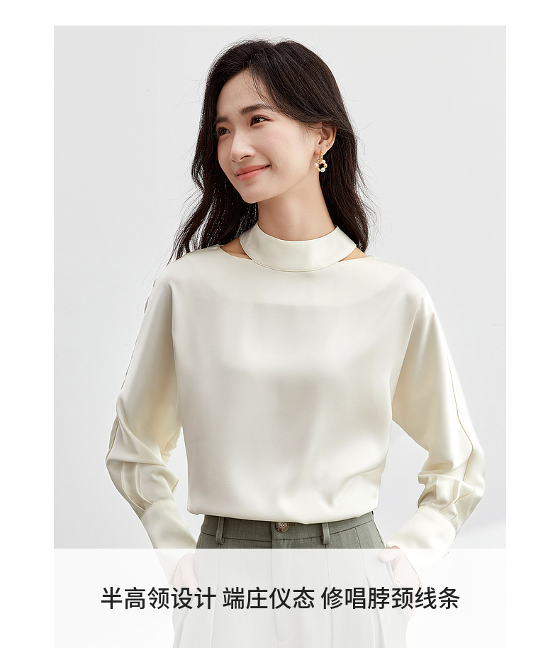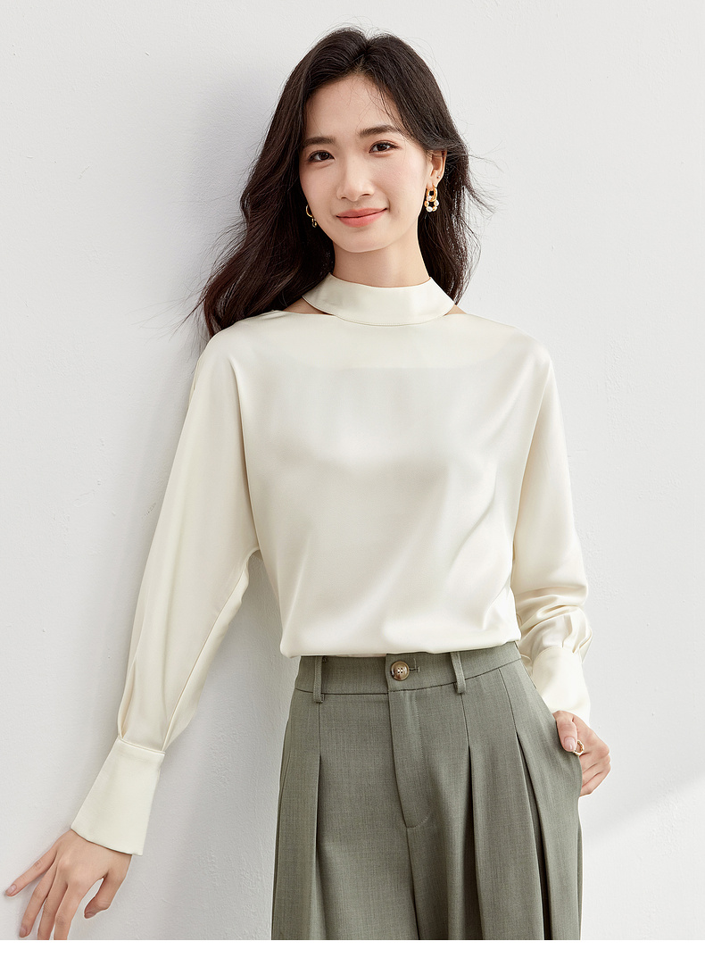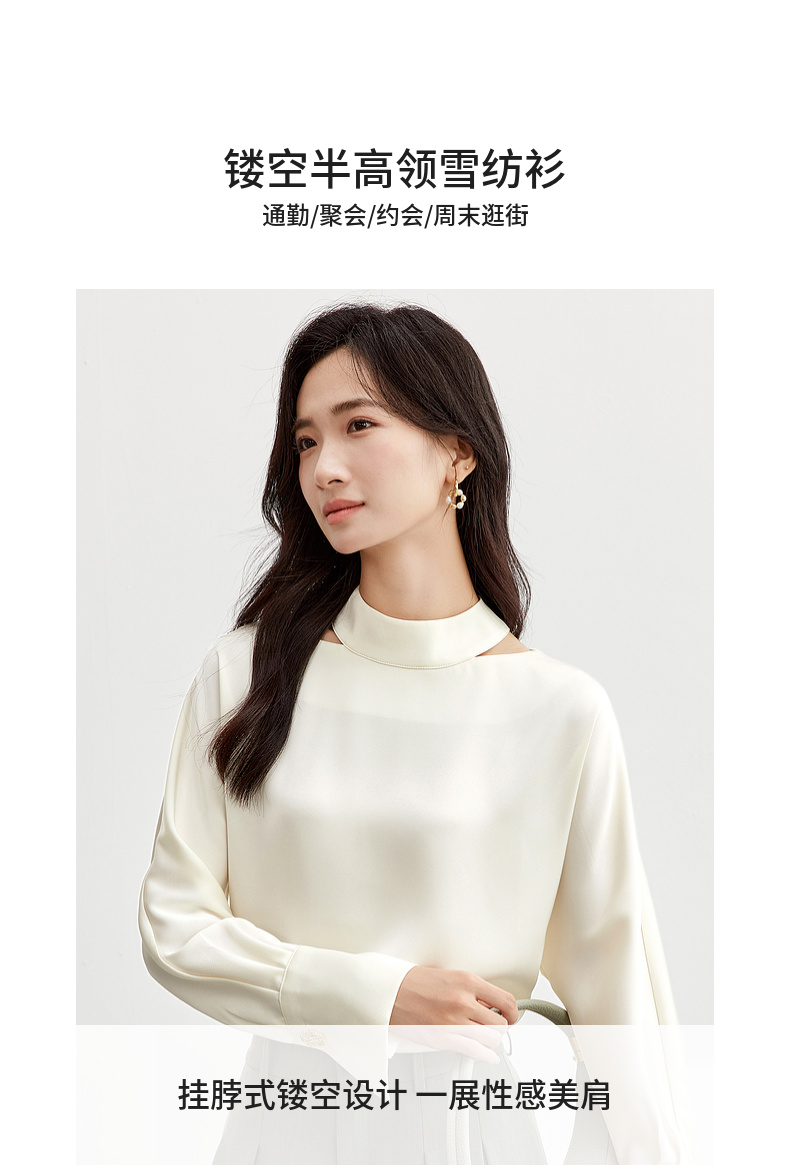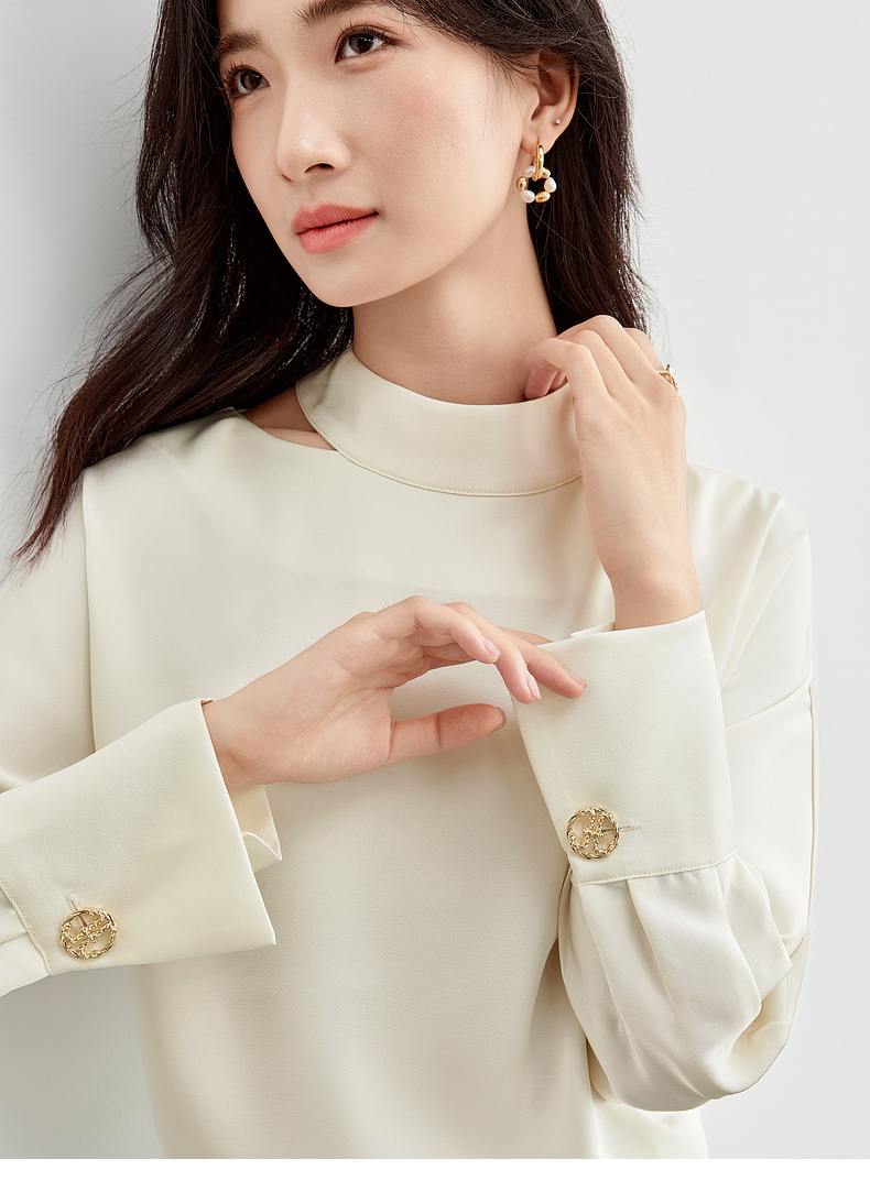 【内购】【时尚镂空领雪纺衫】气质通勤镂空设计袖口金属扣半高领雪纺衫-151V80083X