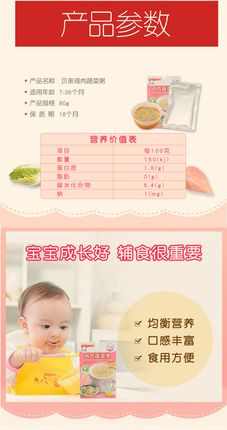 Pigeon贝亲宝宝鸡肉即食粥80g(7-36个月)[FPLFD02]