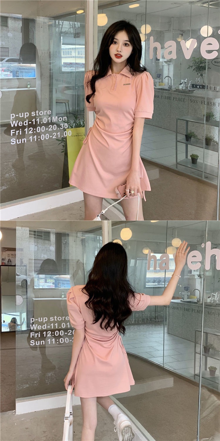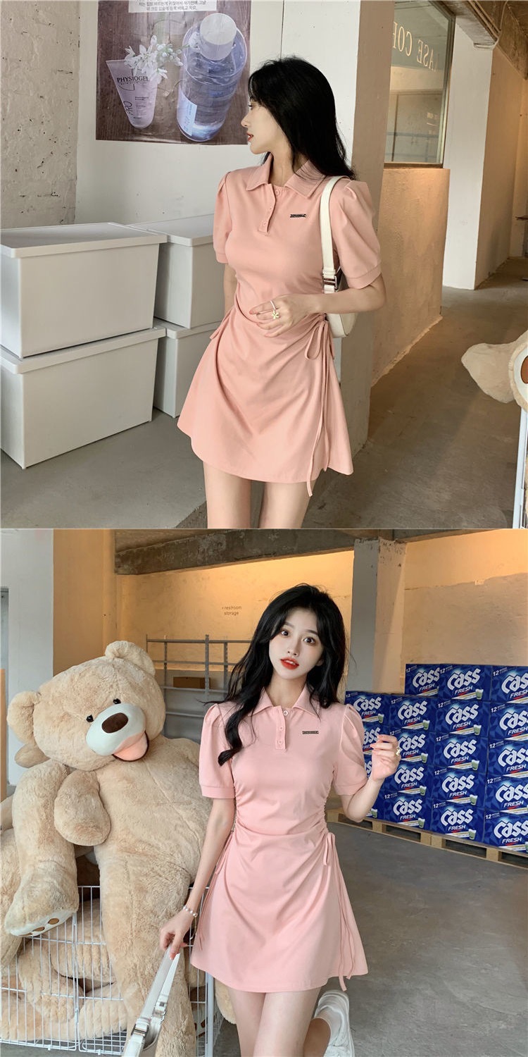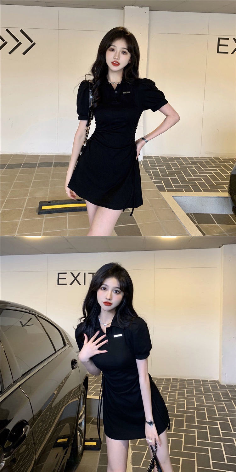 (清仓现货)【社群供G】甜辣PLOL领抽绳收腰显瘦涤纶T恤连衣裙