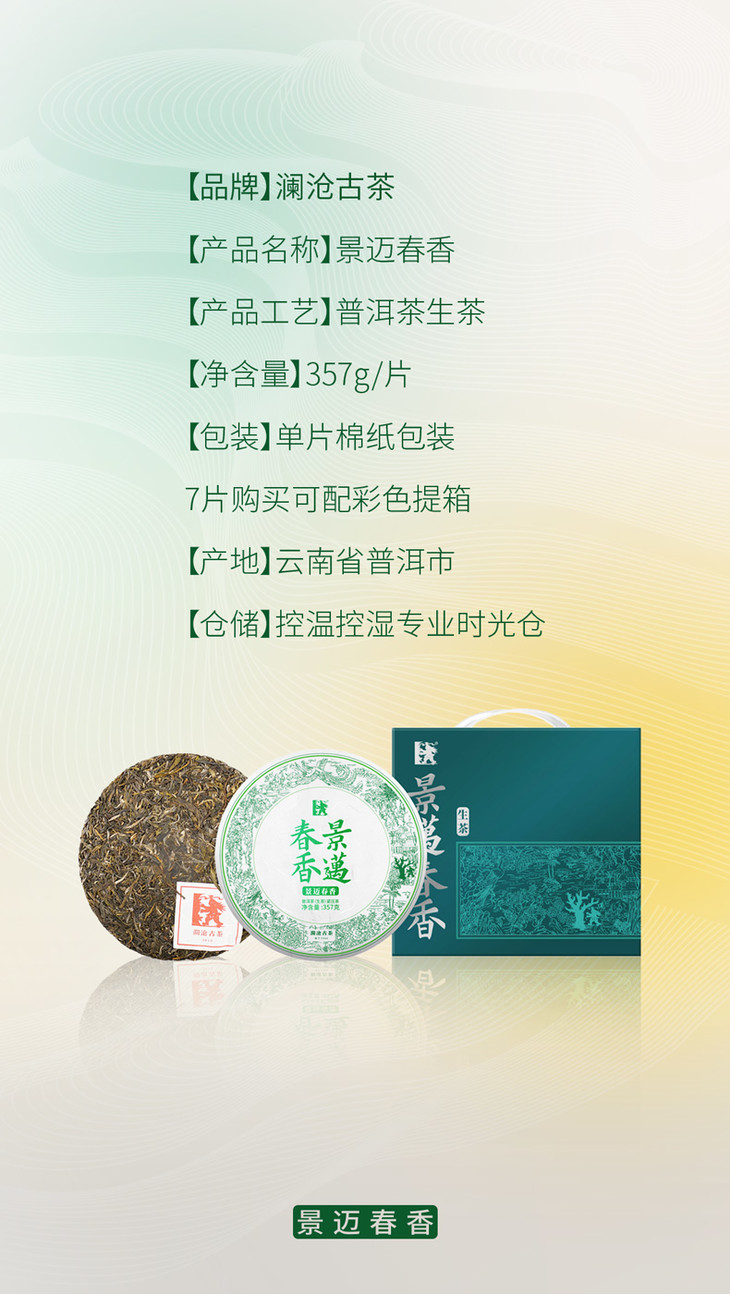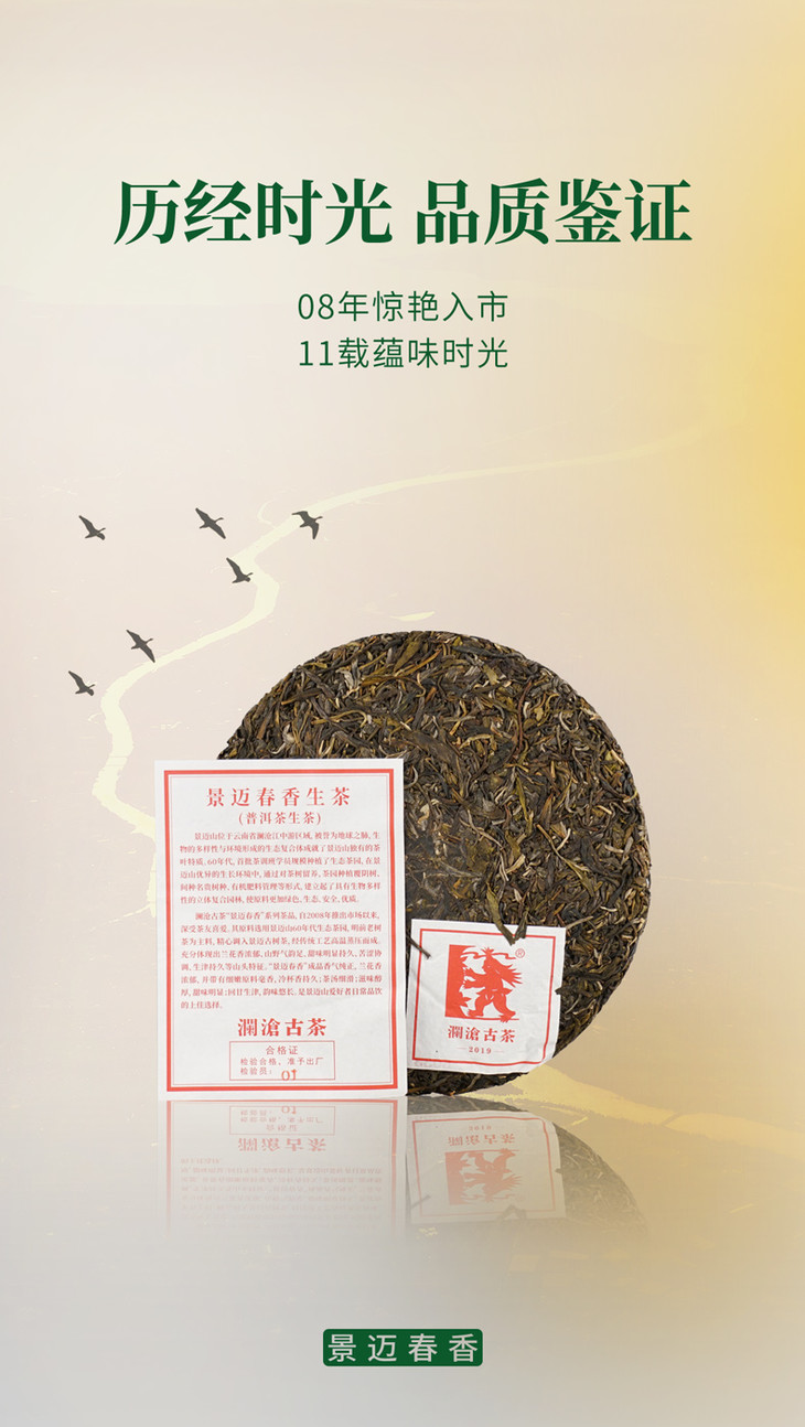澜沧古茶2019年景迈春香普洱生茶357g