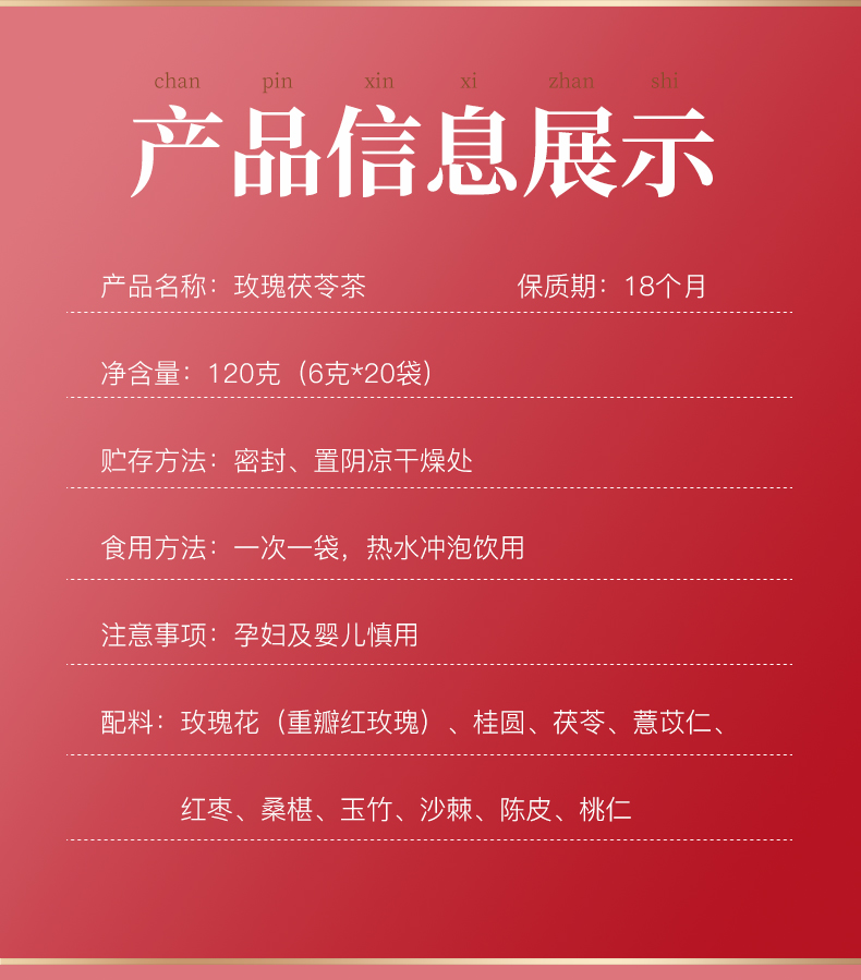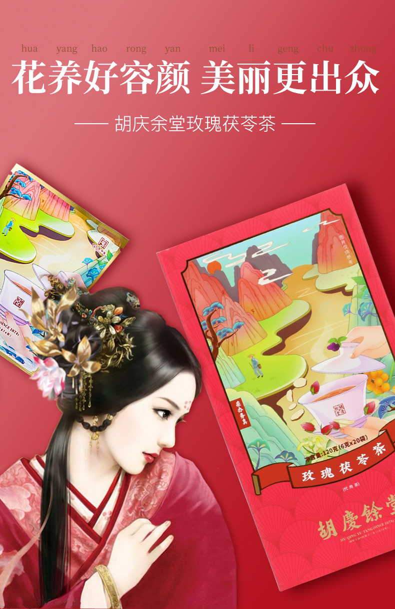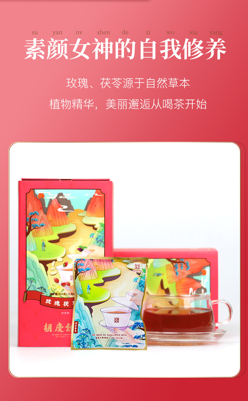 【买2送1】胡庆余堂 玫瑰茯苓茶 6克×20袋/盒 袋泡茶