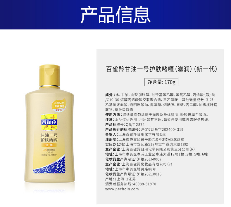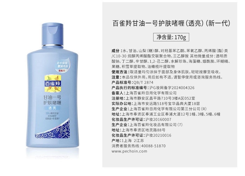 百雀羚经典甘油一号妆前护肤啫喱清爽维c保湿清新透亮170G