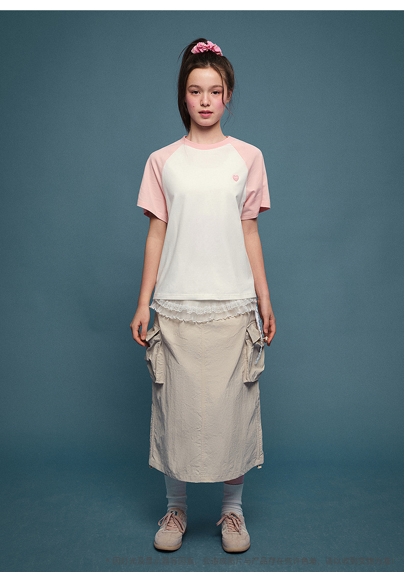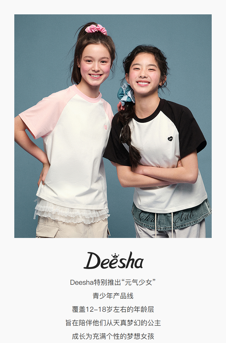 笛莎Deesha 2026年春季新款青少年大童初高中撞色插肩休闲长袖上衣T恤