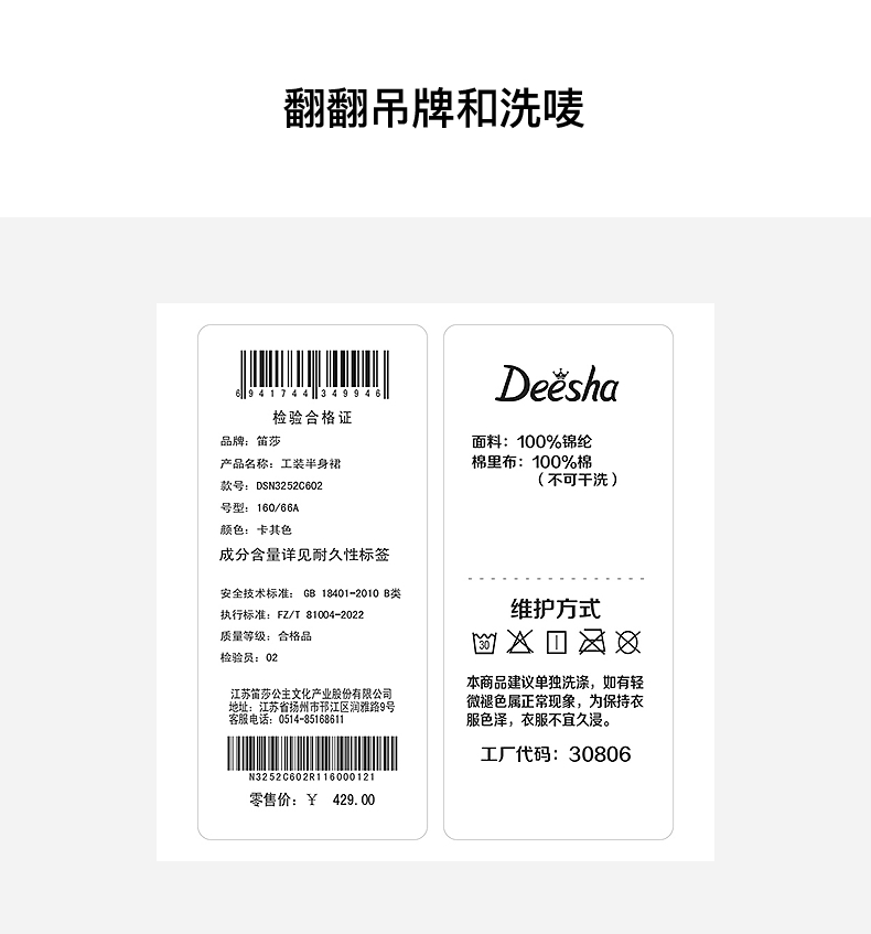 笛莎Deesha青少年女童裙子2025夏季女童工装半身裙