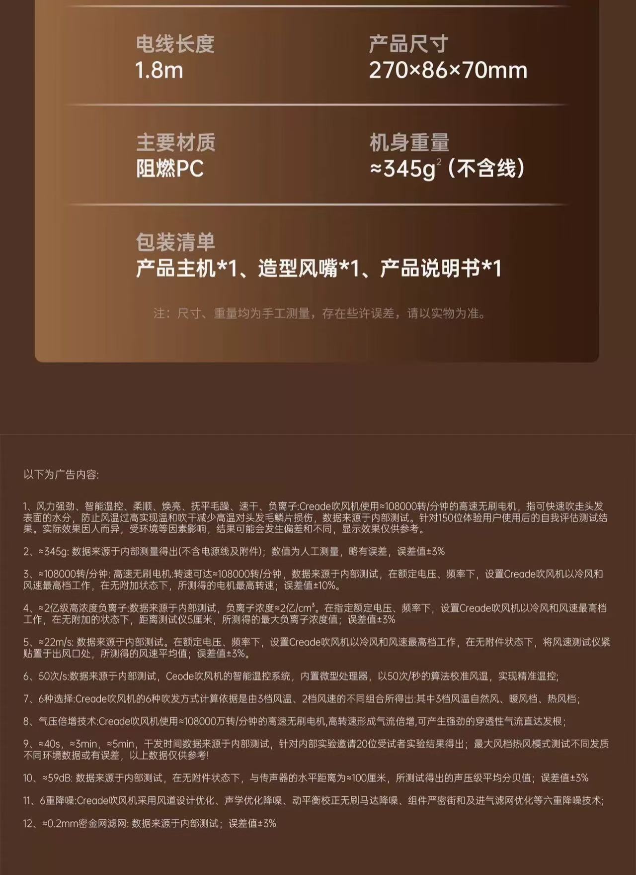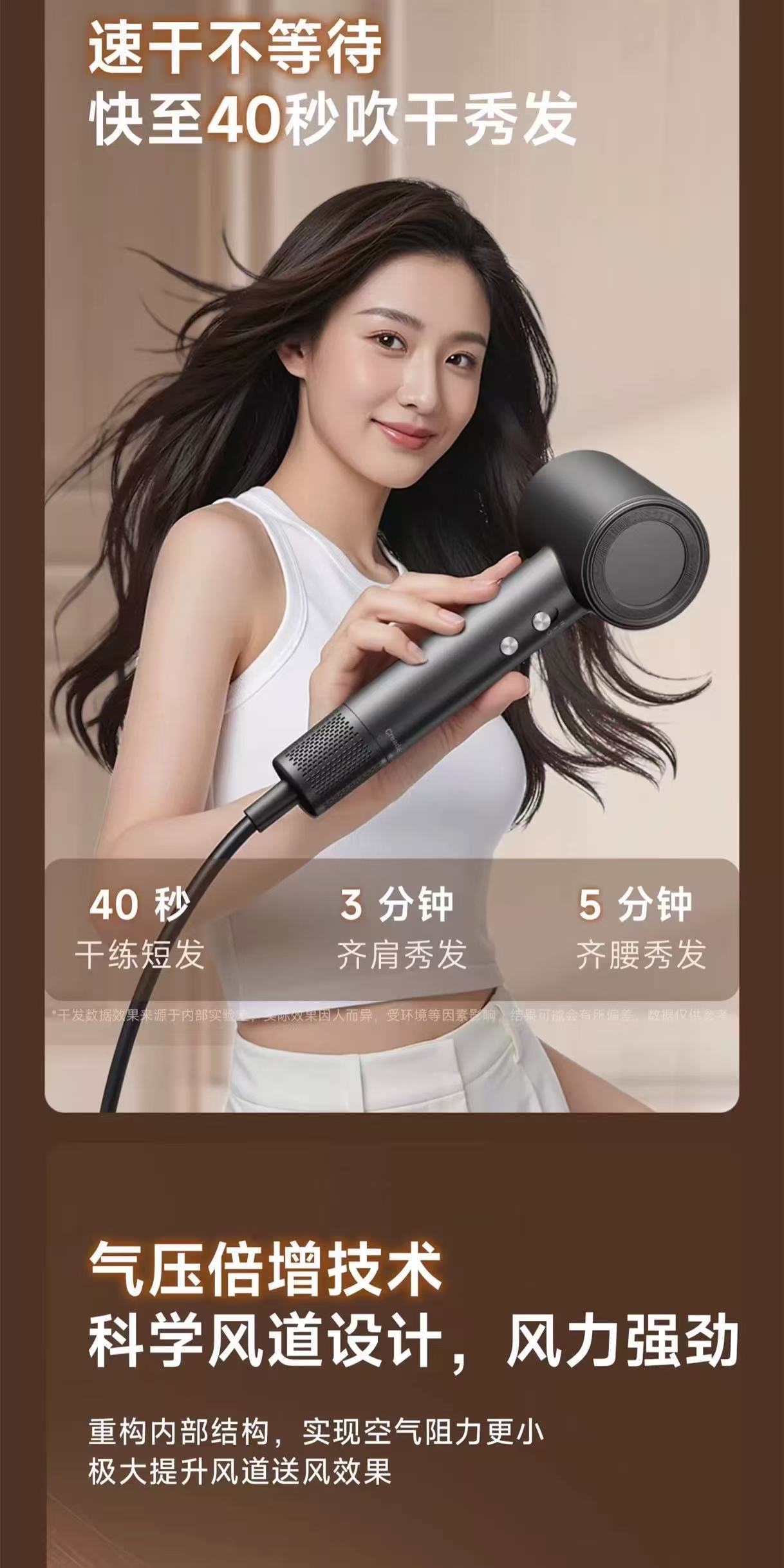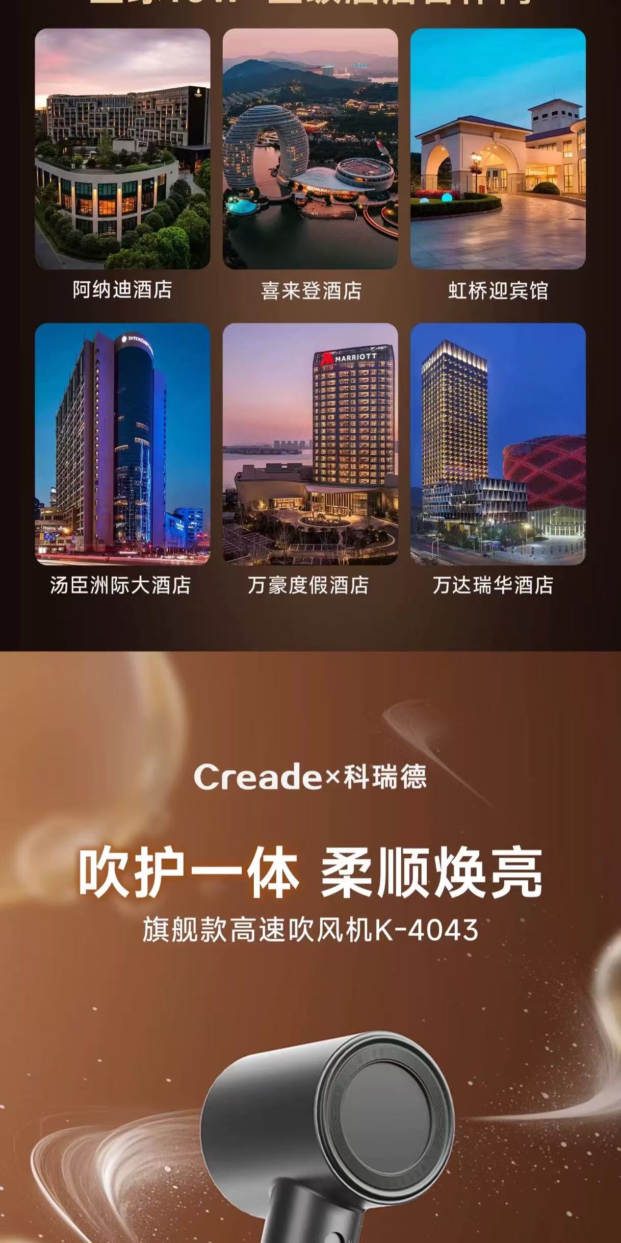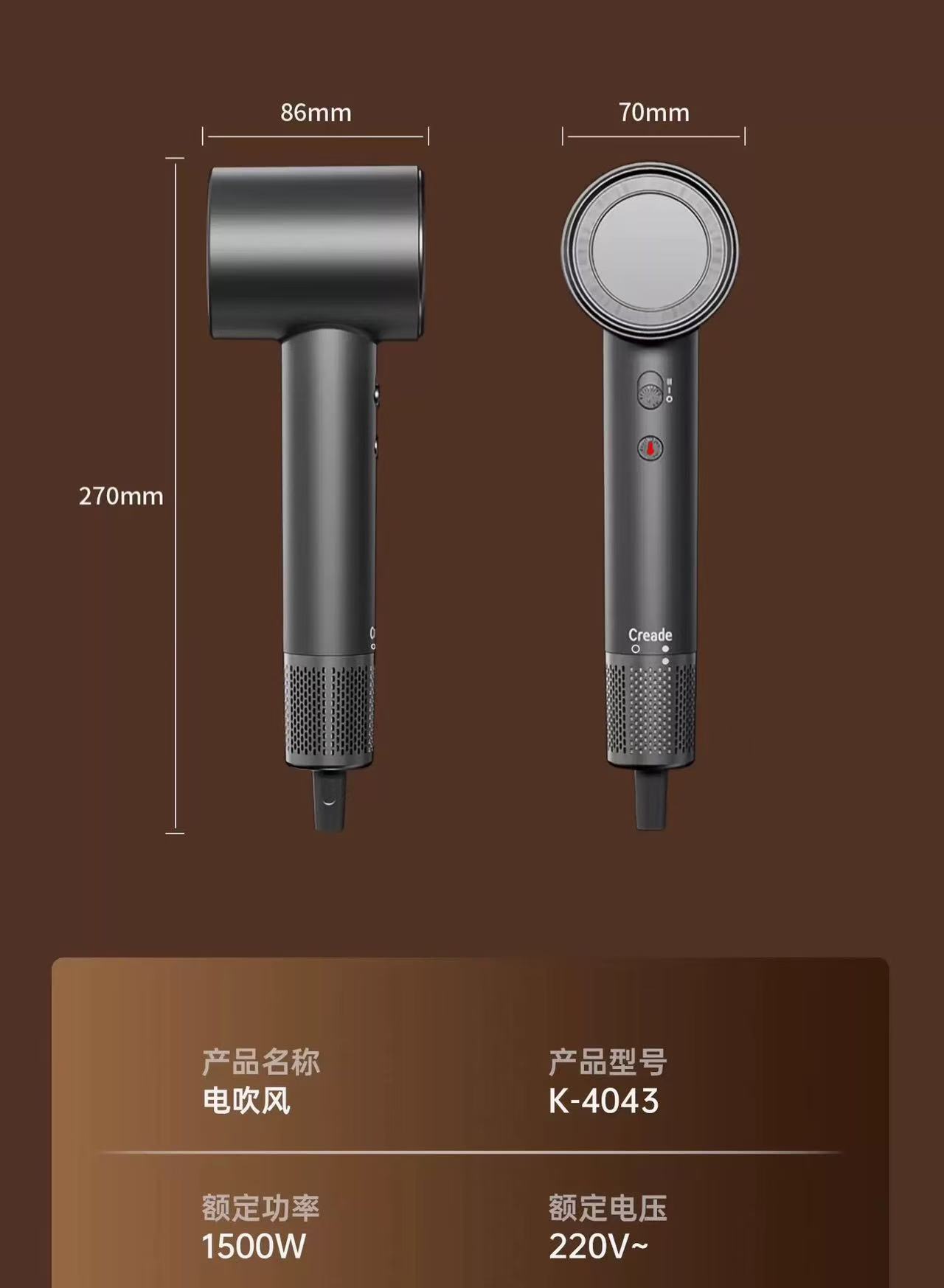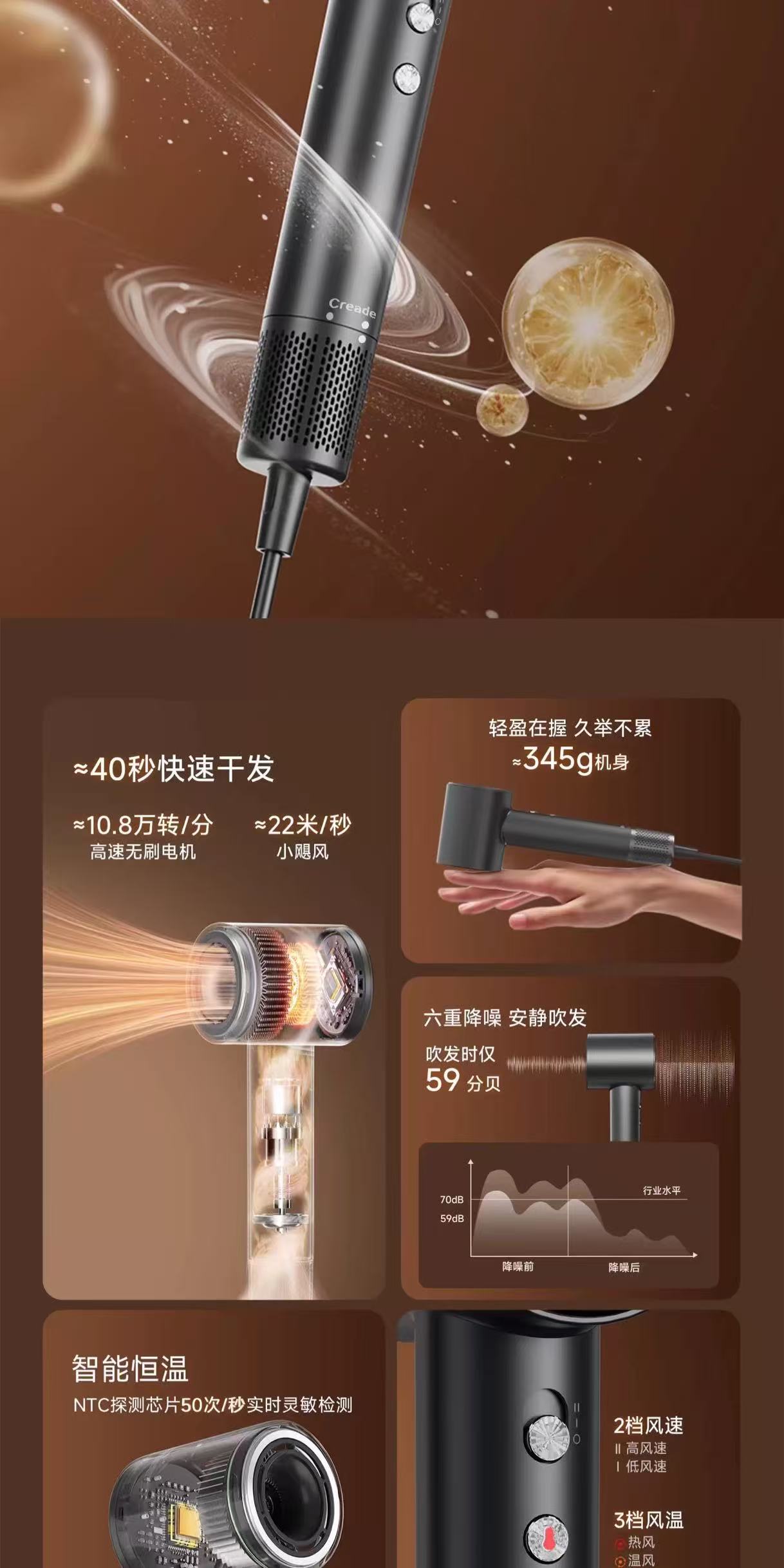 Creade科瑞德高速电吹风机星级酒店同款负离子家用便携大风力风筒
