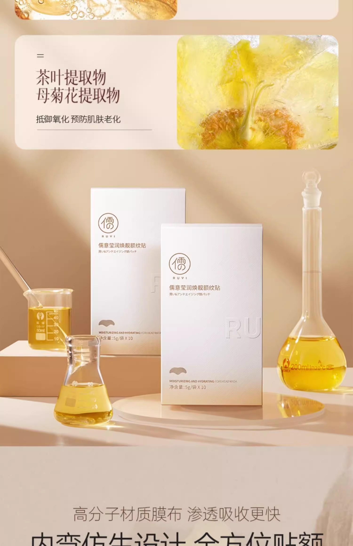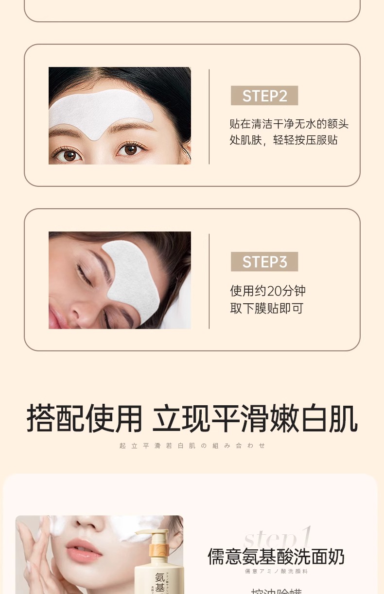 儒意额纹贴 抬头纹抗皱额头 眉间川字纹贴 法令纹淡纹神器提拉紧致皱纹 10片/盒
