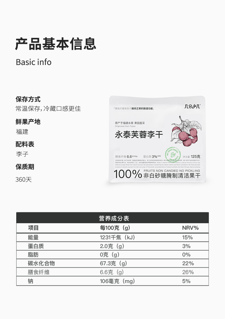 几分之几 永泰芙蓉李干 125g*2