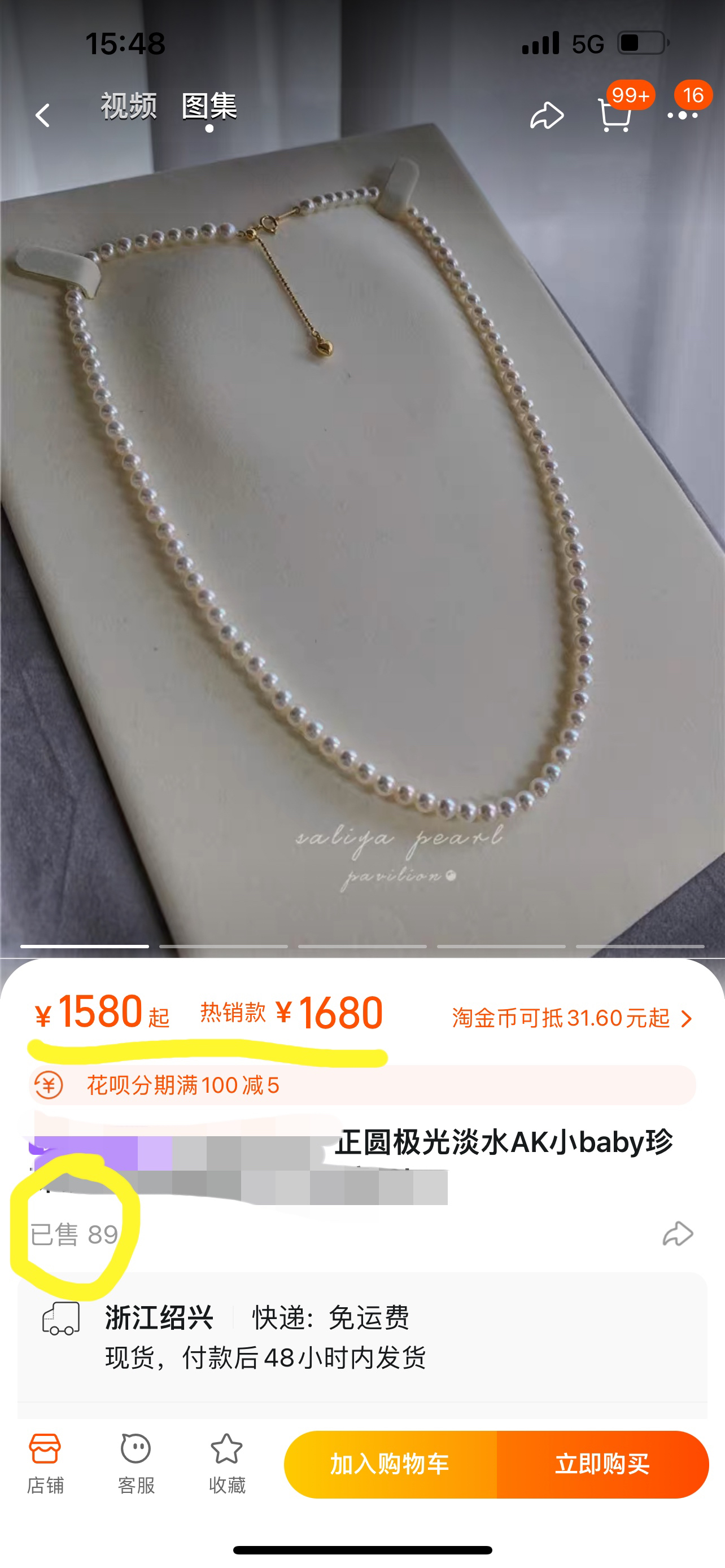 别家卖1680,都是几百条的销量,你们随意对比,不是那种轻飘飘的尾坠子,珍珠自己选,坠子也是自己选的。主打一个精美扎实。