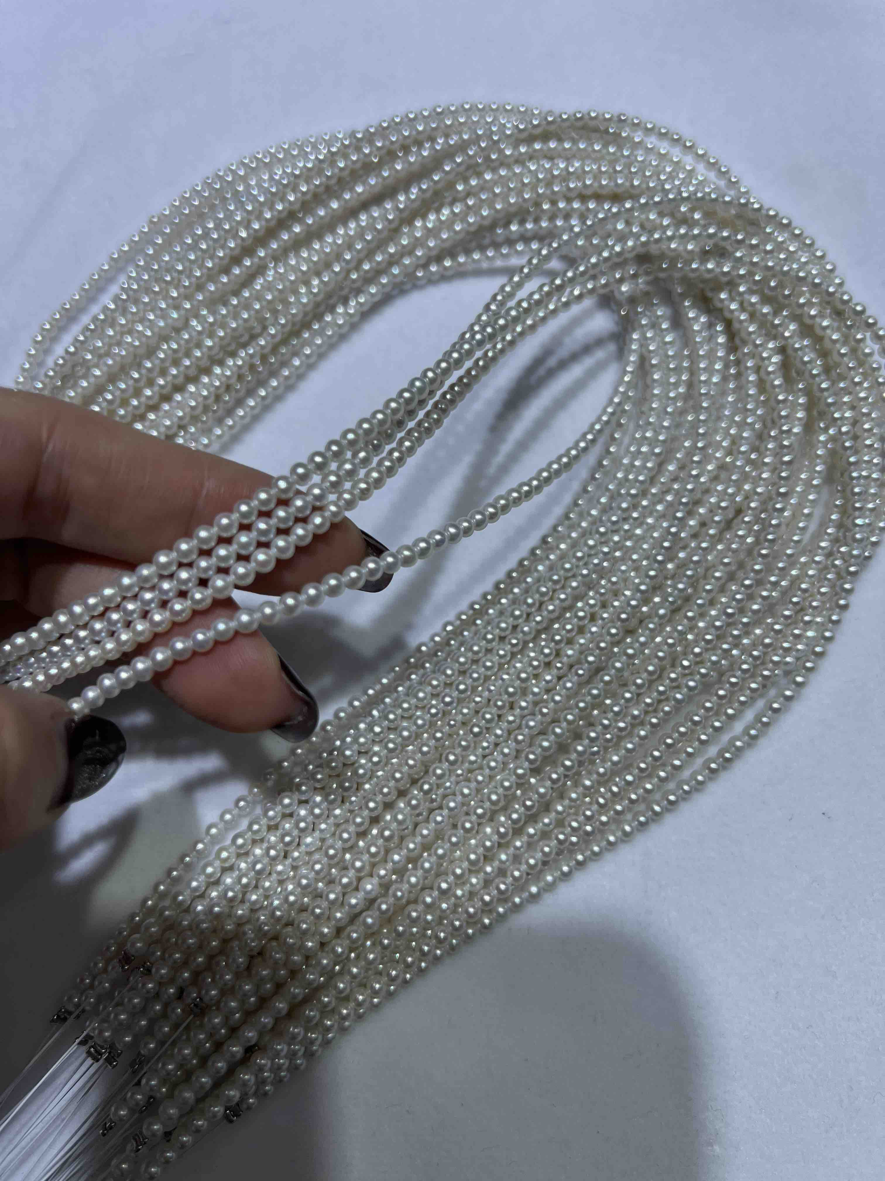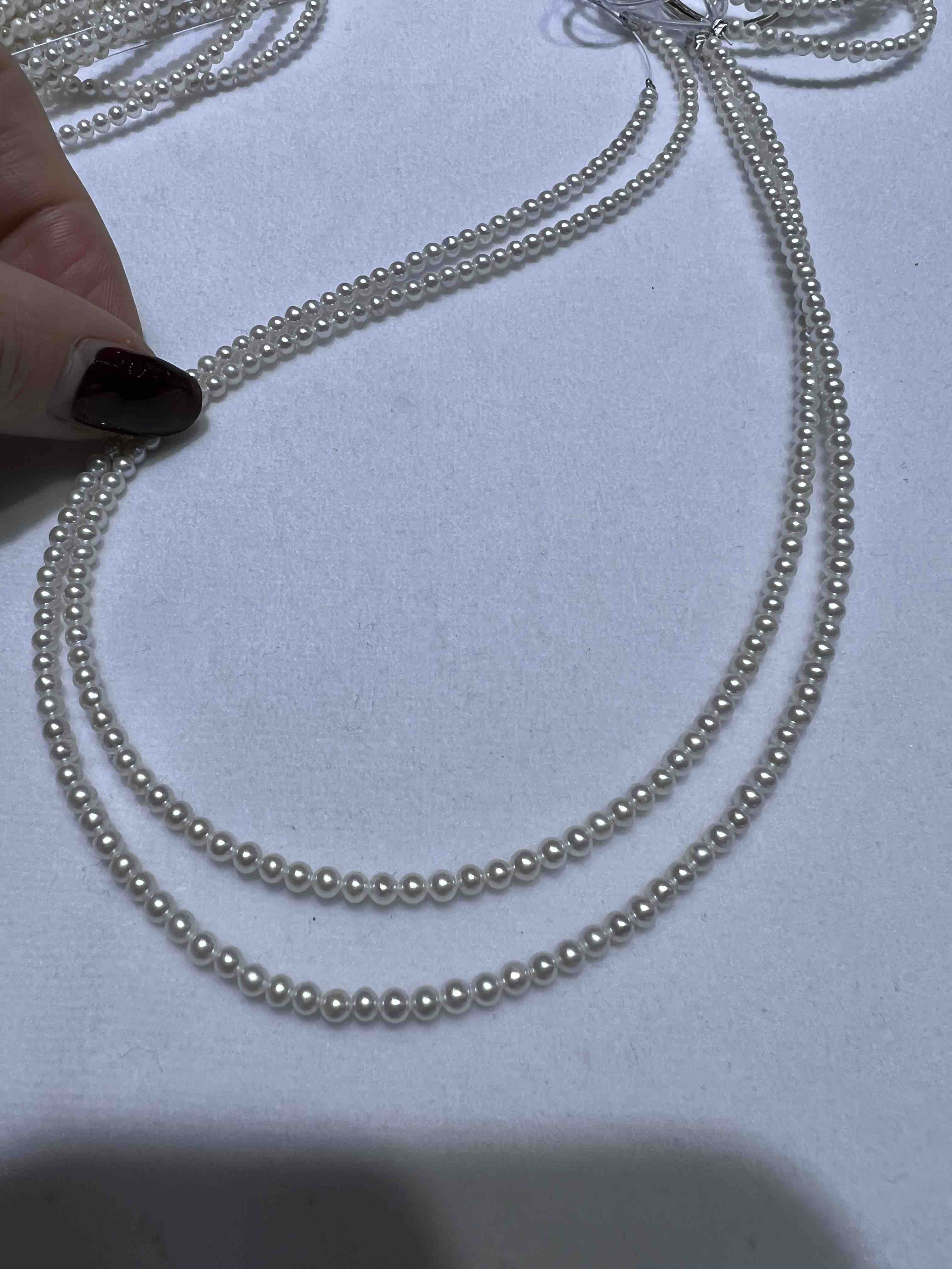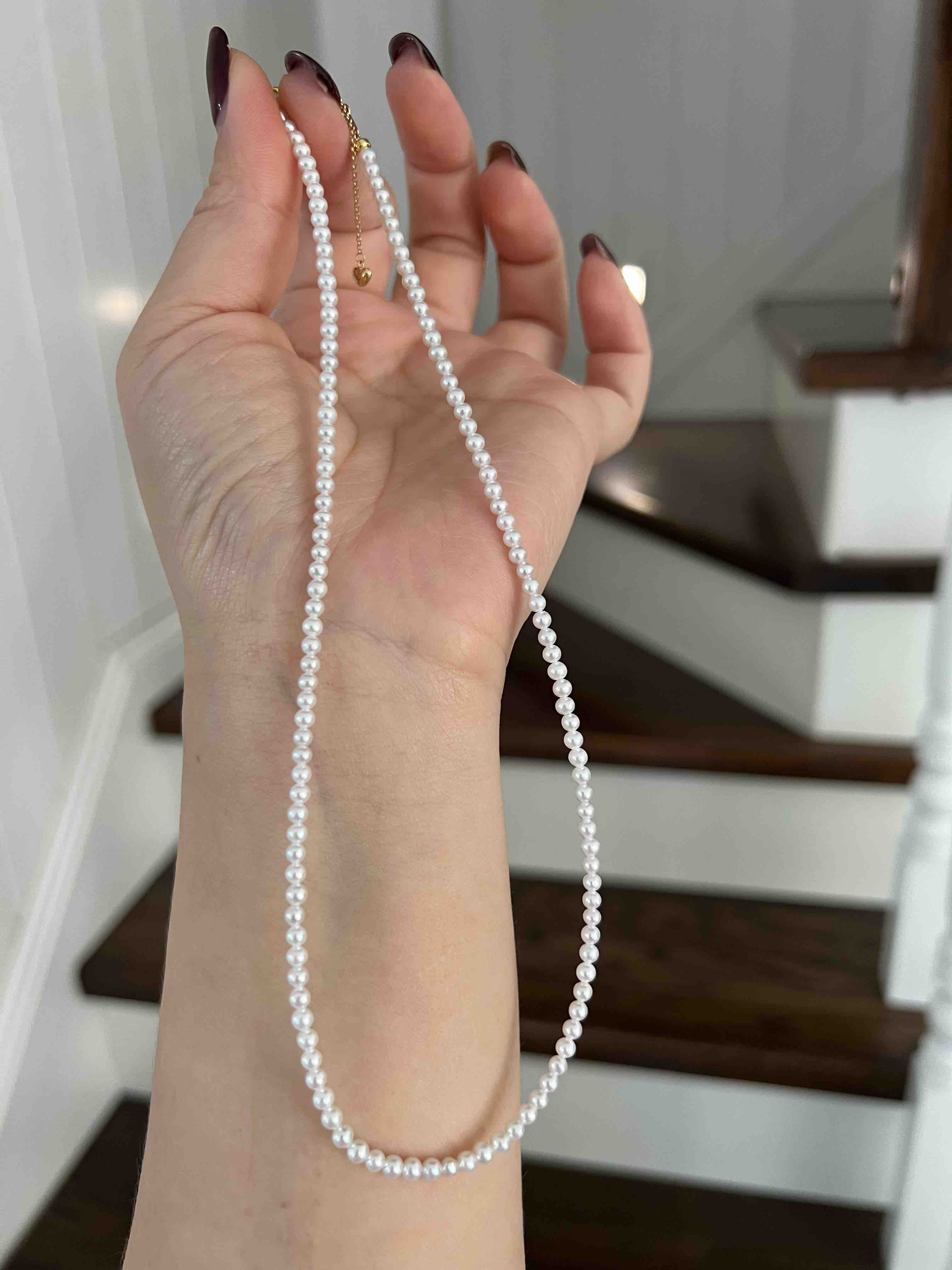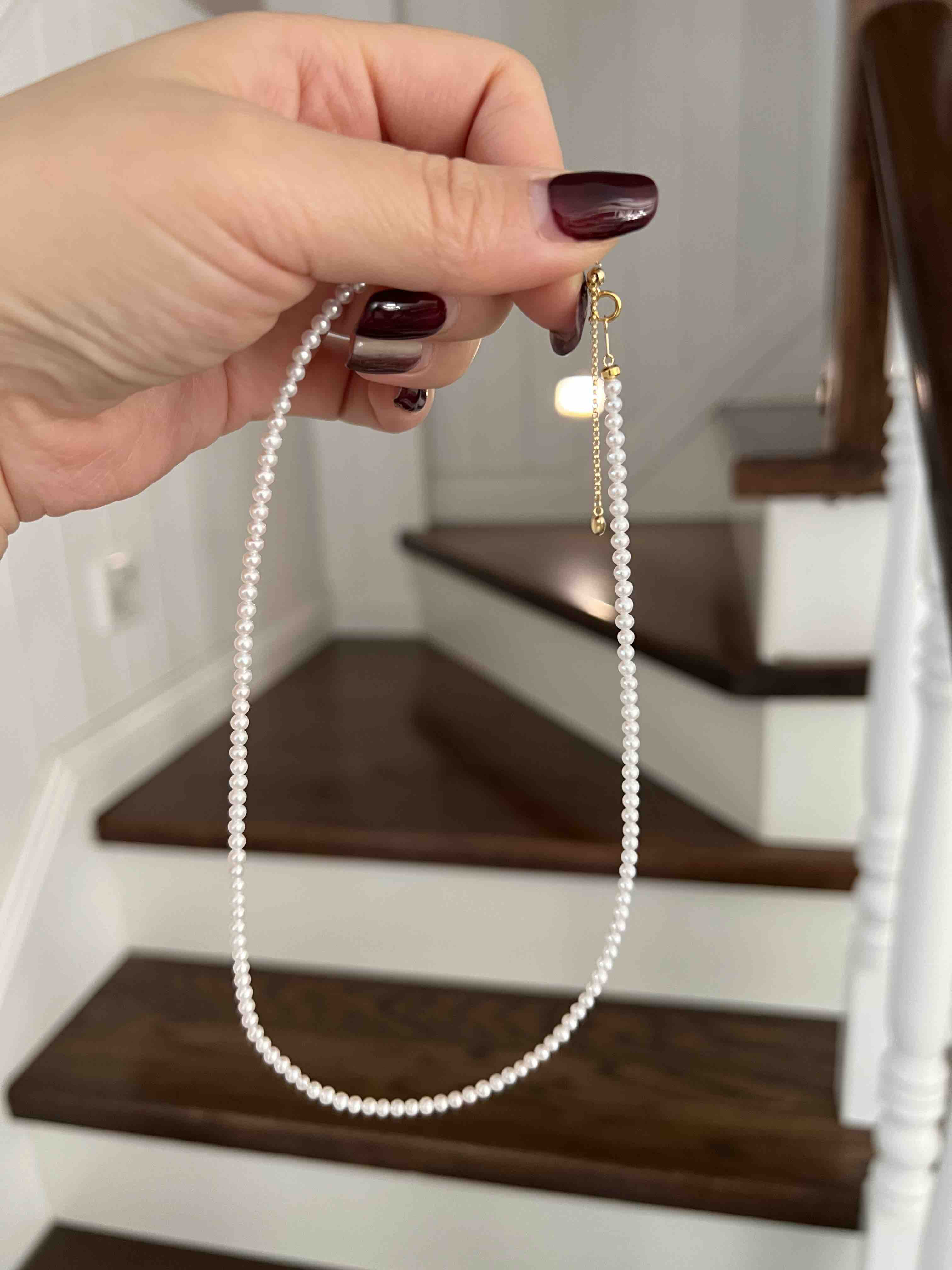 尺寸3-3.5mm,正圆极光AK小baby珠子,可以媲美akoya彩凛珠子,配件全部都是18K,尾坠用的是爱心调接扣,厚实扣环大,打起来方便。
