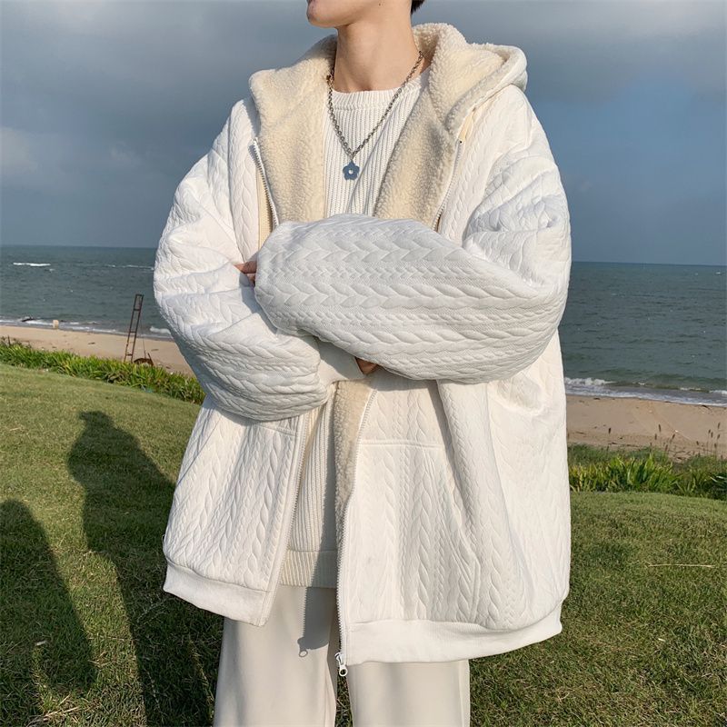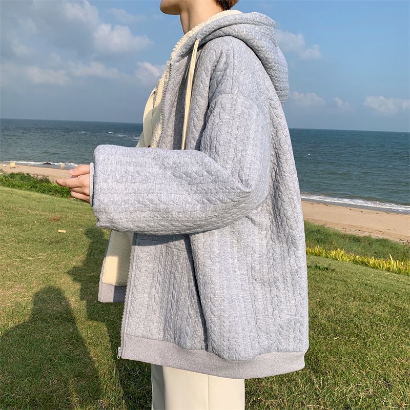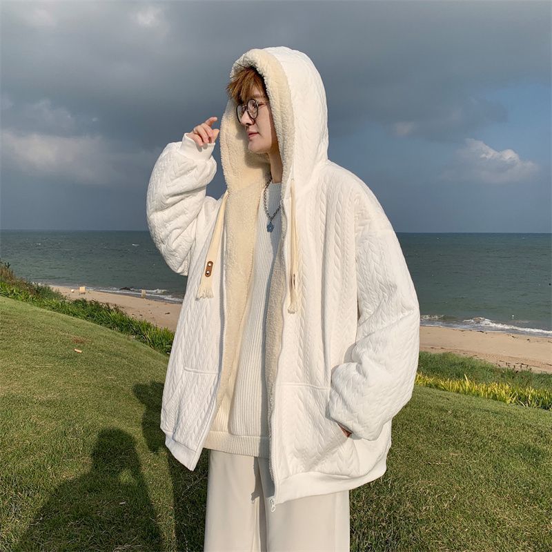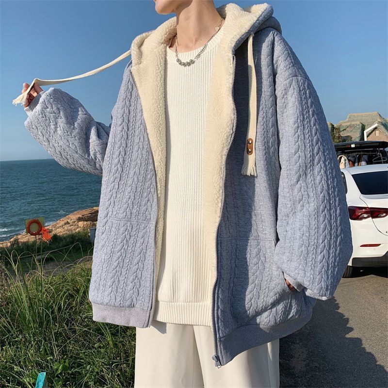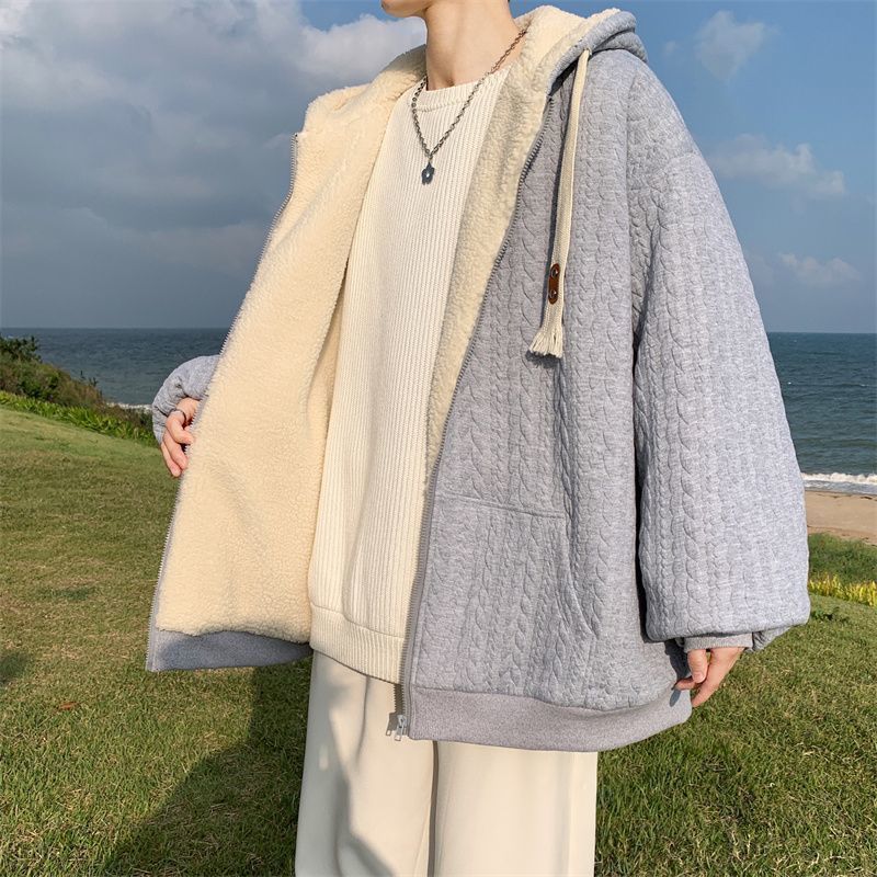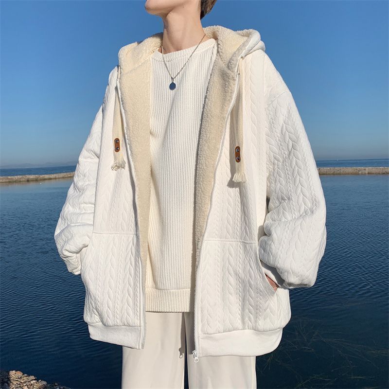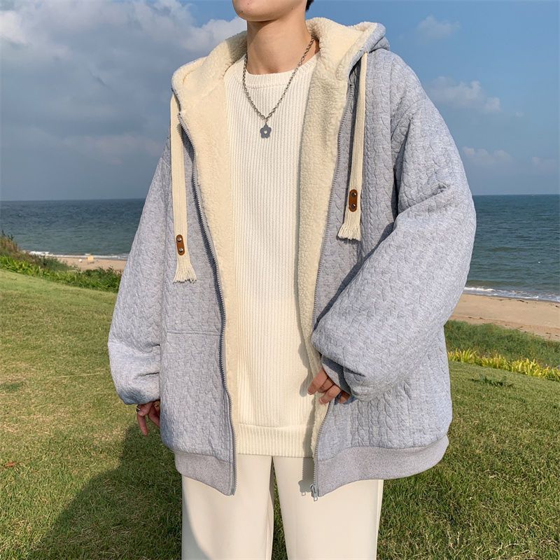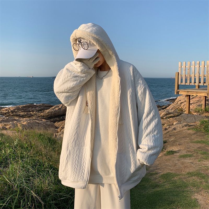 【羊羔毛棉衣】冬季绒厚外套棉服 青少年美式潮连帽 保暖冬装提花外套