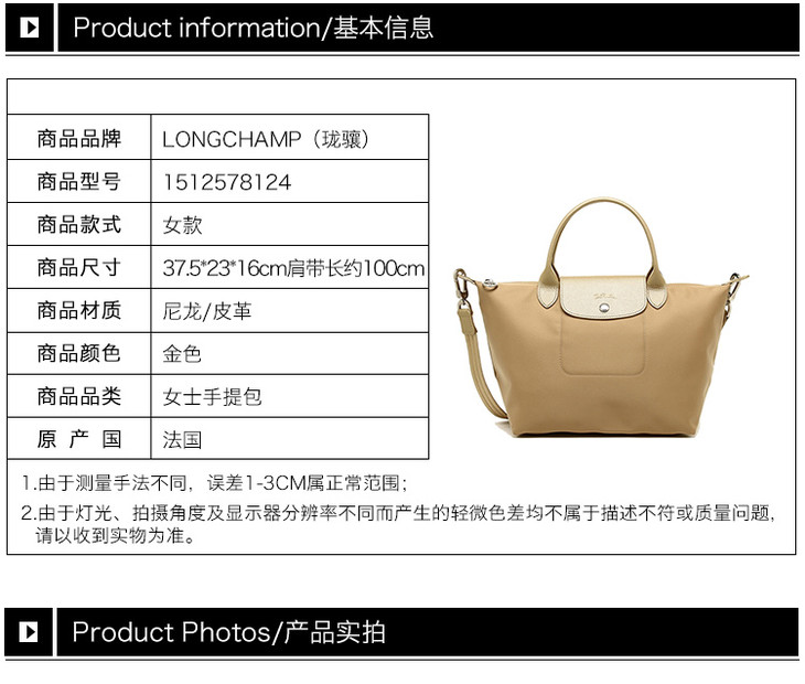 【香港直邮】Longchamp 珑骧 女士金色织物单肩手提斜挎包 1512578124