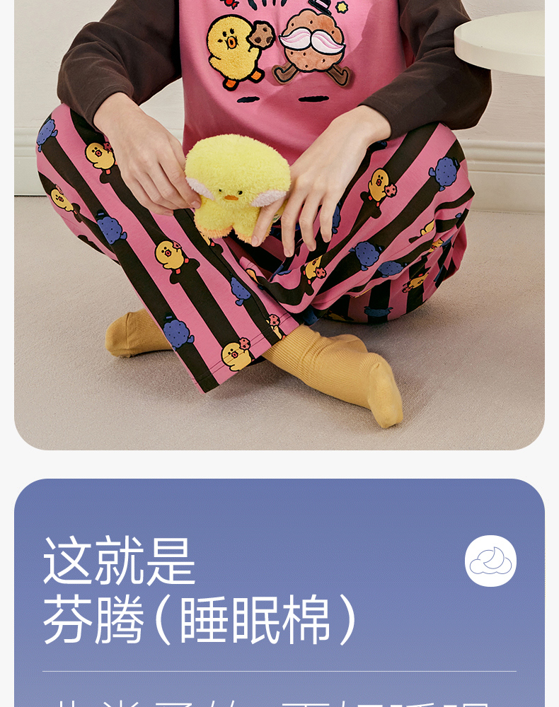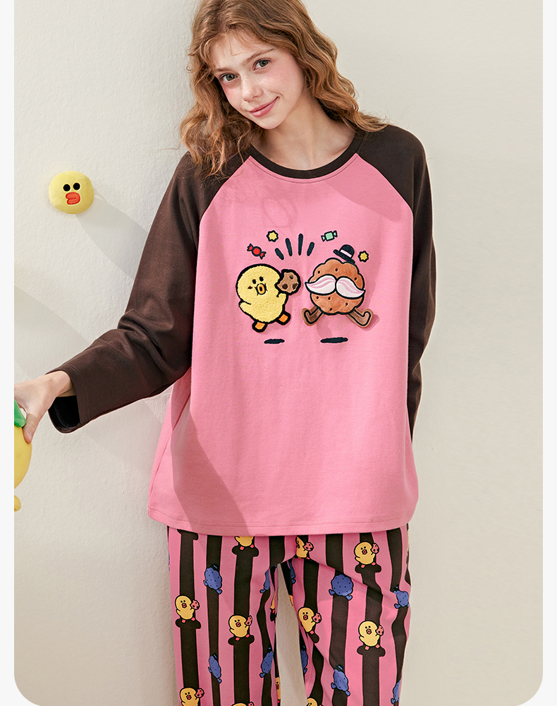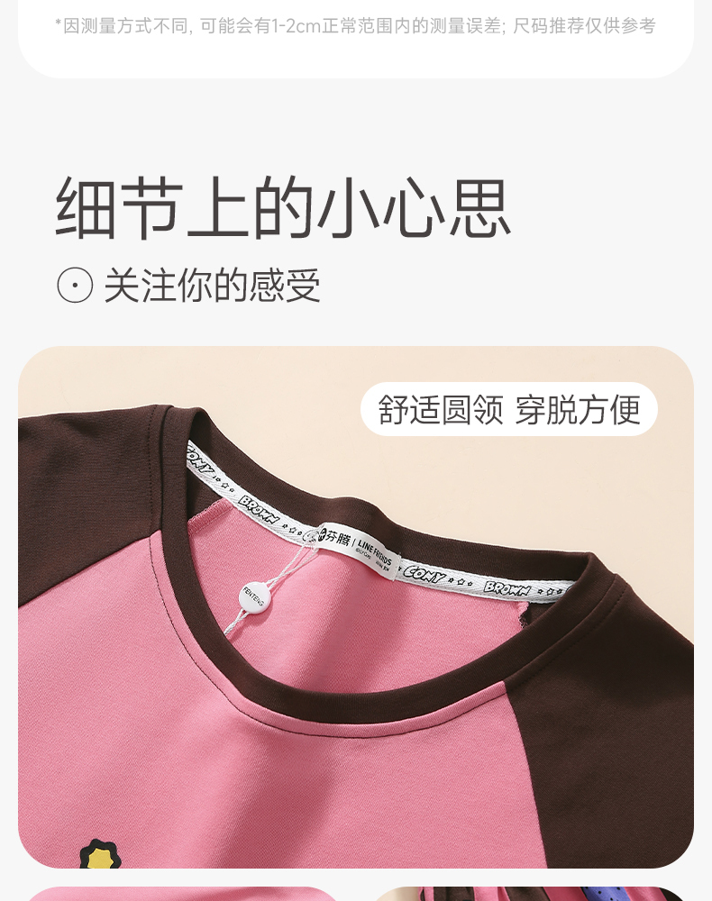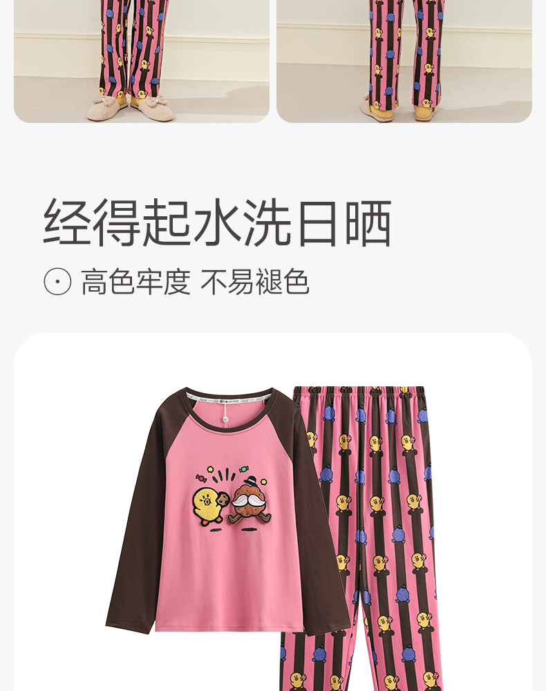 芬腾睡衣女春秋季新款纯棉长袖圆领套装布朗熊可爱休闲大码家居服
