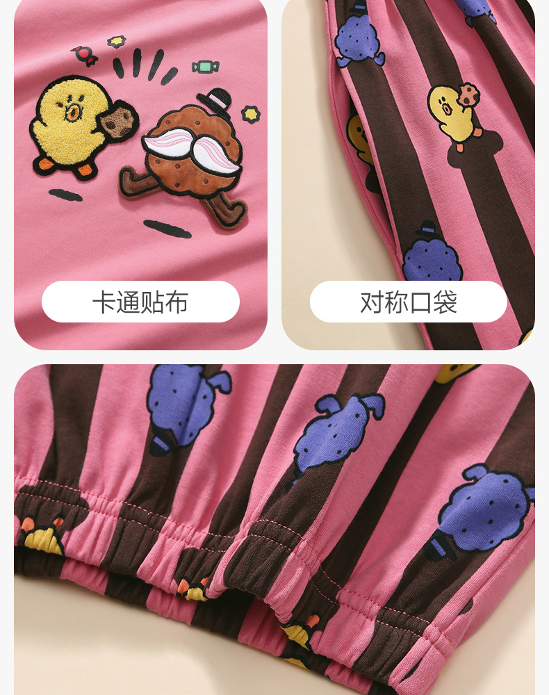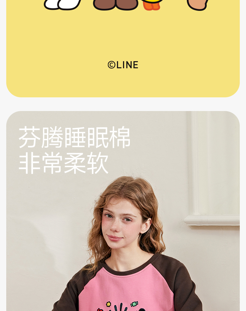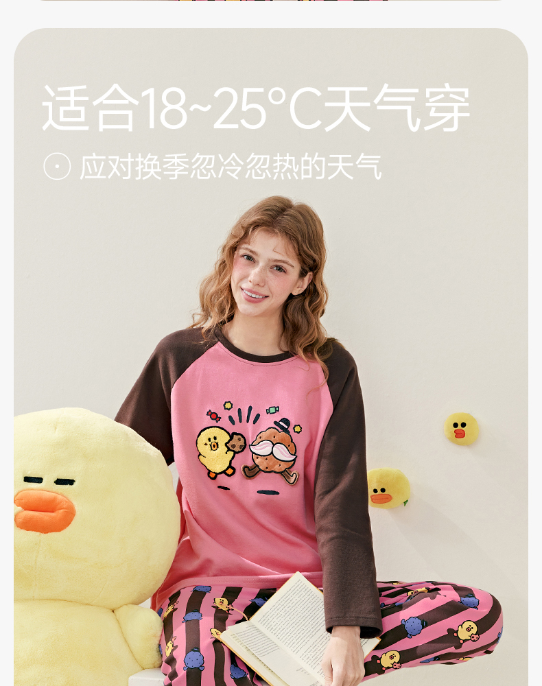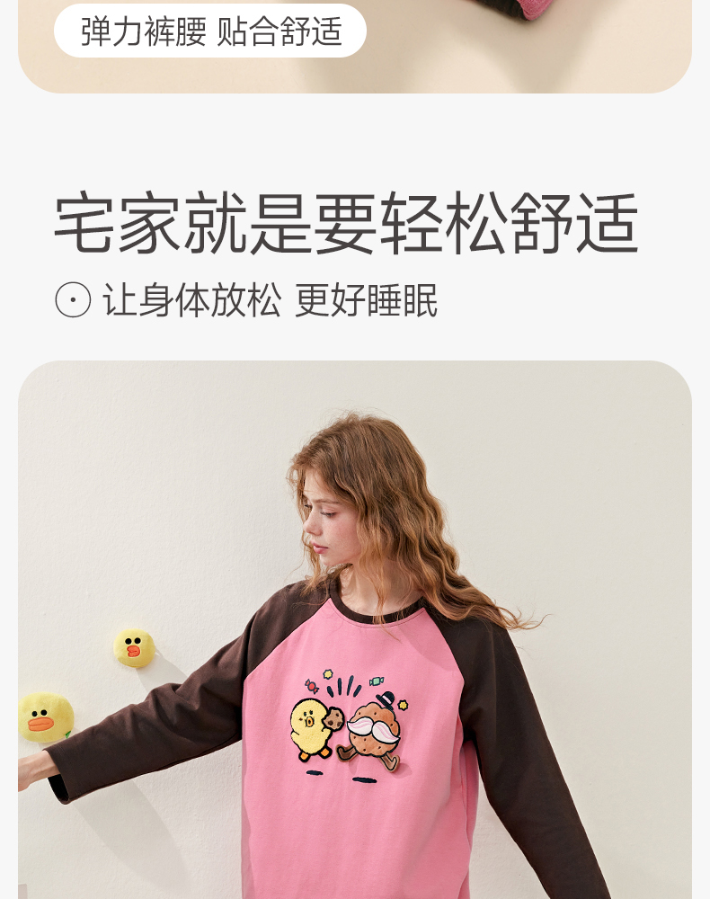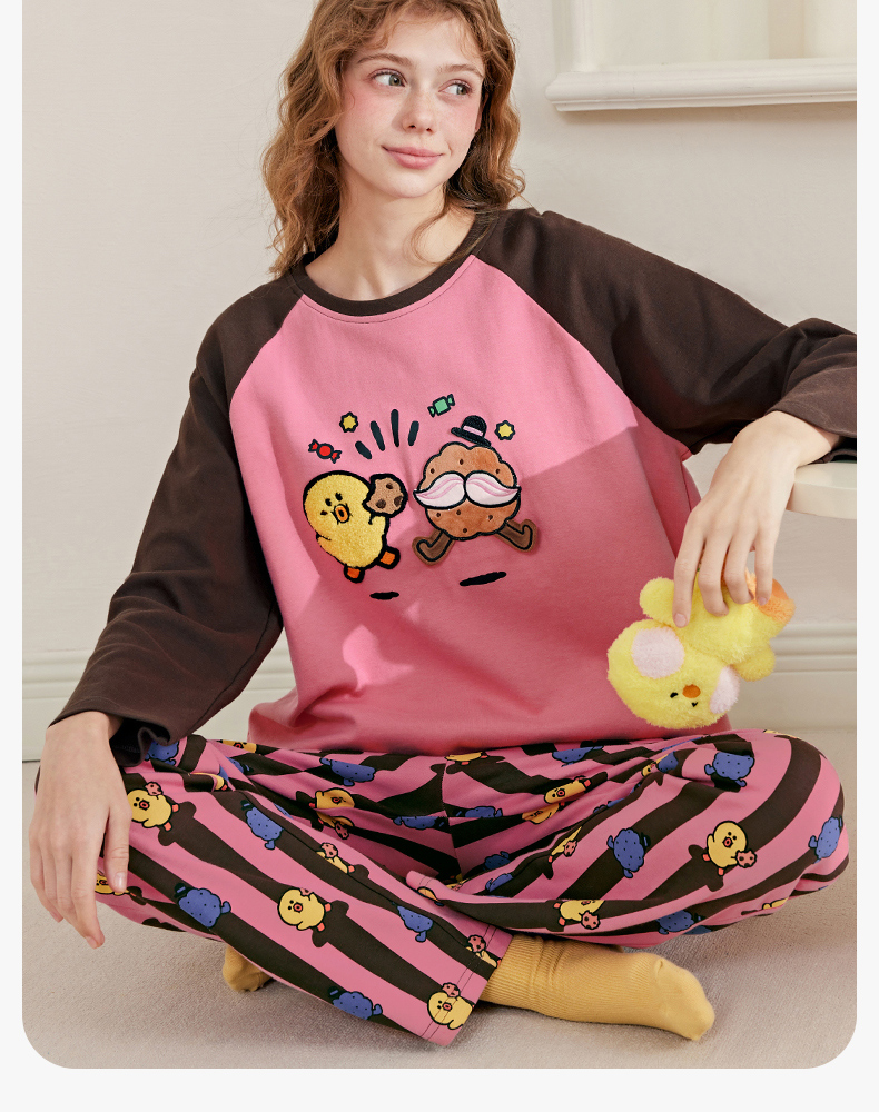 芬腾睡衣女春秋季新款纯棉长袖圆领套装布朗熊可爱休闲大码家居服