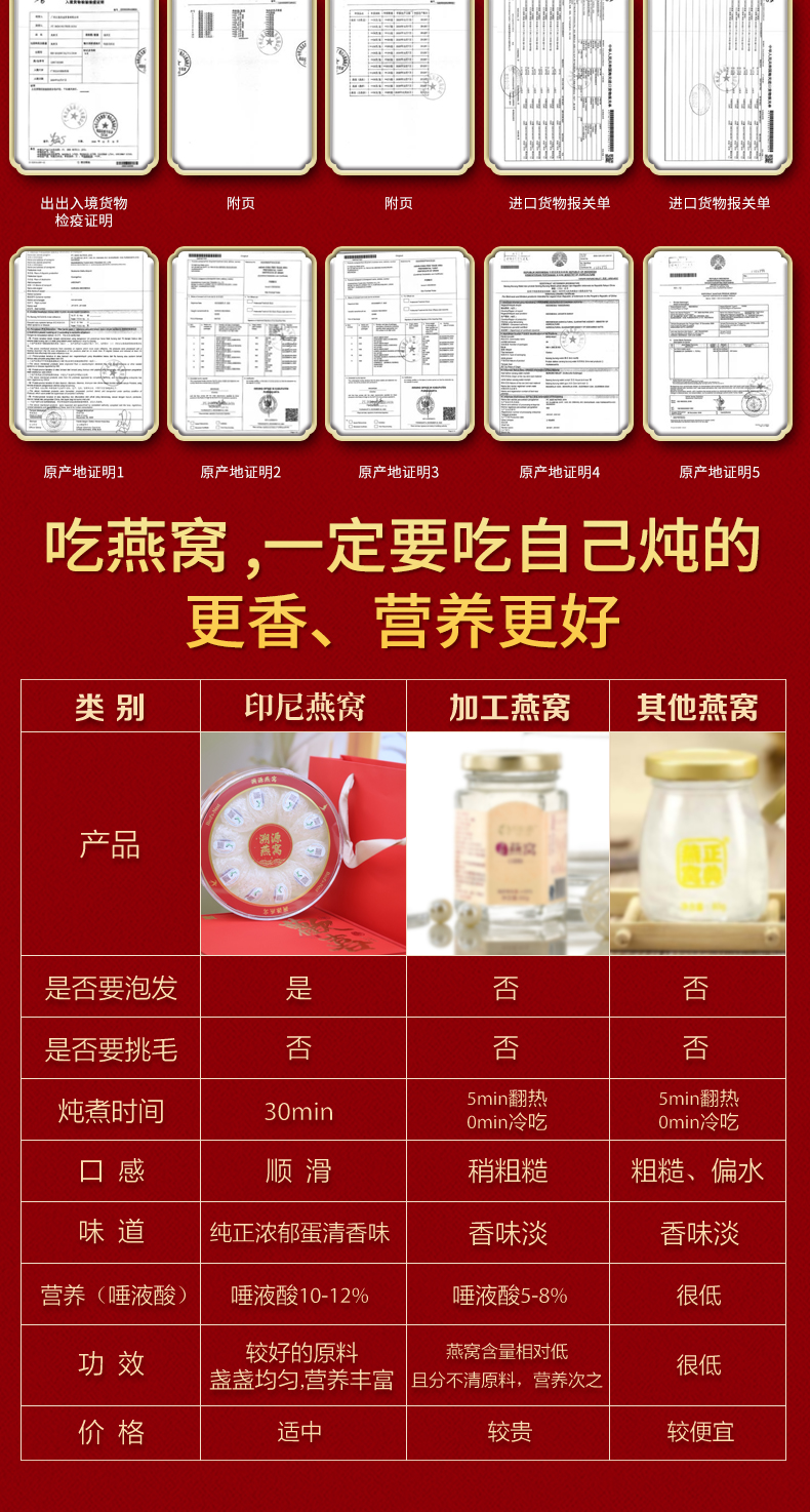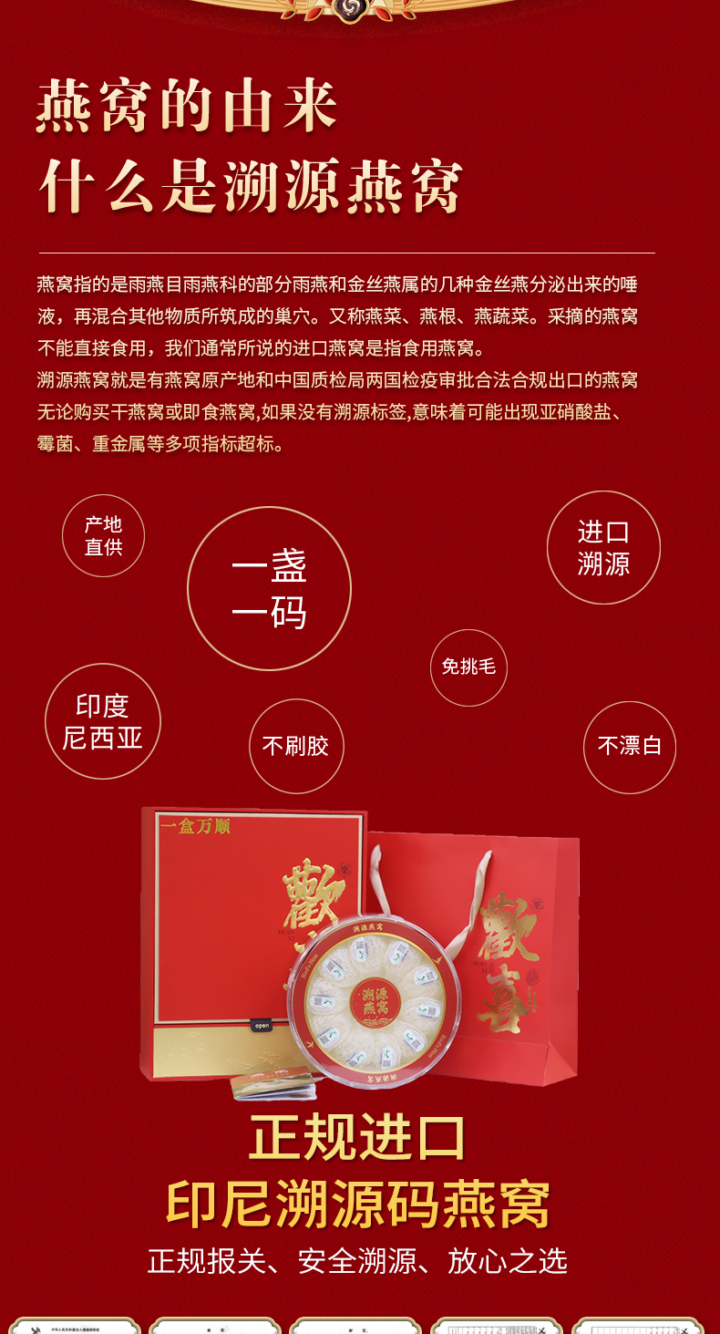 印度尼西亚即炖燕窝 免泡发免挑毛 冲洗即炖 1盒10盏 送3个分装瓶、10包石蜂糖、1把漏勺