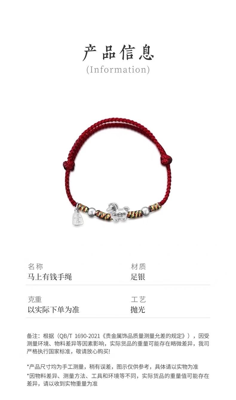 GIRATI马年招财足银手链 马到成功 策马奔腾 一物一证 带礼盒送礼