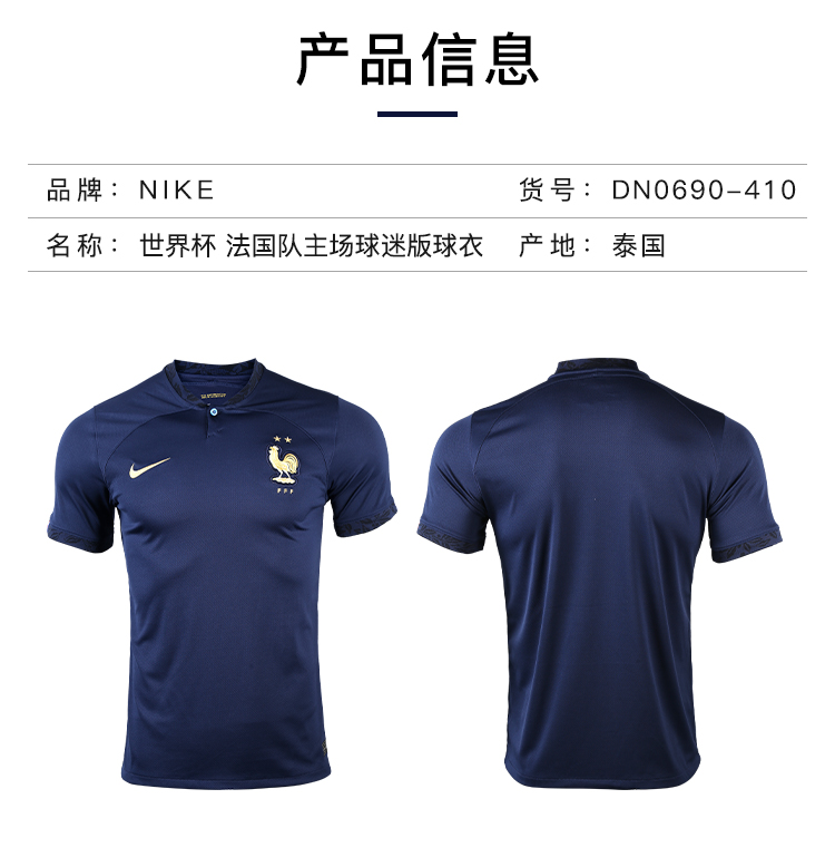 NIKE/耐克 FFF M NK DF STAD JSY SS HM 2022世界杯 法国队主场球衣 球迷版