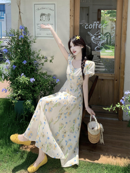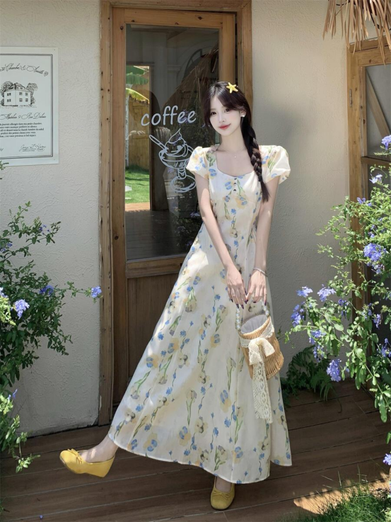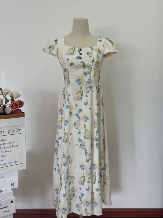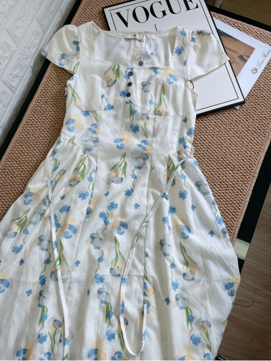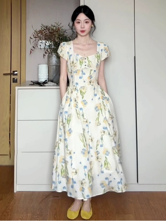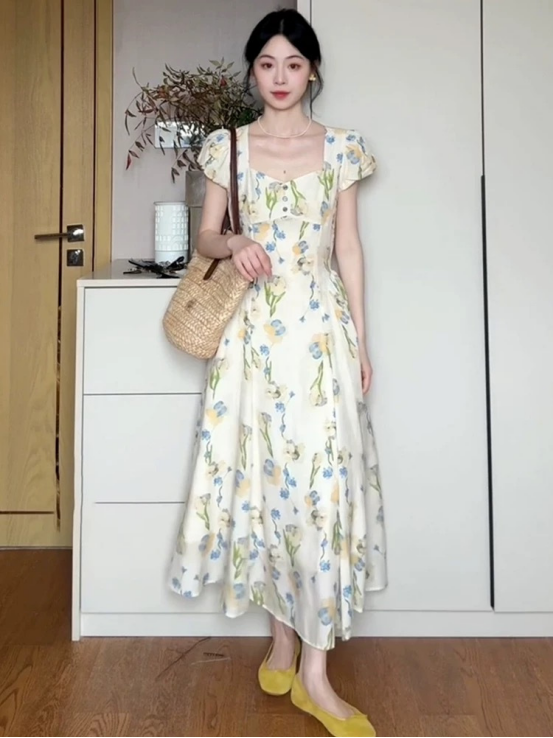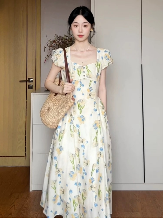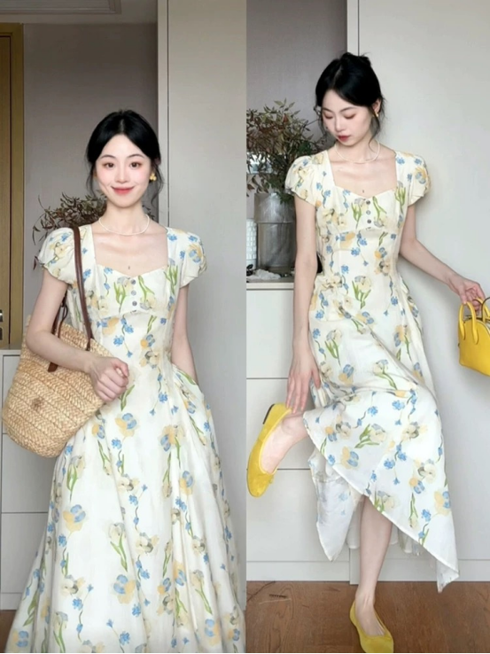 🔥🔥【AUChris郁金香法式方领连衣裙】💕家人们!🌟这条法式碎花裙我真的按头安利! ☺️我宣布夏天氛围感密码被我挖到了‼️‼️
