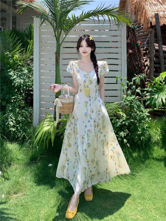 料也是绝绝子!轻盈透气不闷汗 一点黏腻感都没有 不管是去海边度假、街头漫步 还是和闺蜜下午茶 它都能轻松拿捏氛围感! 搭配浅口单鞋 + 草编包 法式慵懒感直接拉满 再配上同色系配饰,分分钟变身温柔系少女 小个子姐妹别担心放心入 收腰 + 大裙摆的设计 从视觉上拉高腰线,秒变大长腿!