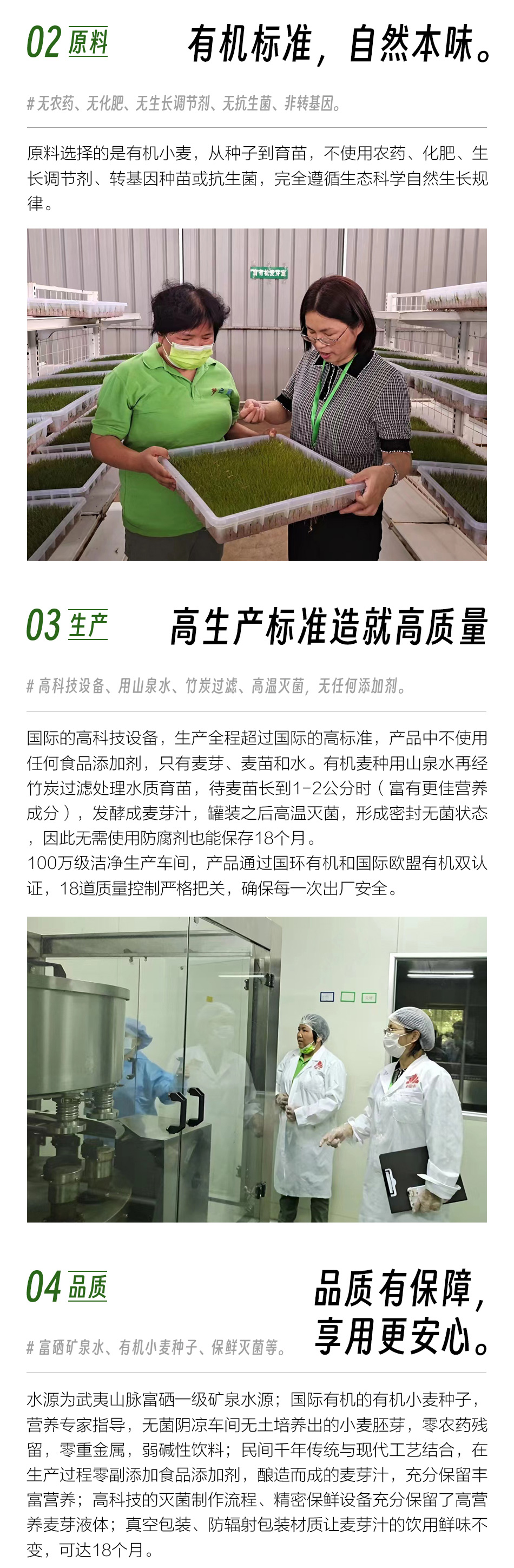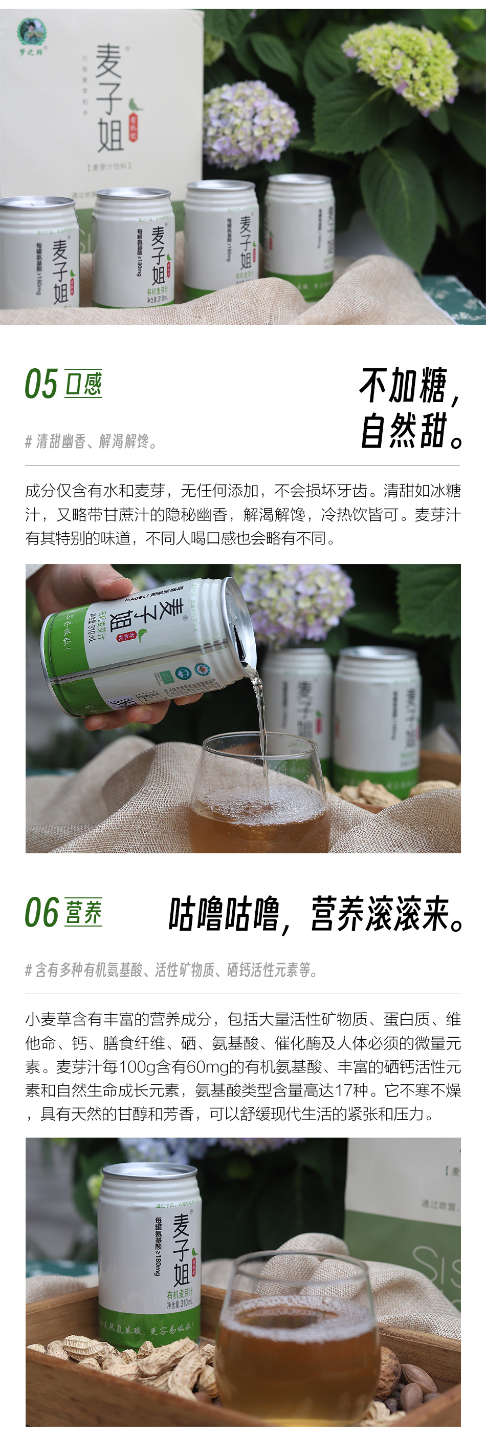 【净含量/规格】:310毫升/ 罐(12罐/件) 【成分】:水、有机小麦、麦芽 【生产日期】:见包装喷码 【保质期】:18个月 【储藏条件】:室温阴凉处密封存放,避免阳光直晒及高温 【食用方法】:开罐即饮 【生产者】:福建省梦之鲜食品有限责任公司 【产地】:福建省南平市 【生产方式】:采用有机的麦子制作,无农药化肥、不施除草剂;麦苗生长不用生长调节剂;麦芽汁生产不用防腐剂 【禁忌人群】:母乳妈妈不宜饮用,有回奶的隐忧 【甜味】:来自麦芽发酵的酶产生成还原糖 【发货方式】:基地四通一达包邮发货 【注意事项】: 1、未开封保质期内有少许沉淀物,是麦芽沉淀,属于正常现象,不影响食用。 2、快递过程中可能出现罐子被挤压,有些变形现象,介意者慎拍。 3、铁罐未充二氧化碳,快递过程可能会引起瘪罐,介意者慎拍。 4.现换新包装发货。 【售后标准】: 1、每个人口味偏好不同,不保证口感完全满足您的喜好,不以口感售后。 2、由于顾客电话关机、停机、不接电话联系不上收货人、收货信息有误等原因导致的快递延迟签收,不在售后范围。 3、已发货后不接受没有沟通的退款申请。 4、运输过程挤压碰撞的严重破损、腐坏变质、产品不符、数量不符、重量不足等请于签收后24小时内发照片或视频联系客服,超出时效不售后哦。 |