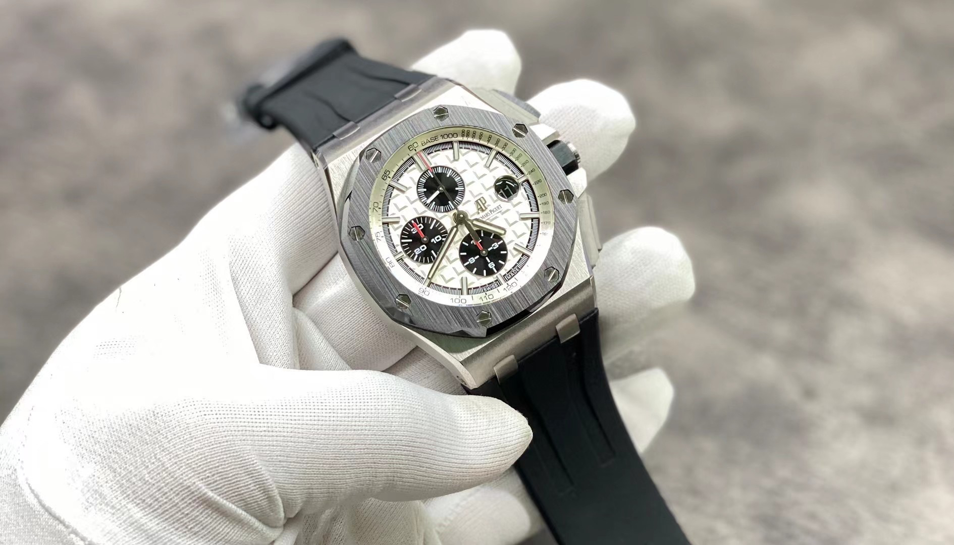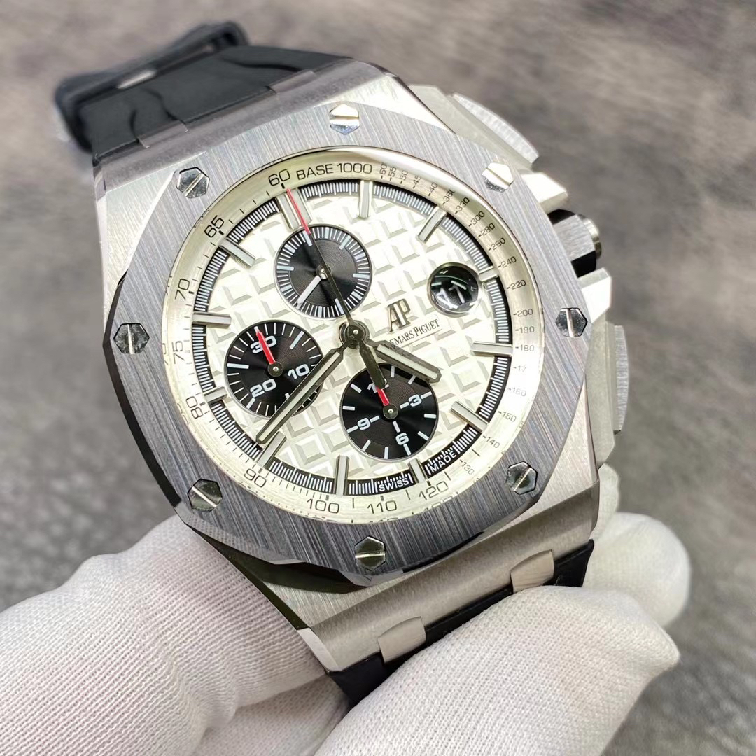 JF爱彼ap26400大熊猫陶瓷圈口及陶瓷按钮 ,搭载3126机械机芯 防水,44毫米直径 ,精钢外壳,男士,透底,硅胶防水表带。
