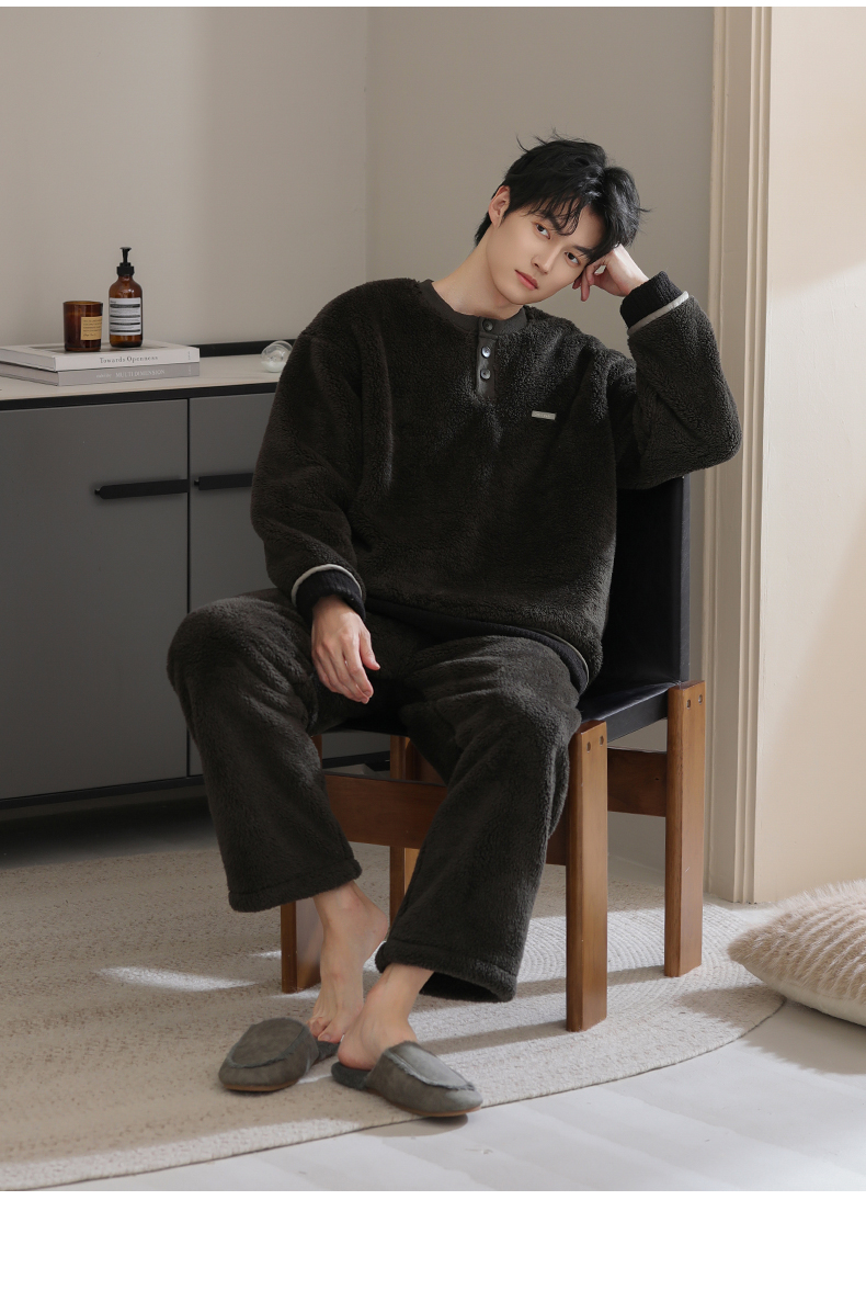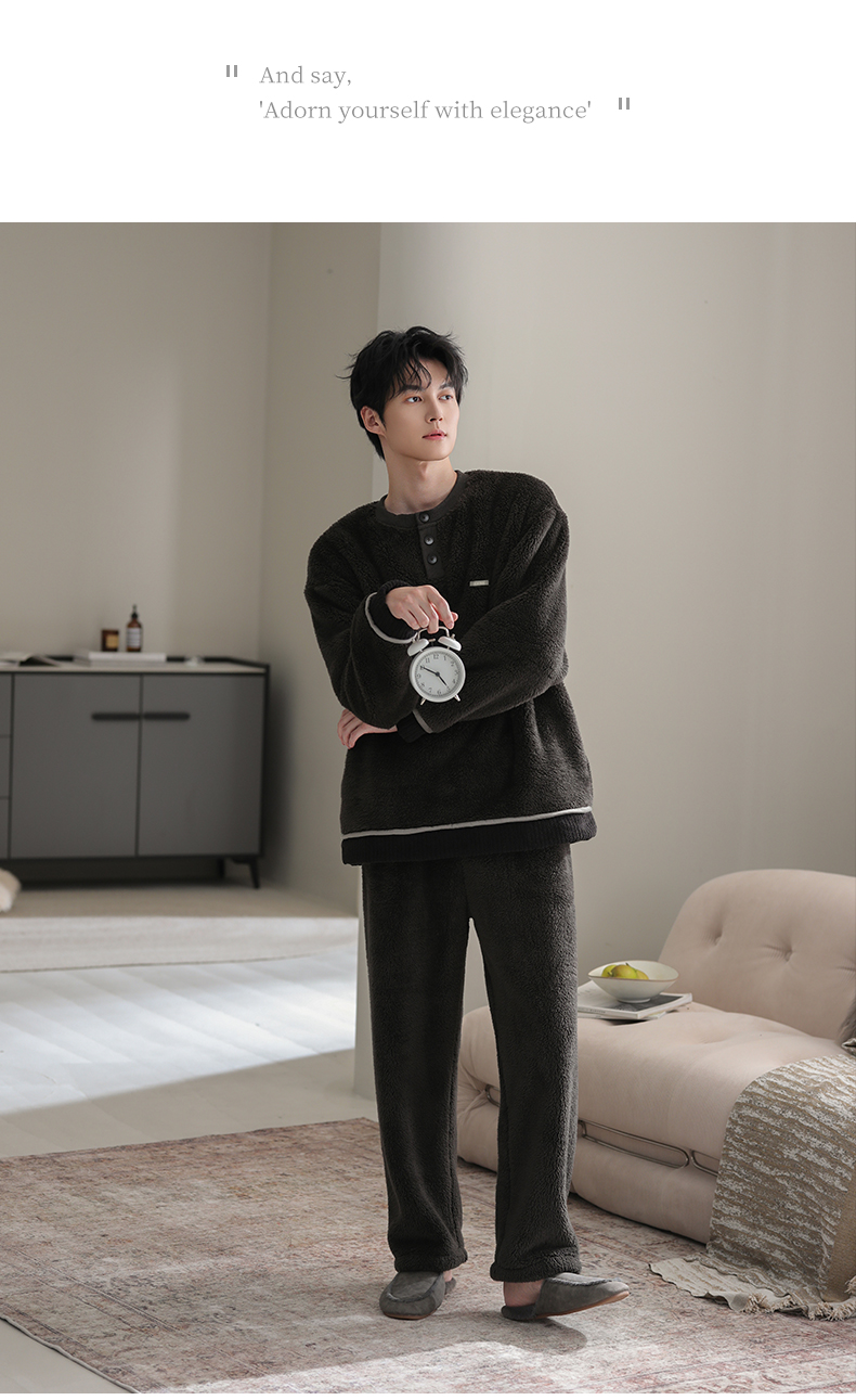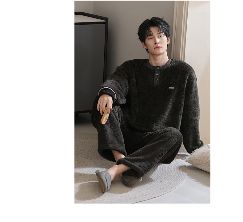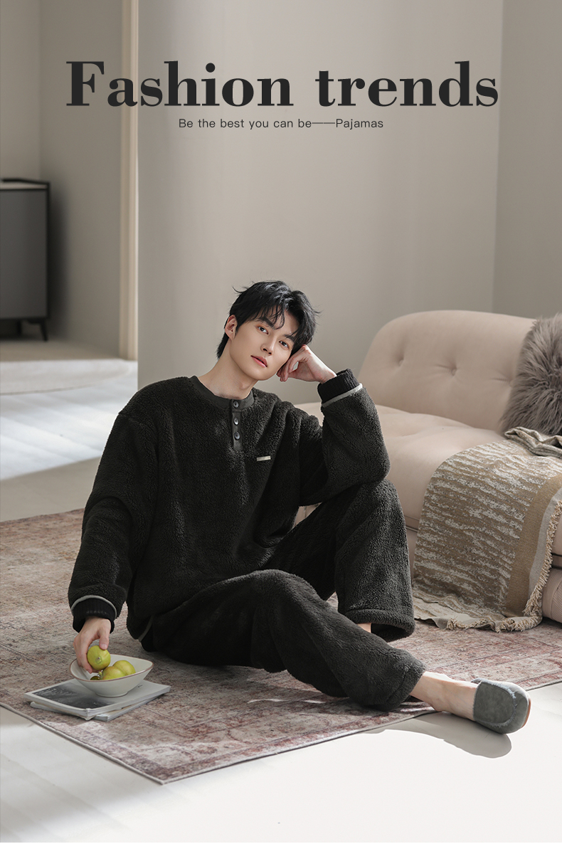 可人儿冬季男士保暖舒棉绒睡衣秋冬休闲宽松男款加厚珊瑚绒家居服